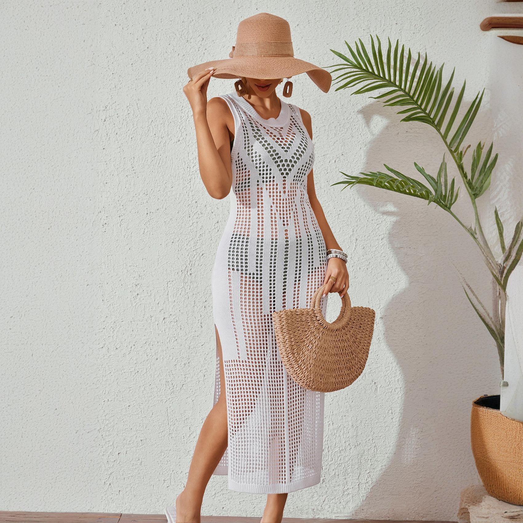 ¡Nuevo Producto en 2025! ! Falda de Playa Europea y Americana para Mujer Color Sólido Sexy Tejido Traje de Baño Bikini de Playa Vestido de Mujer