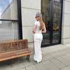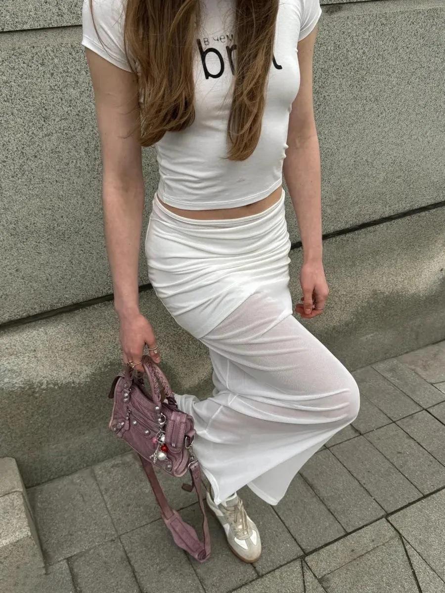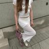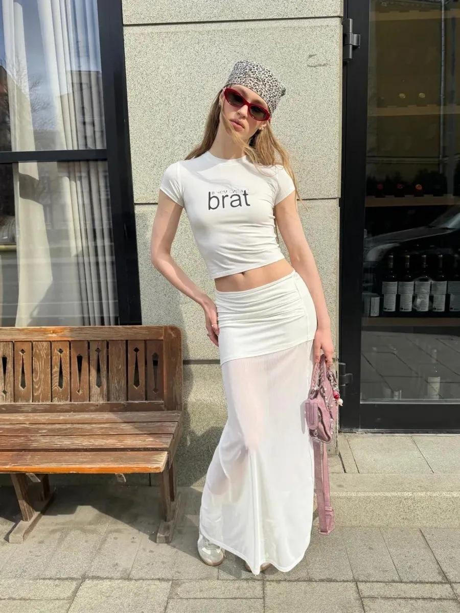 Europeo y americano transfronterizo 2025 verano nueva moda top corto de cintura alta top ajustado de manga corta falda larga ajustada a las caderas conjunto de dos piezas