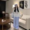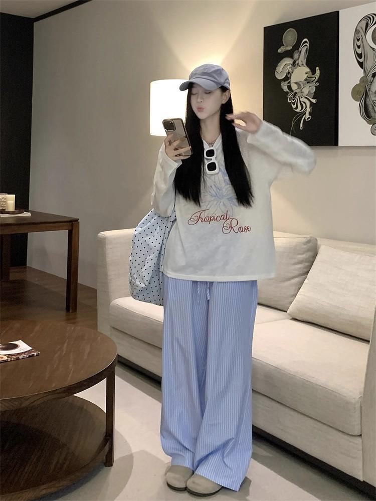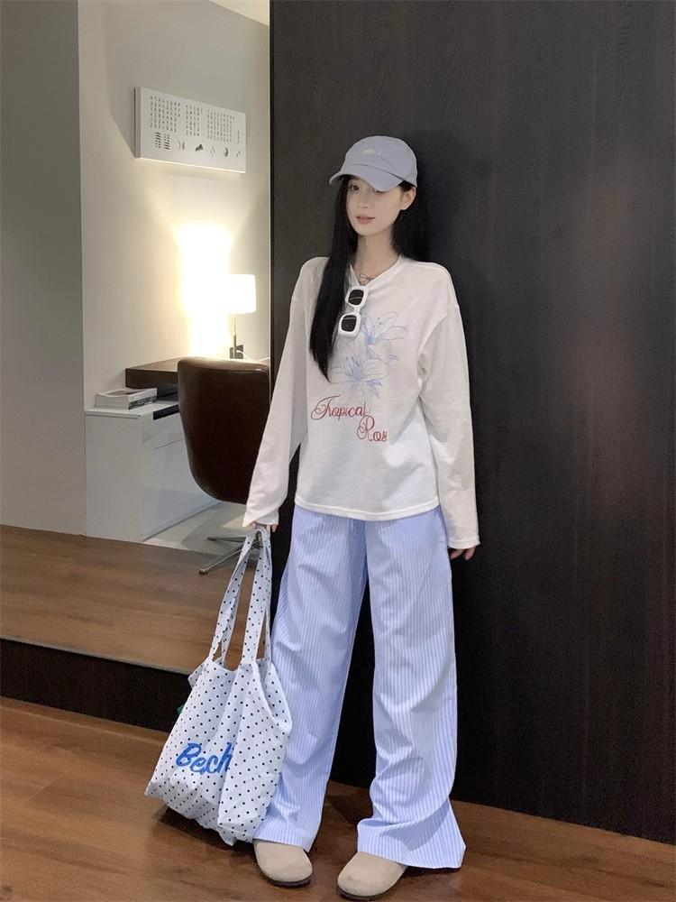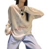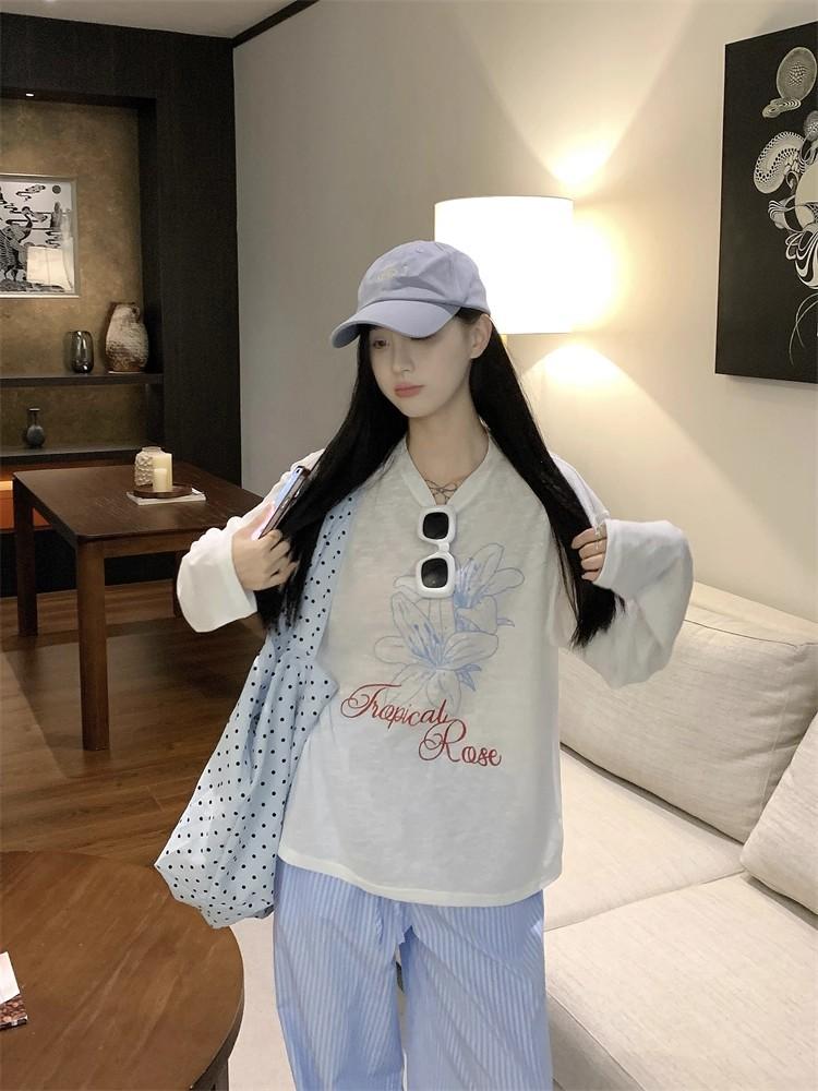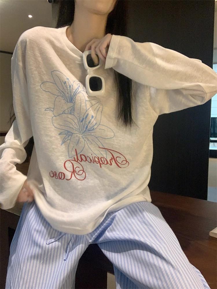 Estilo Perezoso Casual Manga Larga Cuello Redondo Estampado Camiseta Mujer Verano Suelta Adelgazante Protección Solar Encubrimiento Blanco Top Delgado
