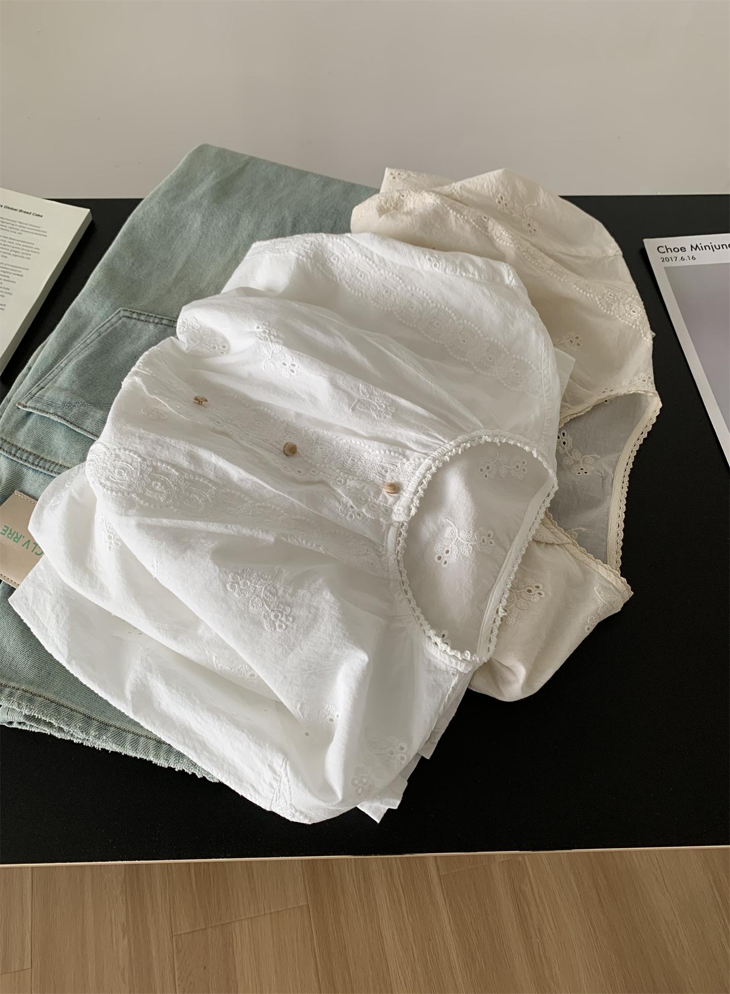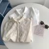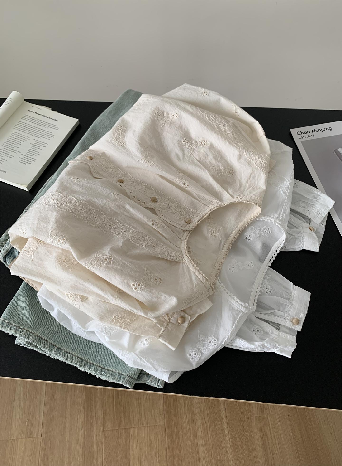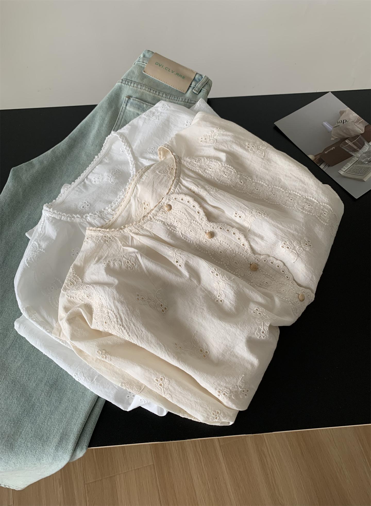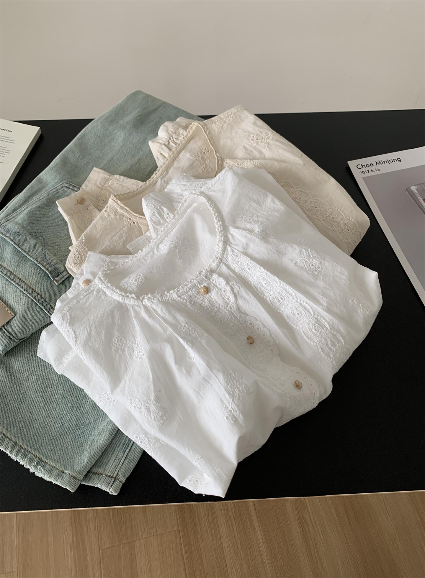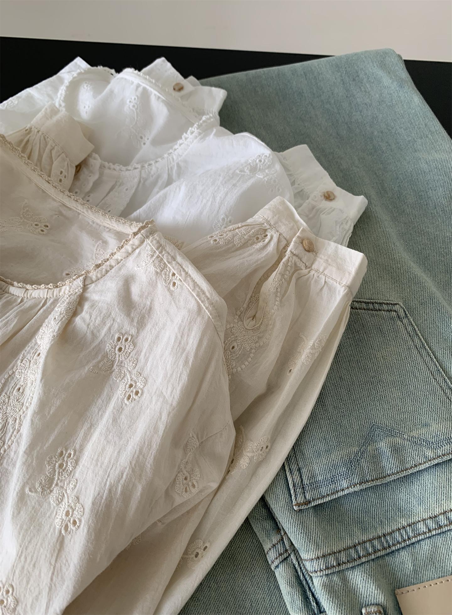 Camisa Retro de Encaje Cuello Redondo Bordada para Mujer Dulce Japonesa Reductora de Edad Jacquard Linterna Manga Larga Cárdigan Otoño 2025