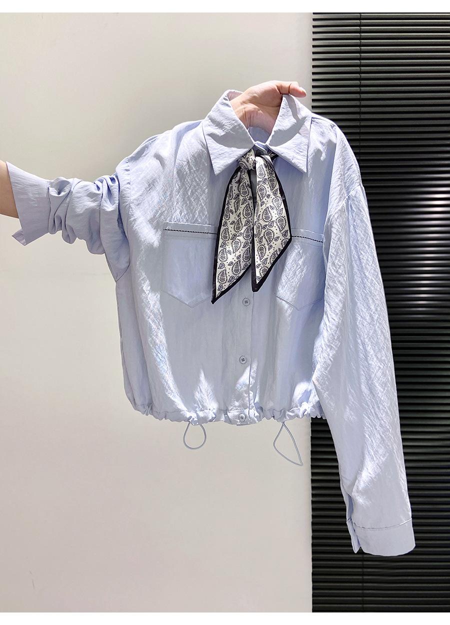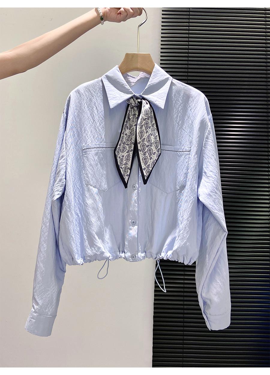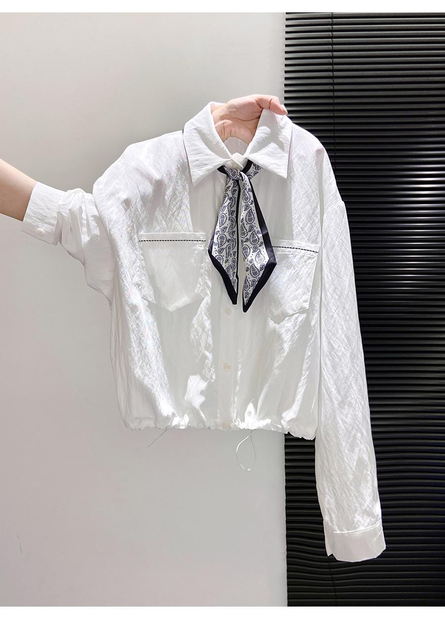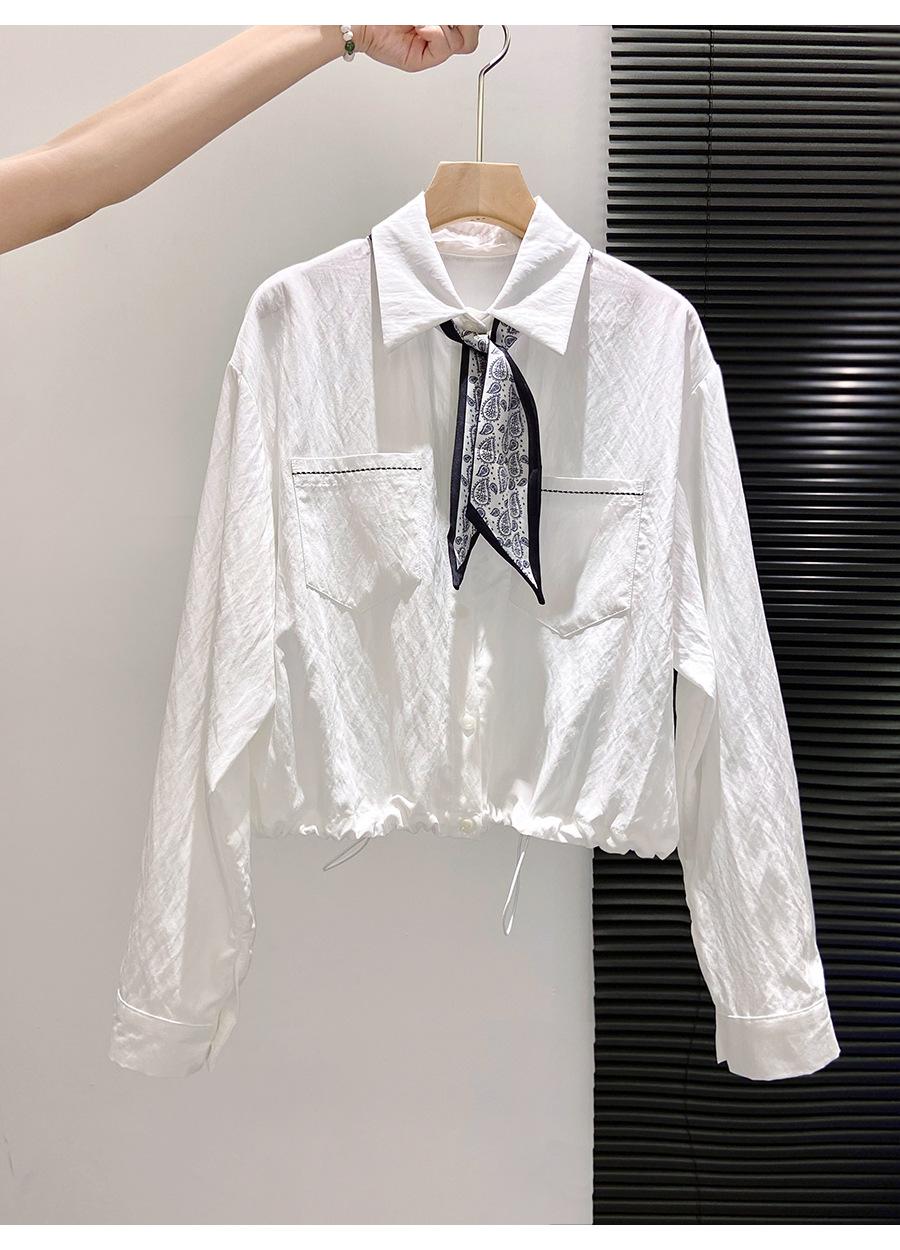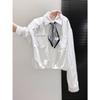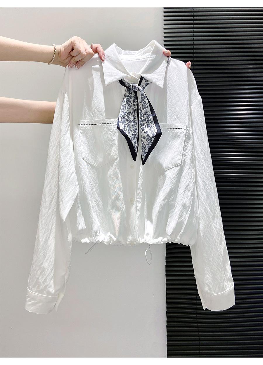 Camisa de manga larga con cuello polo y bufanda de seda para mujer 2025 principios de otoño nuevo lujo ligero sentido de alta gama holgada versátil camisa blanca
