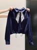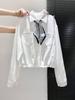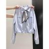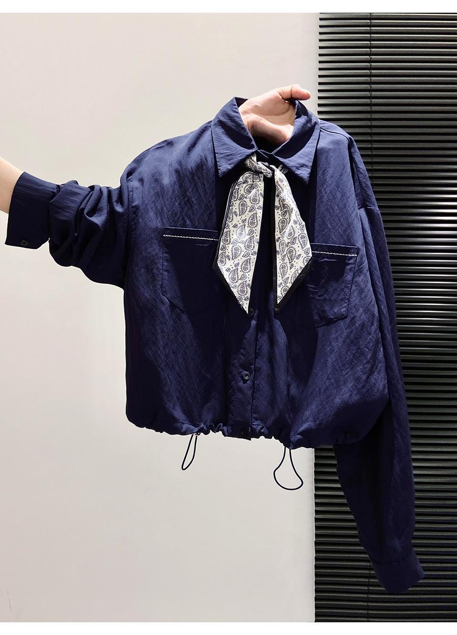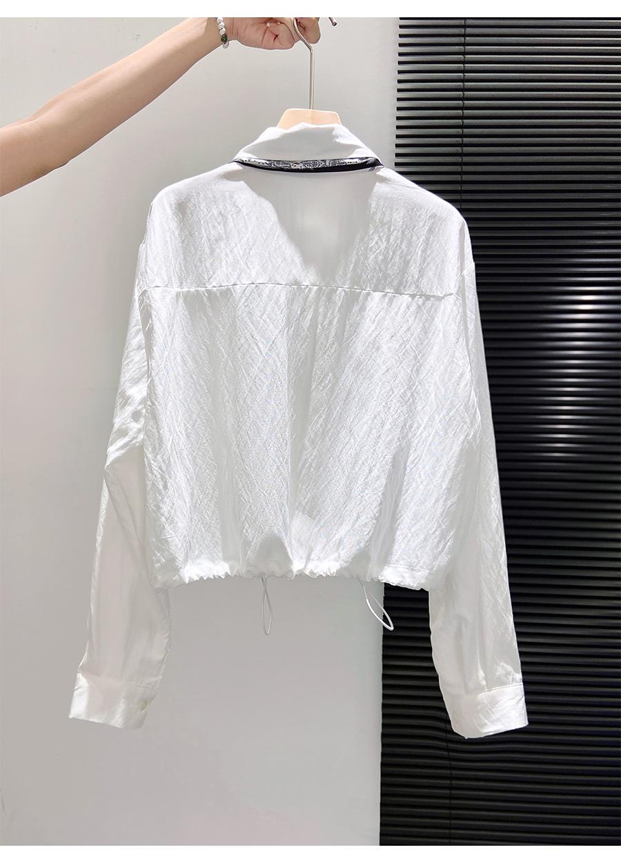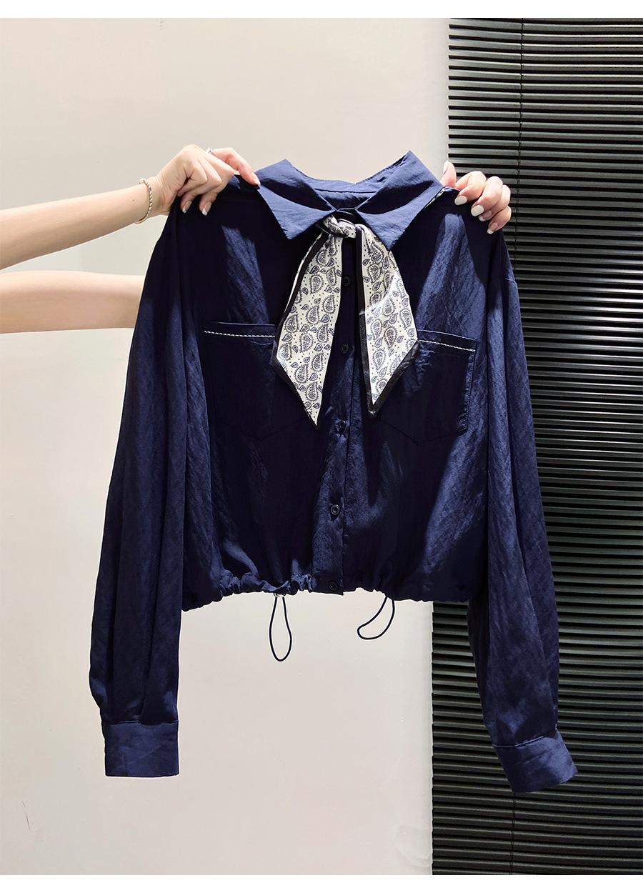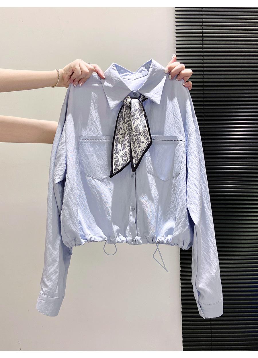 Camisa de manga larga con cuello polo y bufanda de seda para mujer 2025 principios de otoño nuevo lujo ligero sentido de alta gama holgada versátil camisa blanca