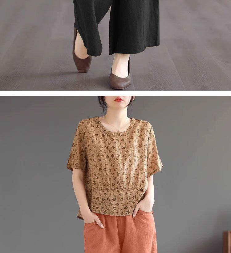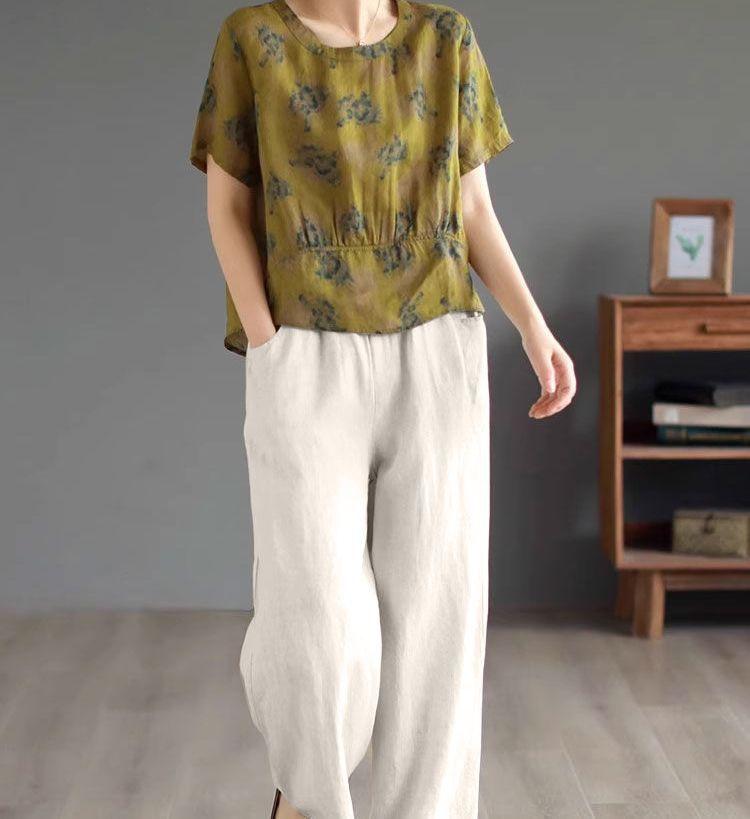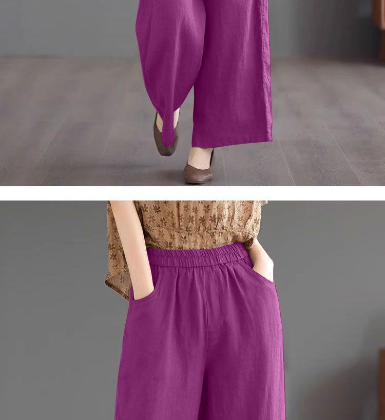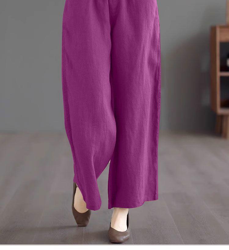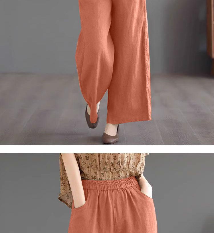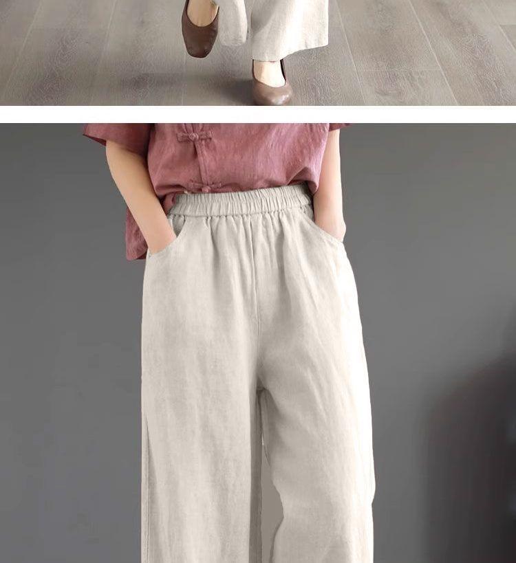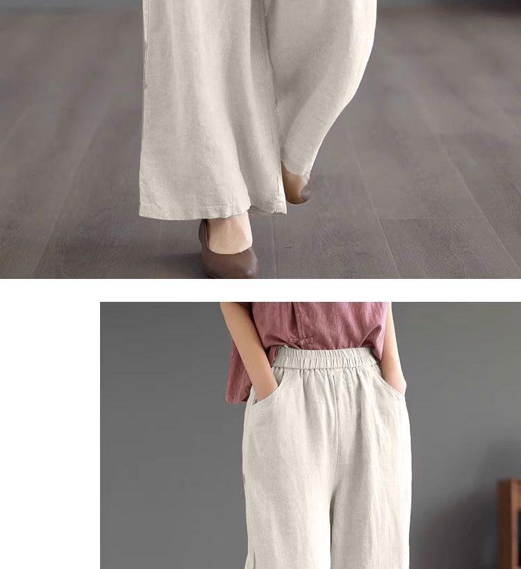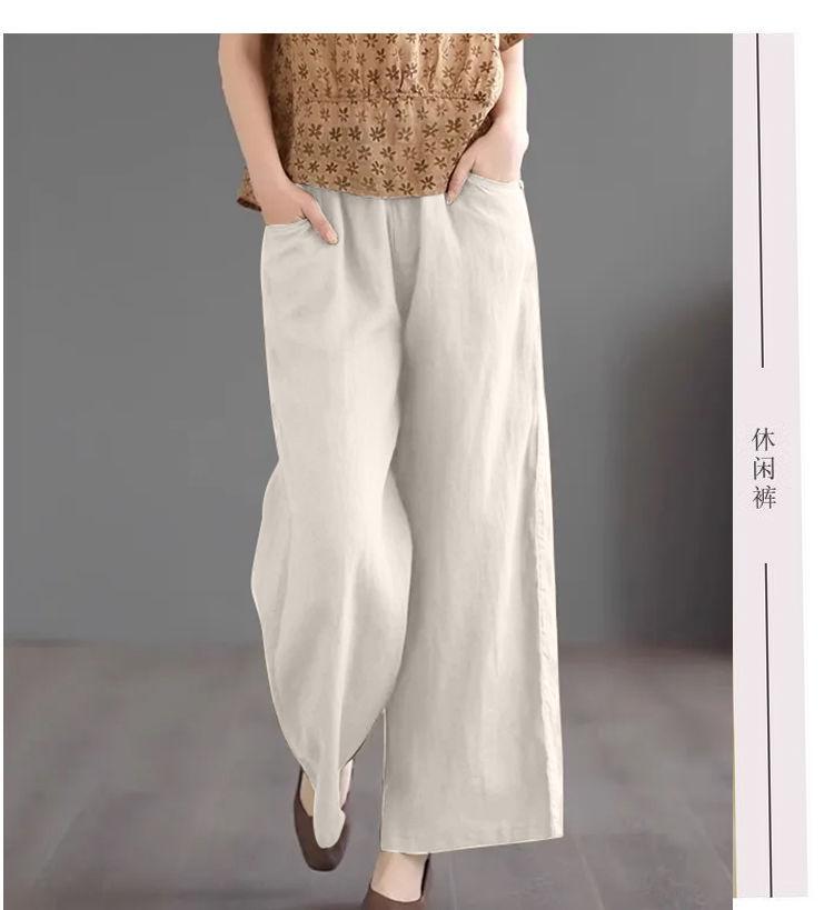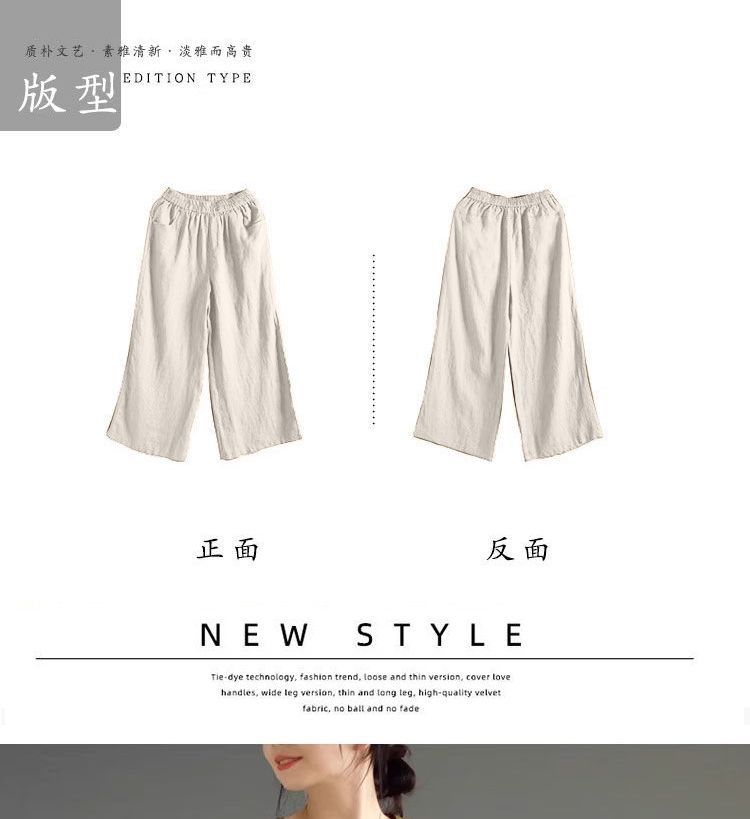 2025 Nuevo Temperamento Cintura Alta Lino Suelto Literario Algodón Lino Pantalones Pierna Ancha Talla Grande Adelgazantes Pantalones Casuales Recortados Mujer