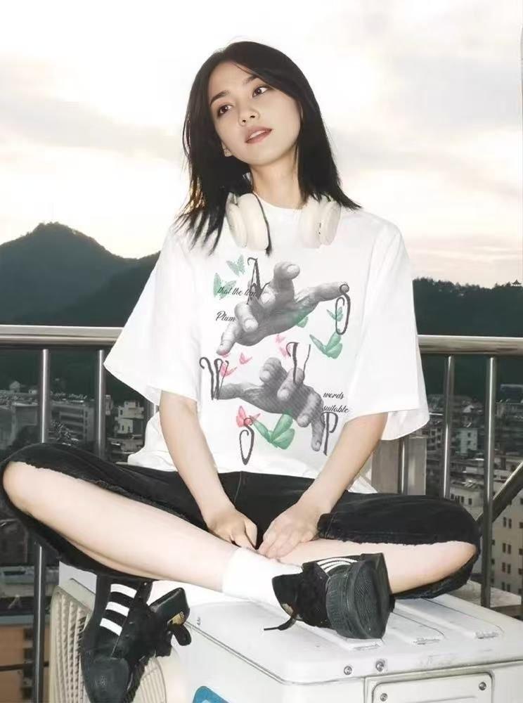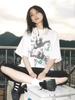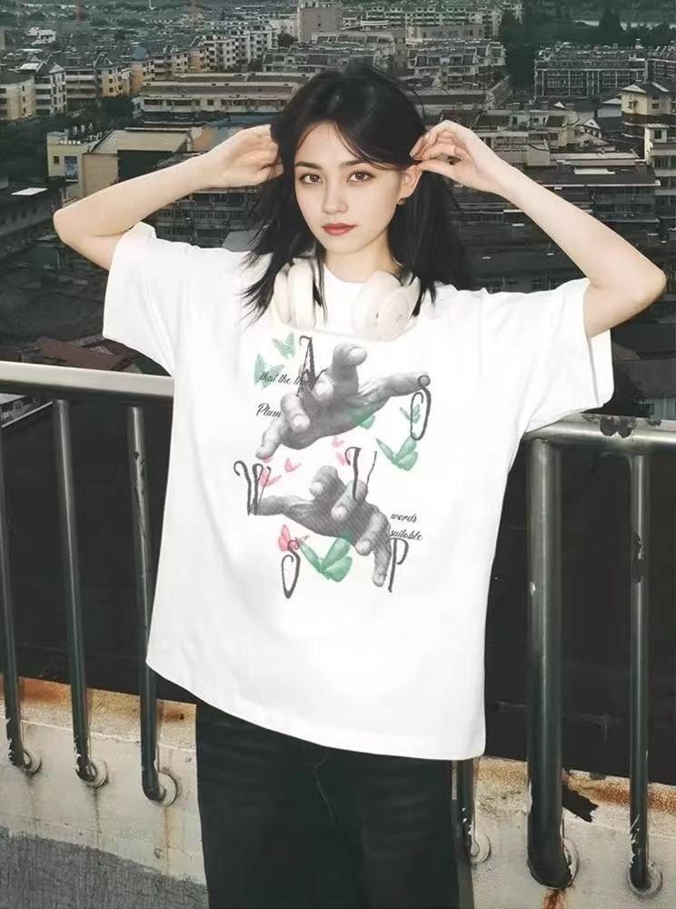 Usa camisetas de manga corta de algodón puro de gran tamaño para mujer, camisetas duraderas estampadas de media manga para estudiantes de verano geniales