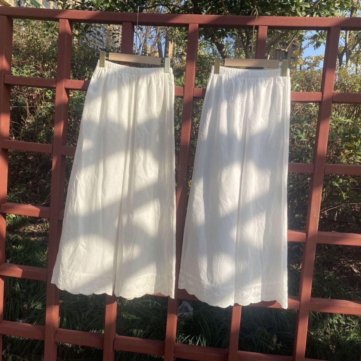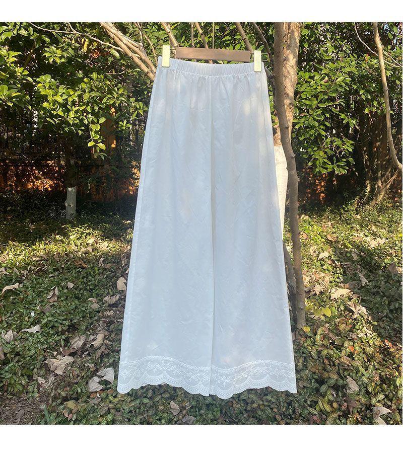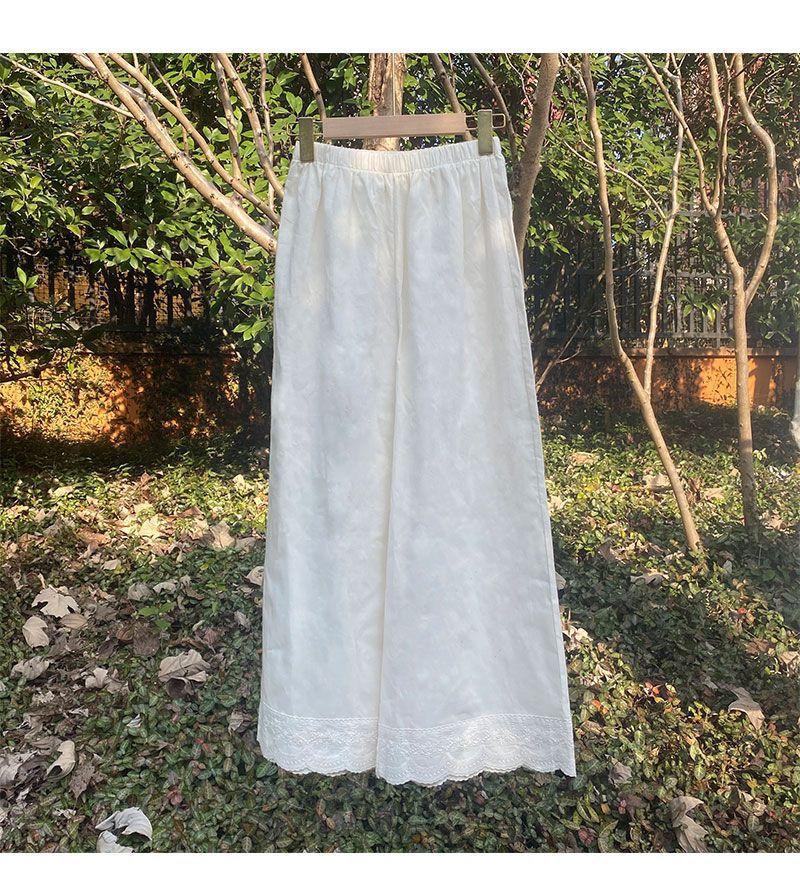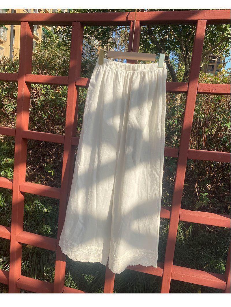 Primavera y Verano 2025 Nuevo Diseño Artístico Retro Encaje Puntada Pantalones Recortados de Pierna Ancha Pantalones Casuales Ropa de Algodón y Lino para Mujer