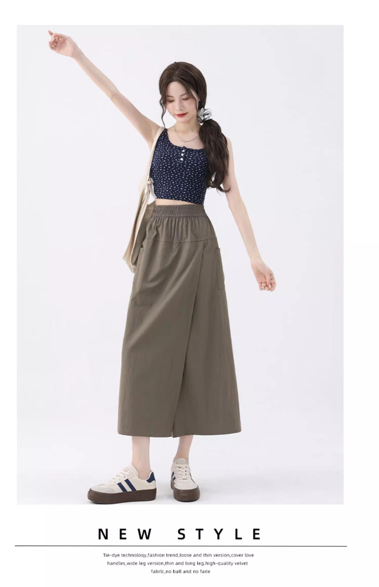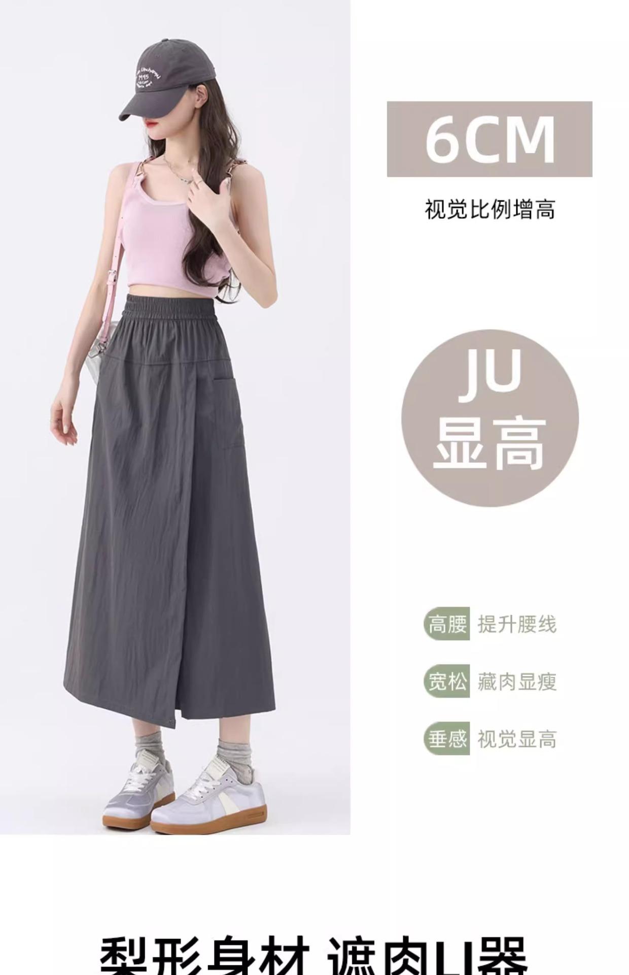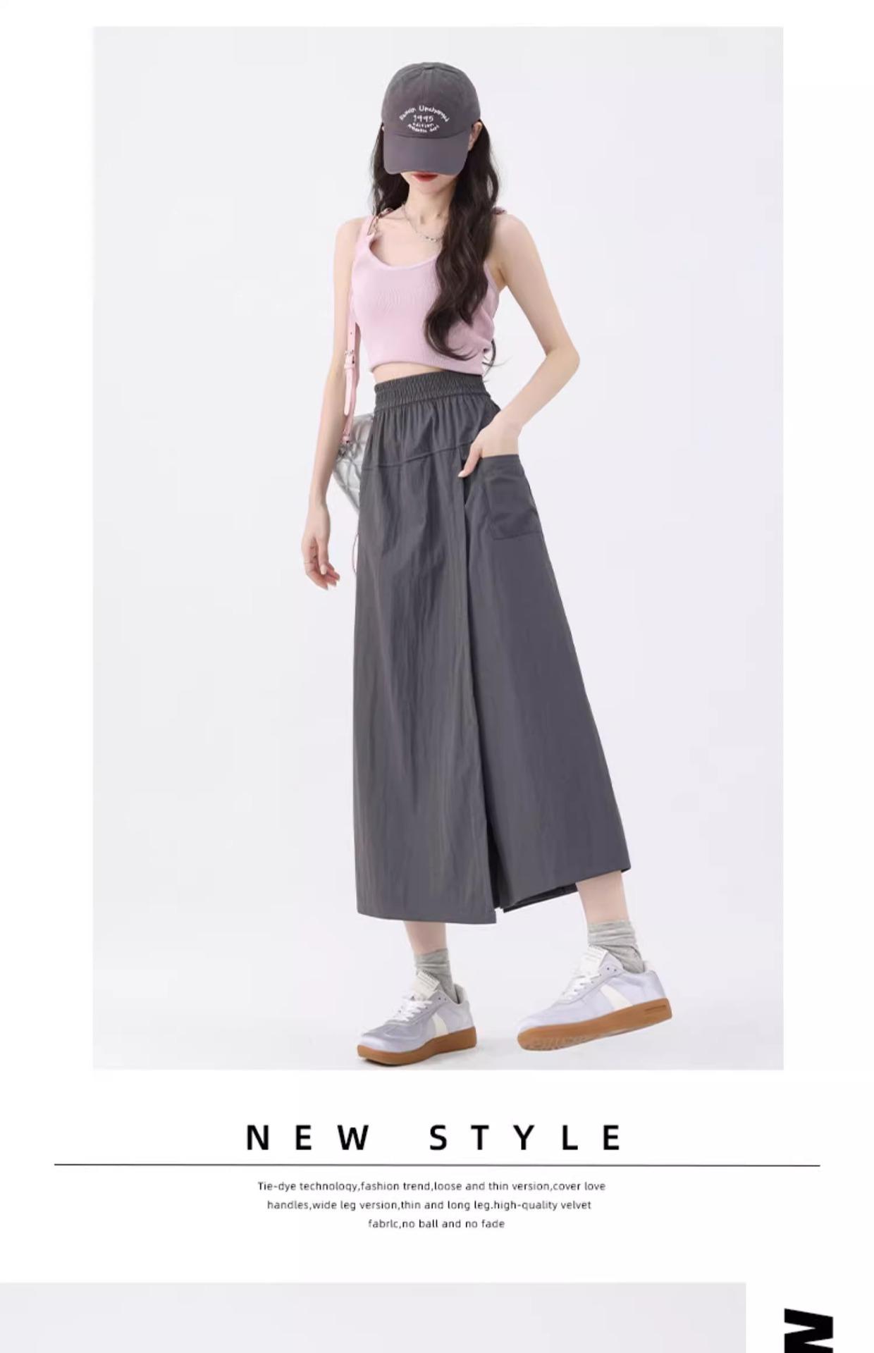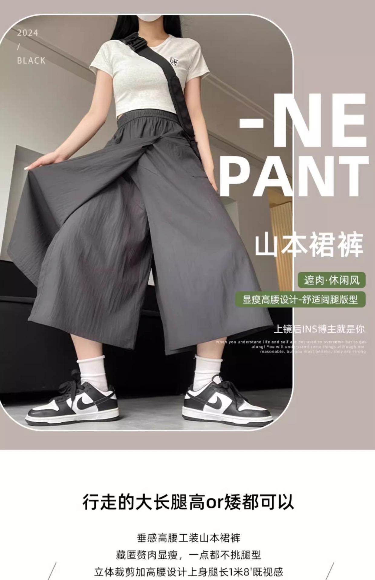 Culottes Cargo para Mujer Verano 2025 Nuevo Look Adelgazante de Cintura Alta Falda Línea A Pantalones Sueltos de Pierna Ancha de Seda Helada Pequeños
