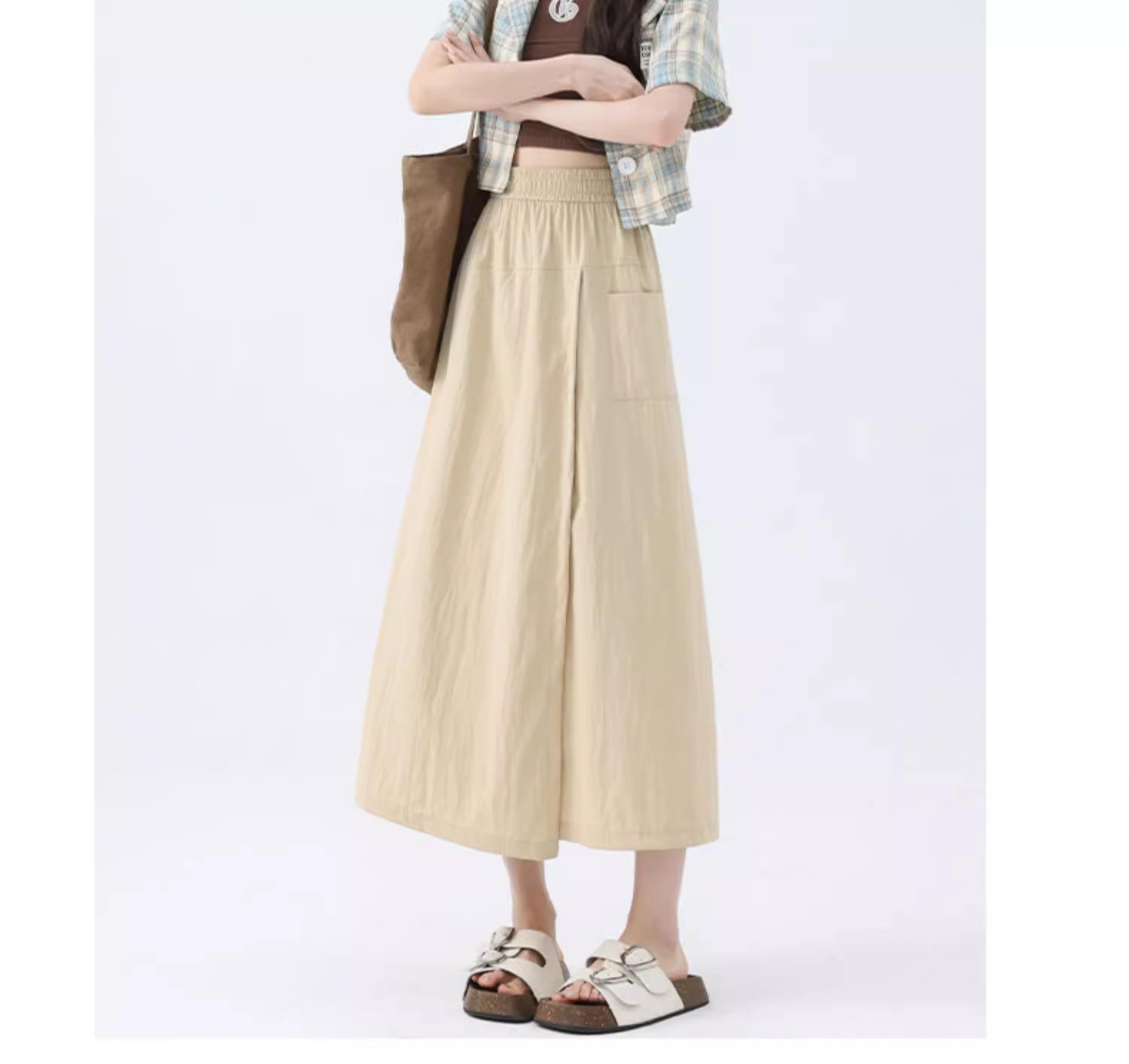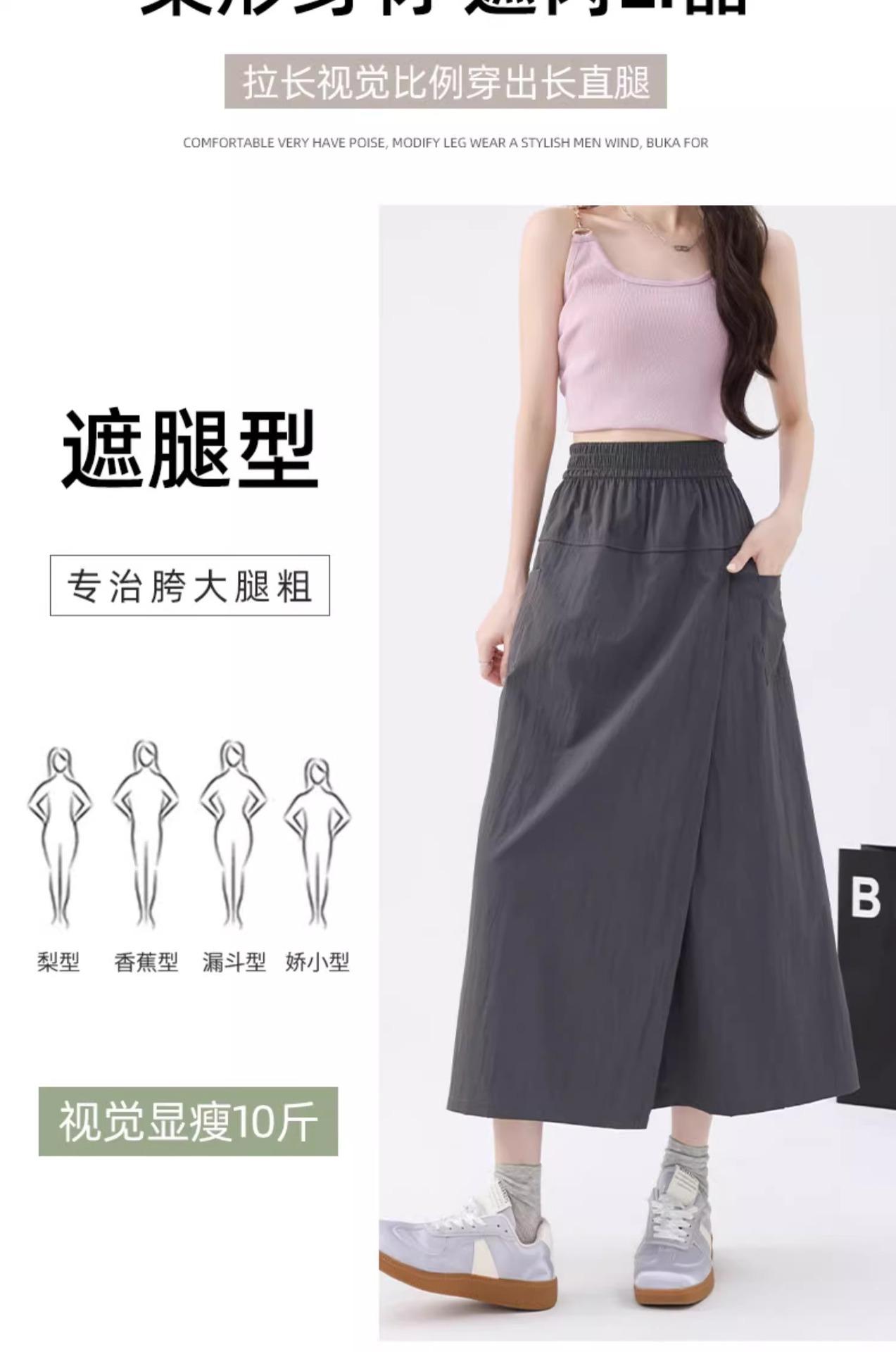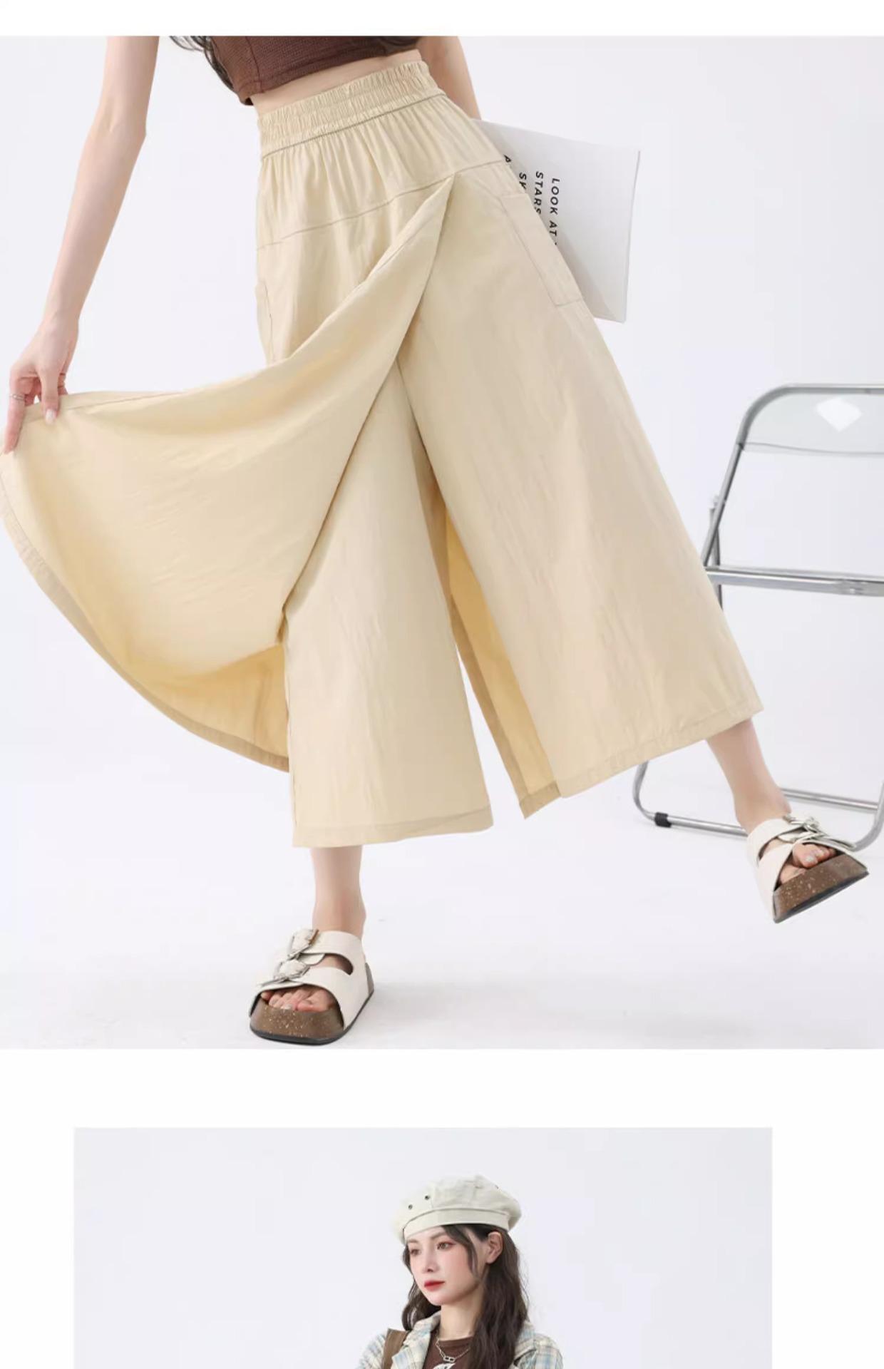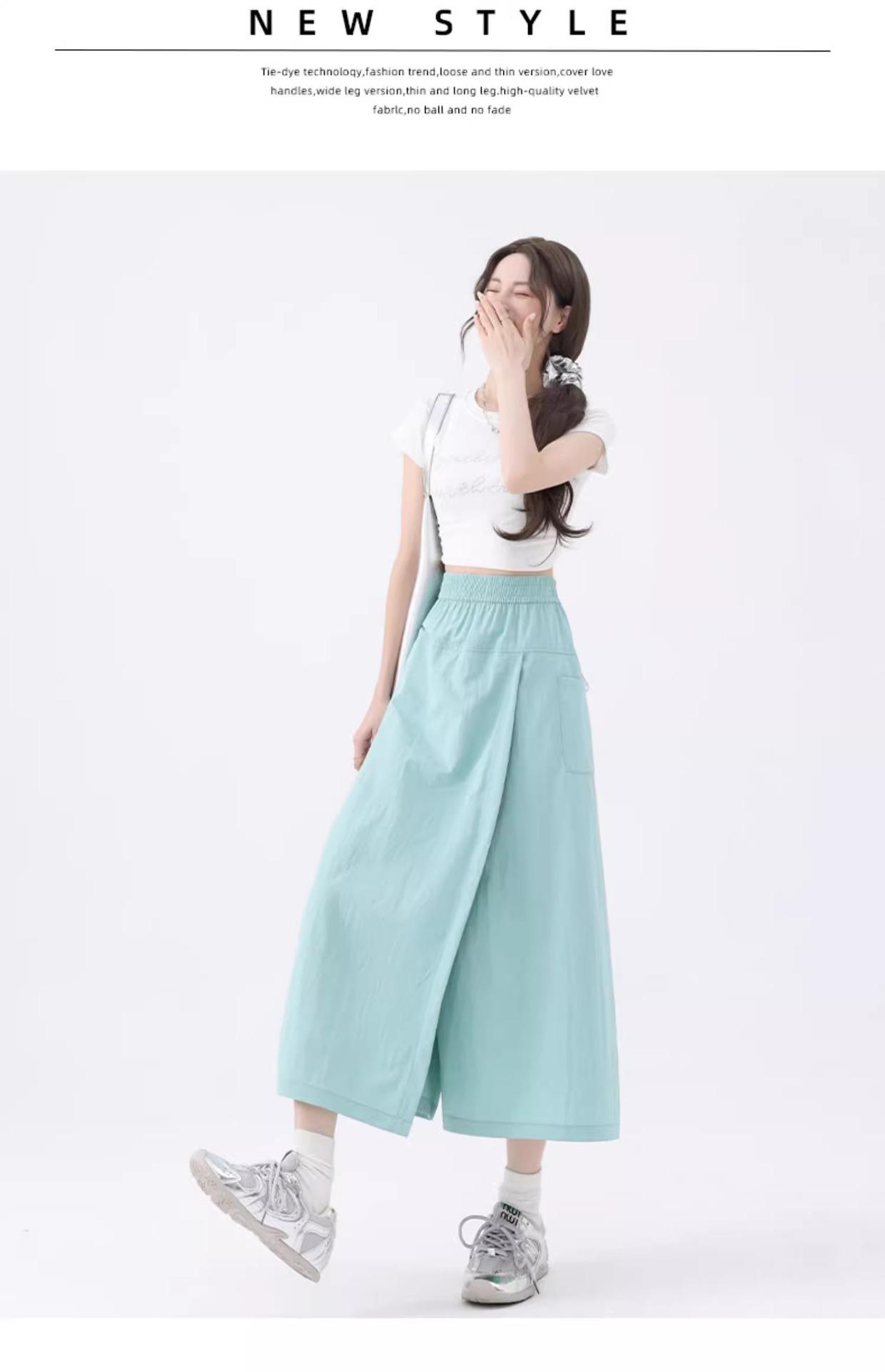 Culottes Cargo para Mujer Verano 2025 Nuevo Look Adelgazante de Cintura Alta Falda Línea A Pantalones Sueltos de Pierna Ancha de Seda Helada Pequeños