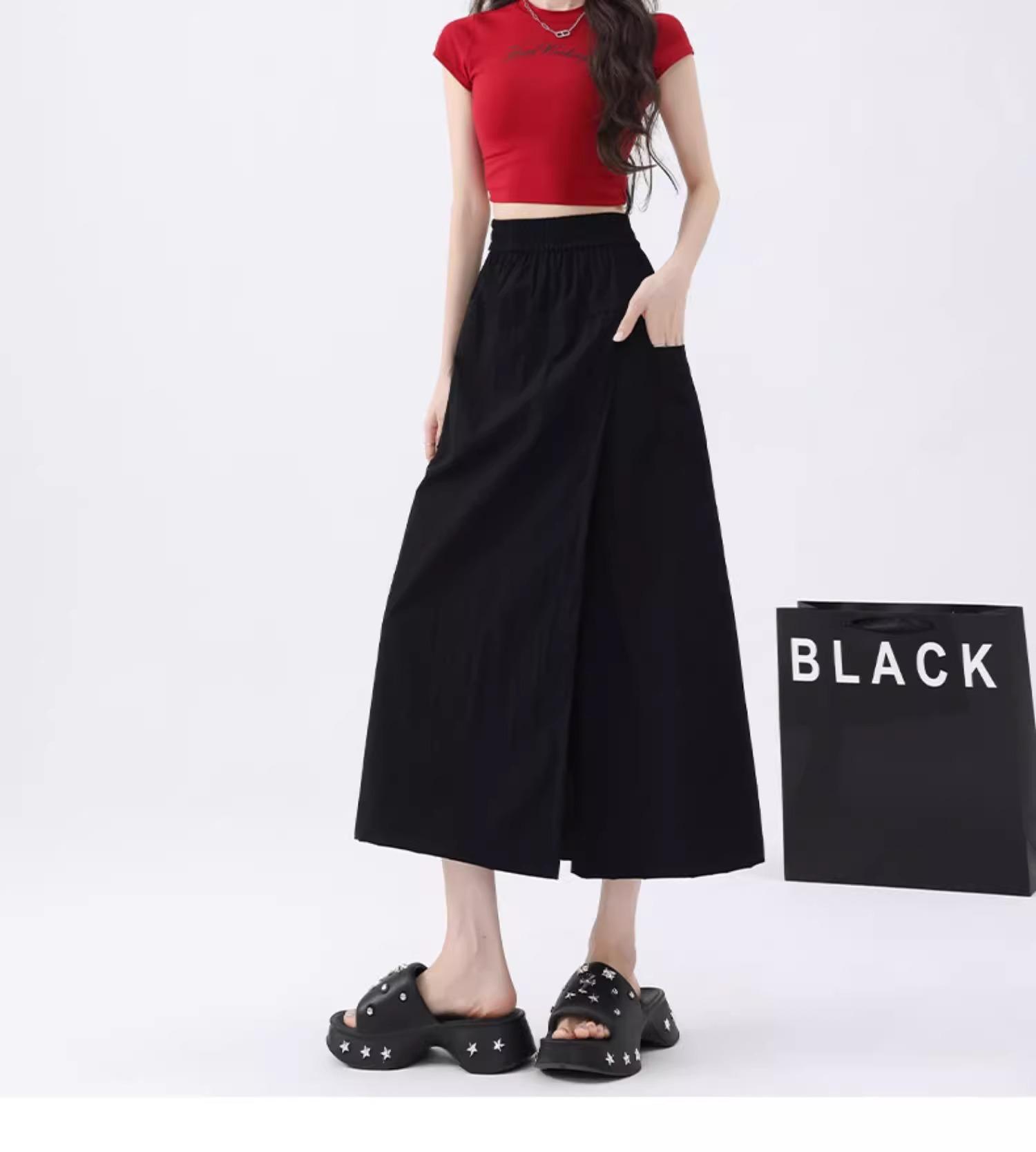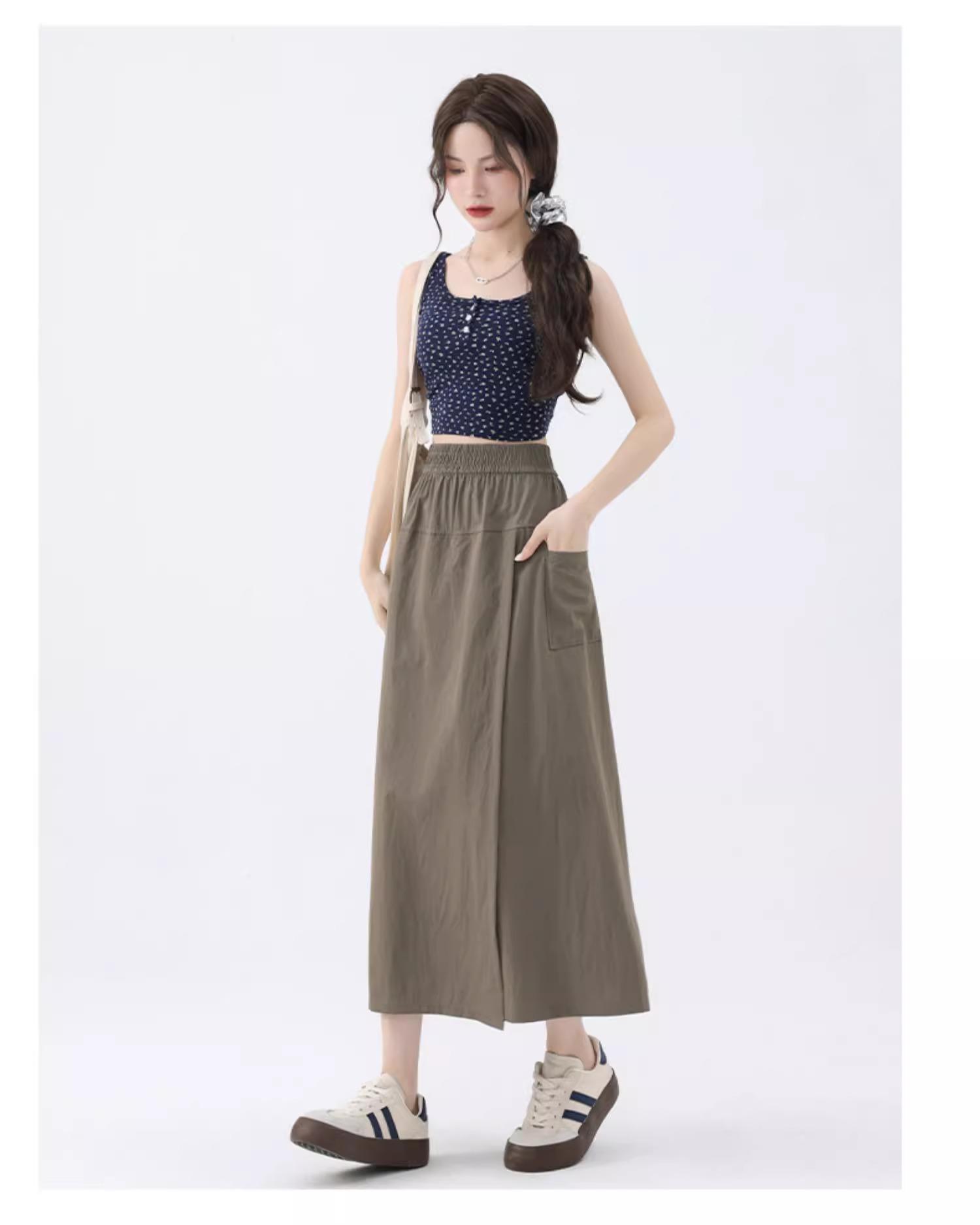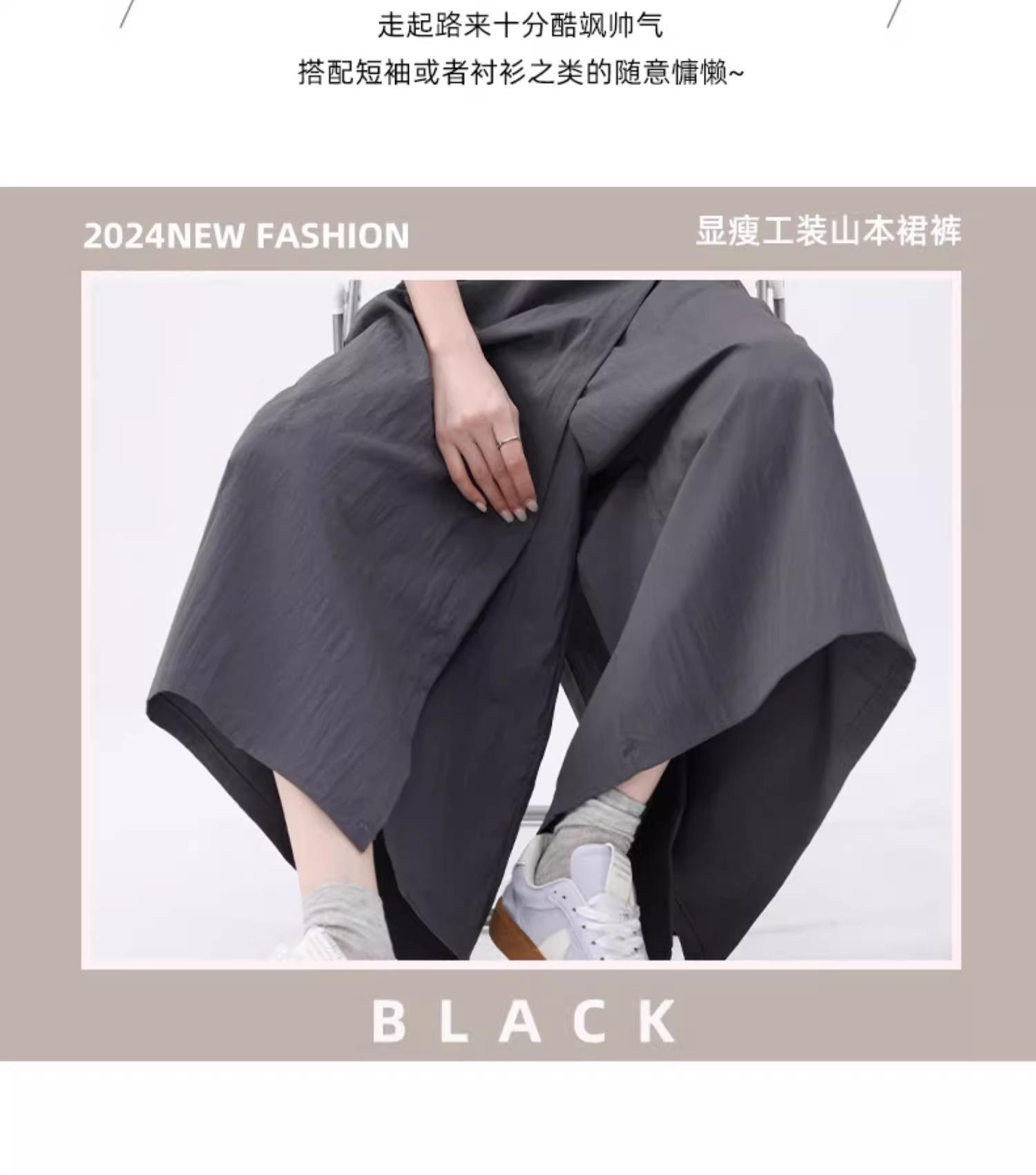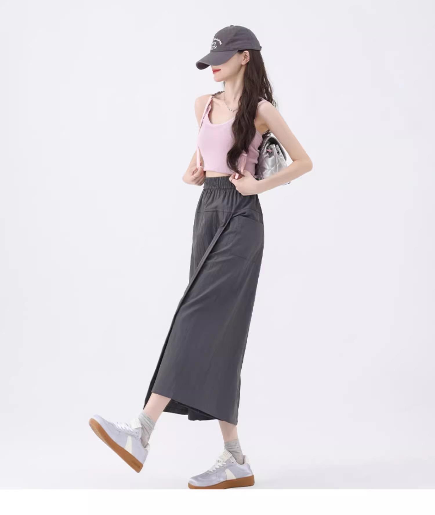 Culottes Cargo para Mujer Verano 2025 Nuevo Look Adelgazante de Cintura Alta Falda Línea A Pantalones Sueltos de Pierna Ancha de Seda Helada Pequeños