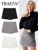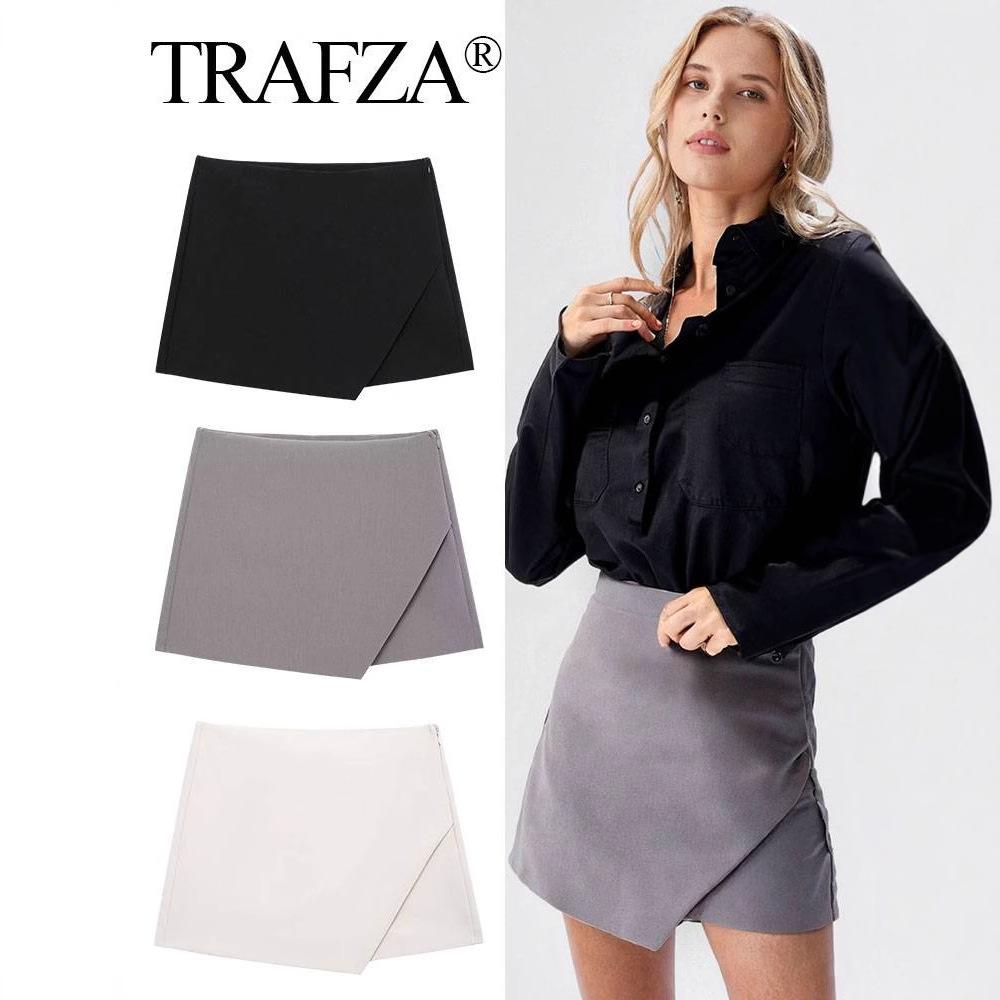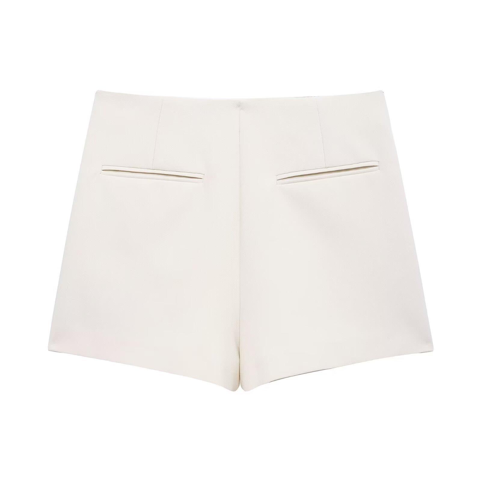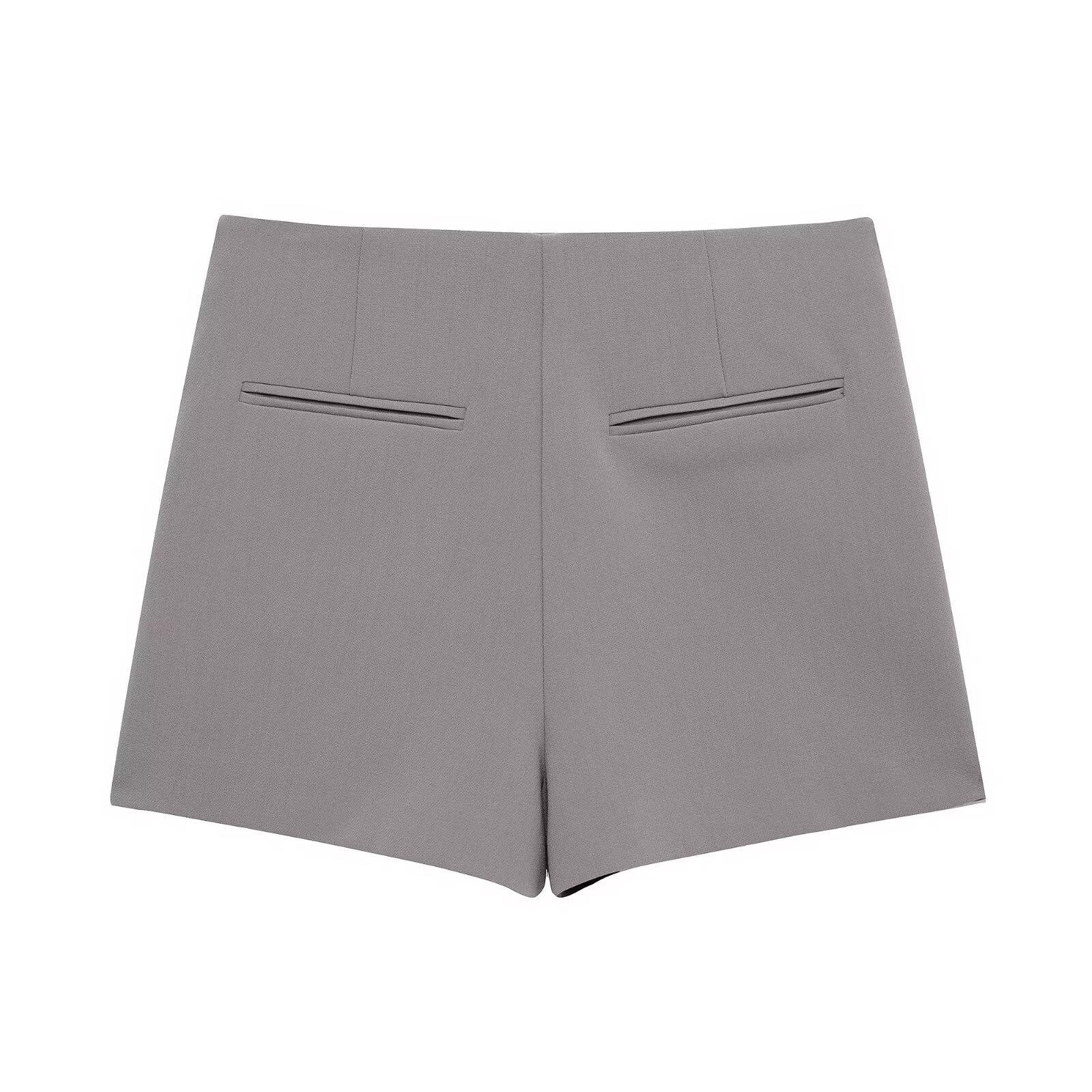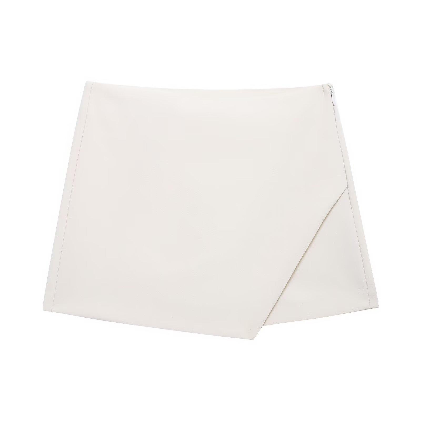 Venta al por mayor transfronteriza europea y americana Primavera y Verano Nuevo Pantalones cortos casuales para mujer de cintura alta con cremallera lateral Color sólido Culottes asimétricos
