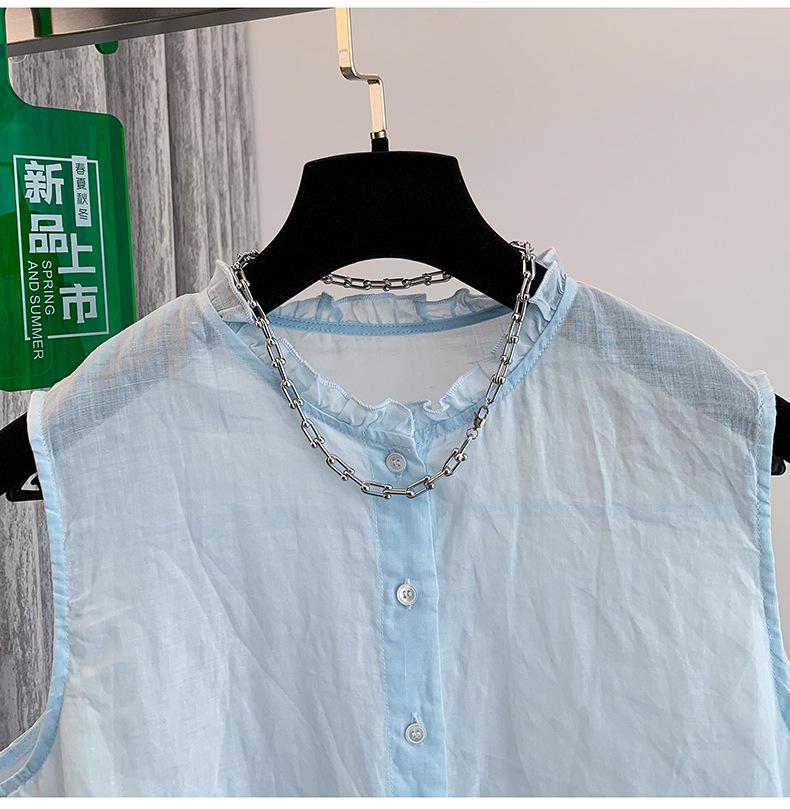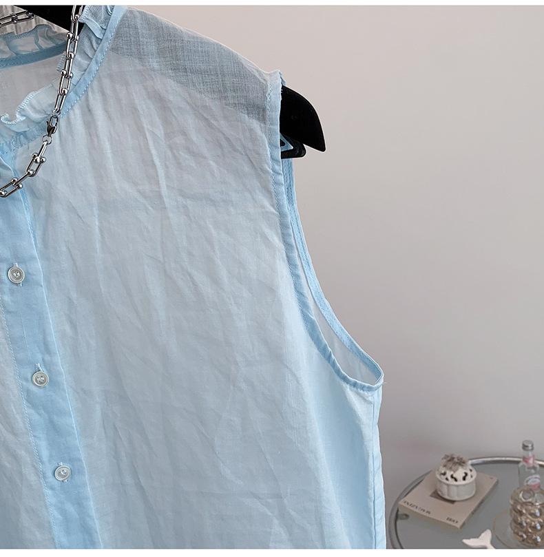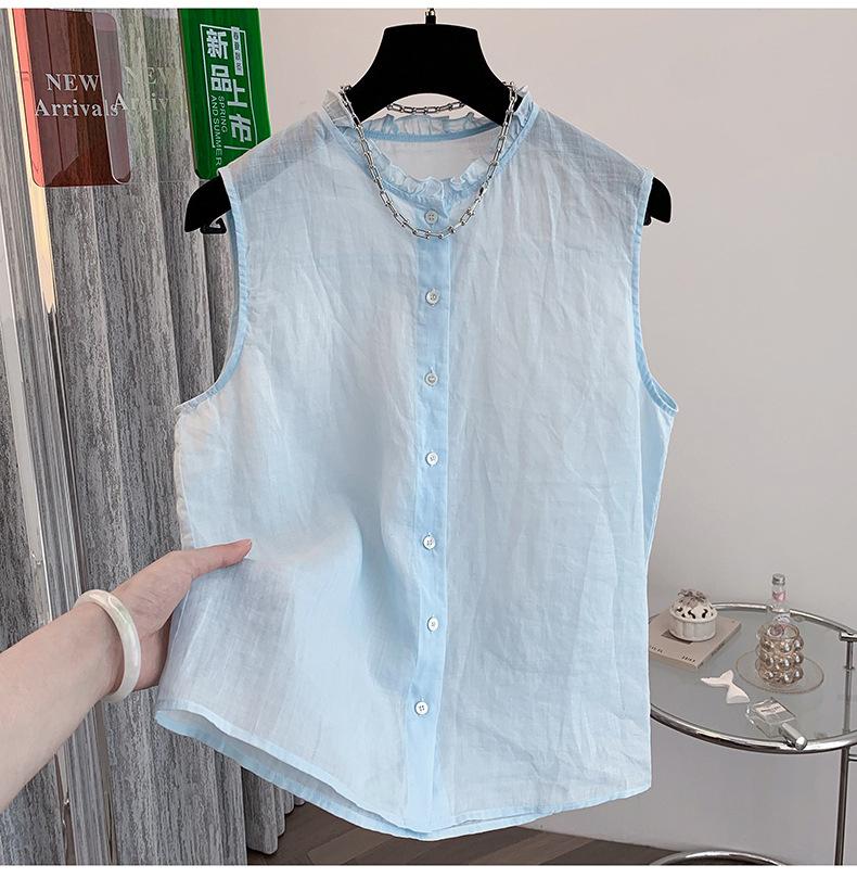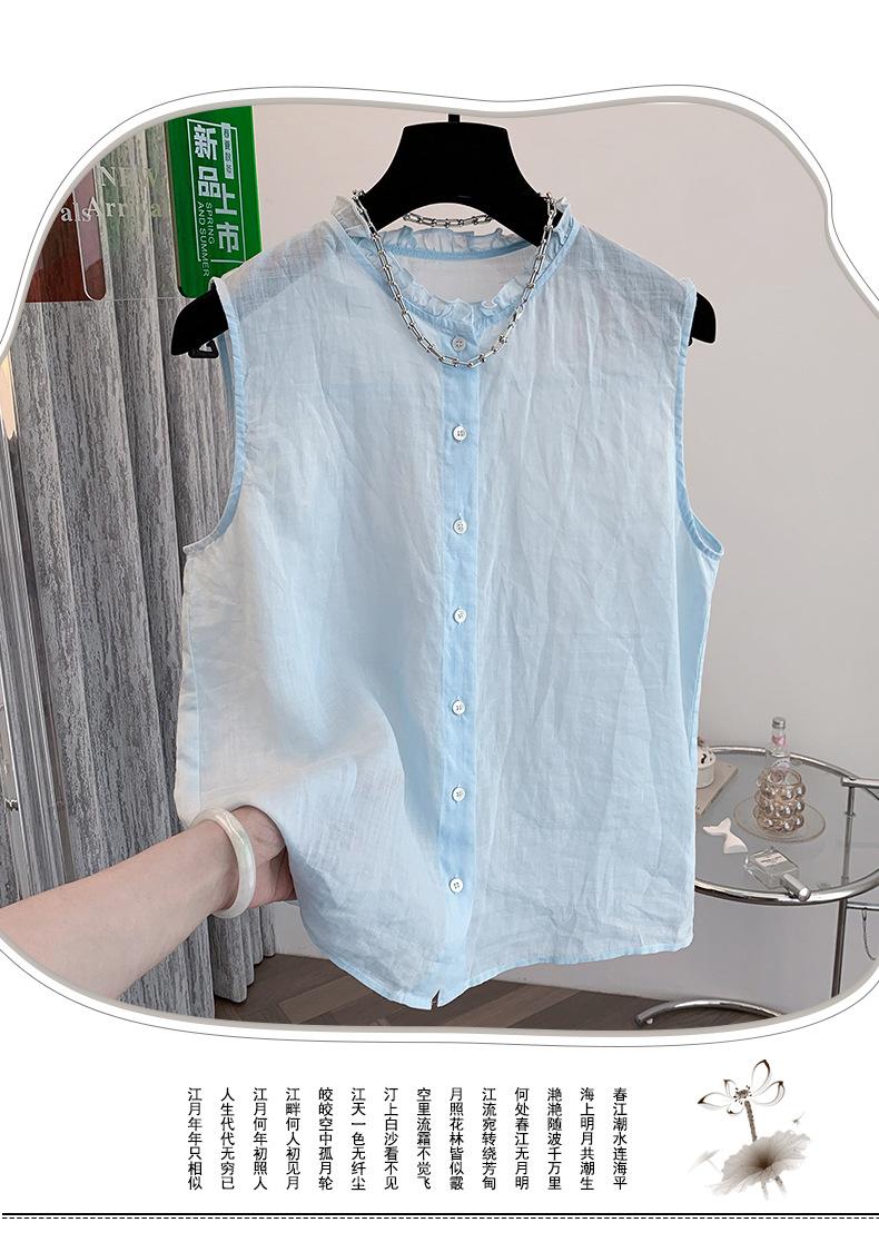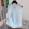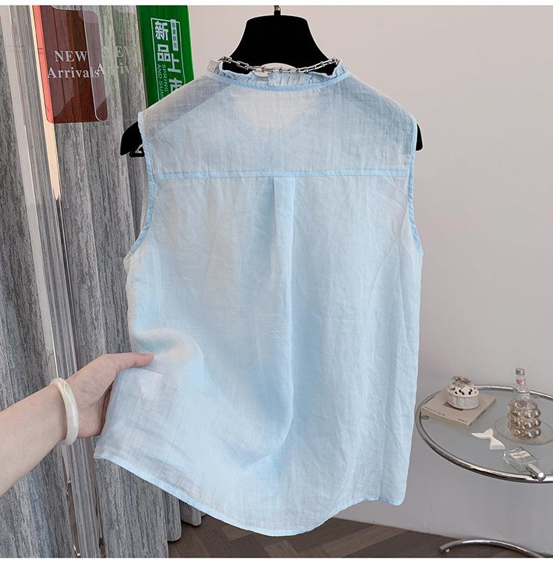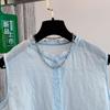 Chaleco Azul 2025 Verano Nuevo Moda Coreana Cuello Redondo Volantes Sin Mangas para Mujer Holgado Dulce Reductor de Edad Top