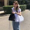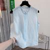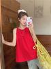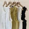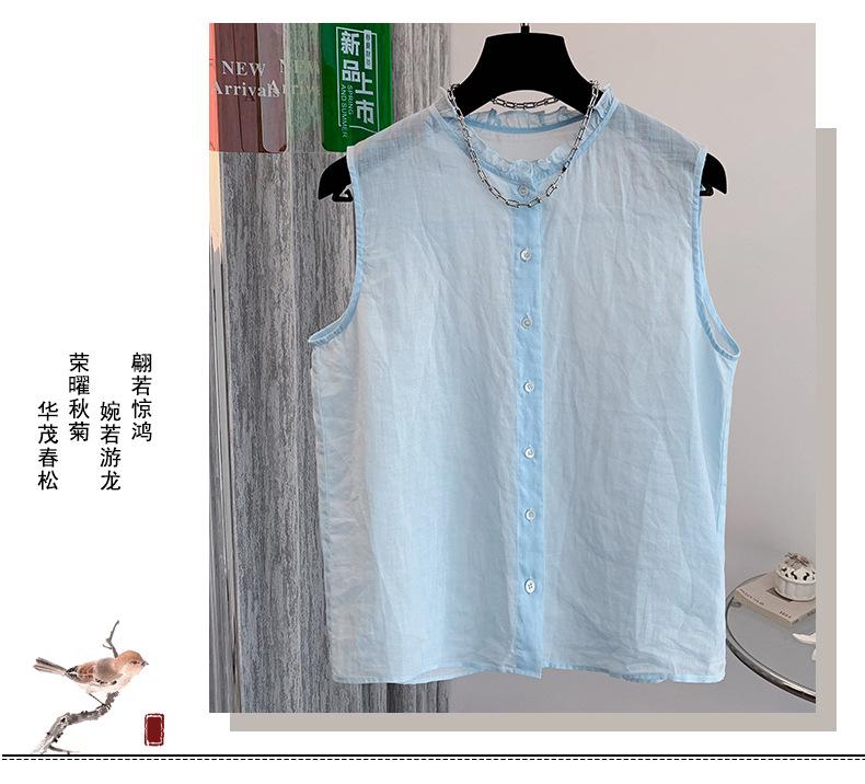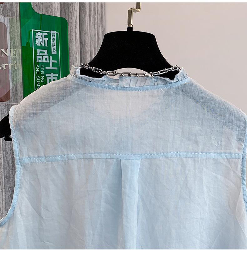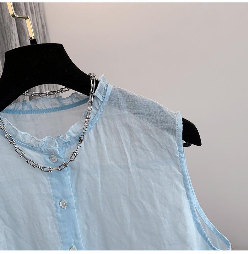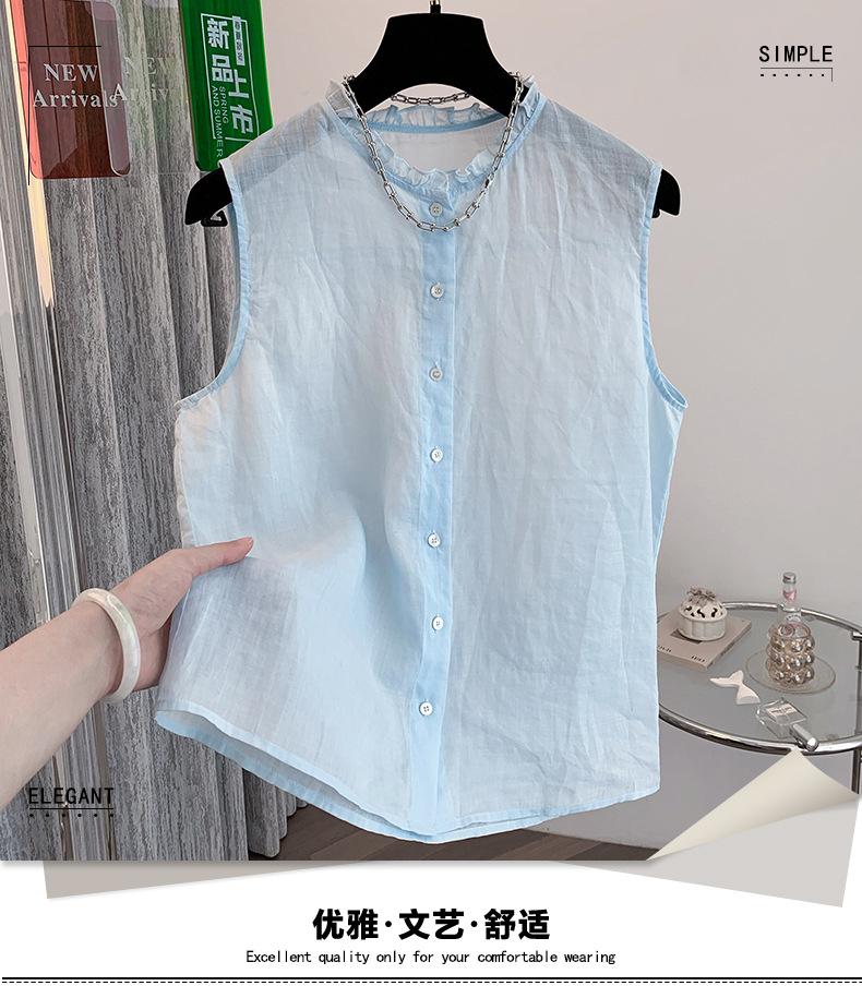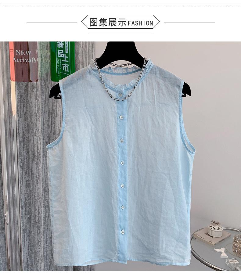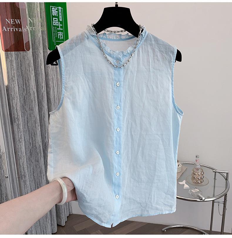 Chaleco Azul 2025 Verano Nuevo Moda Coreana Cuello Redondo Volantes Sin Mangas para Mujer Holgado Dulce Reductor de Edad Top