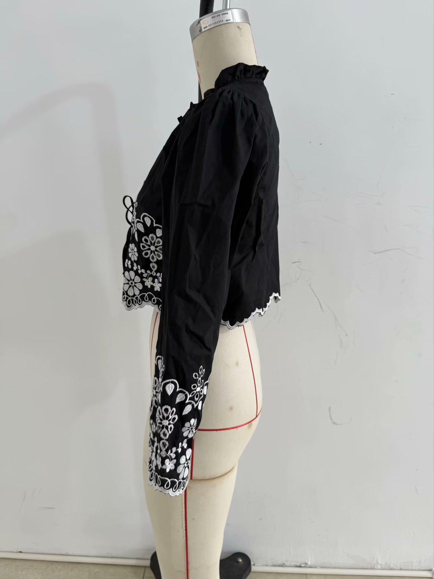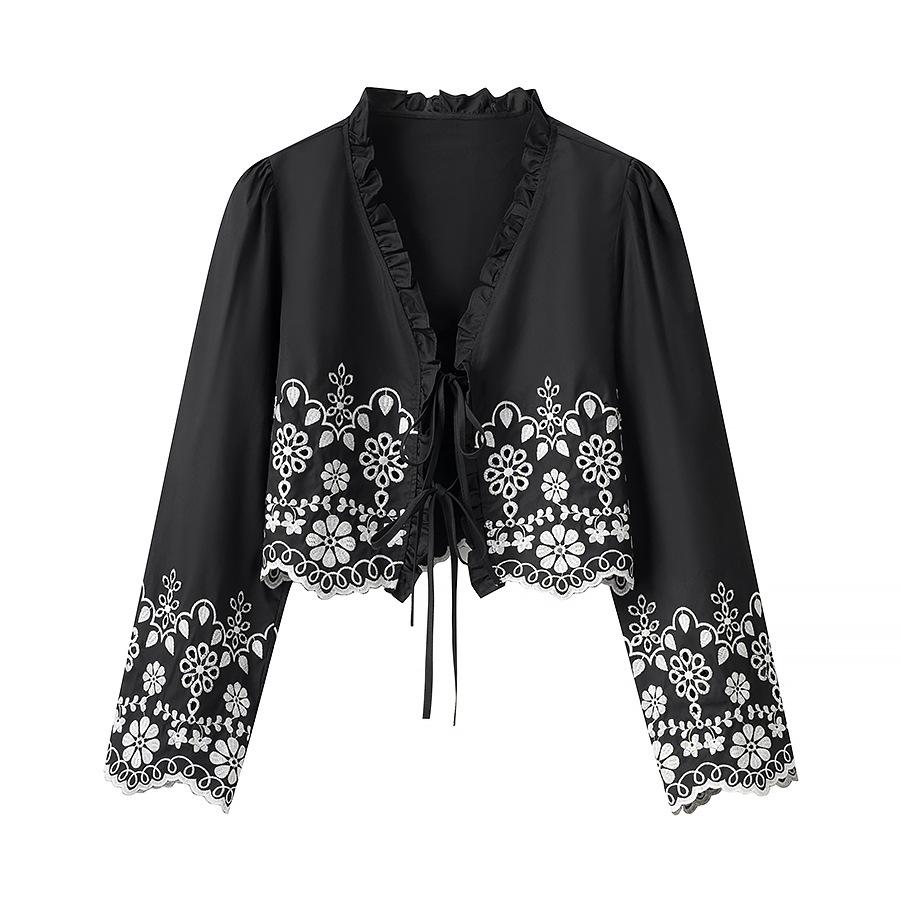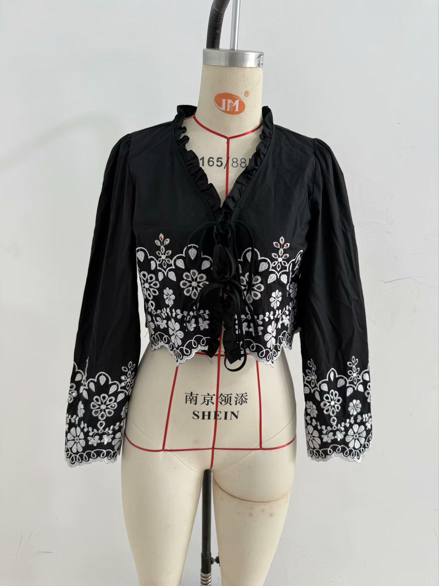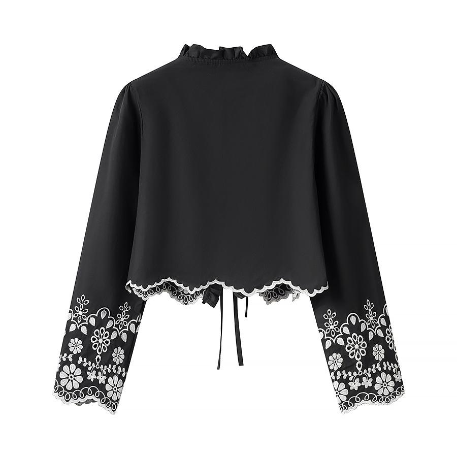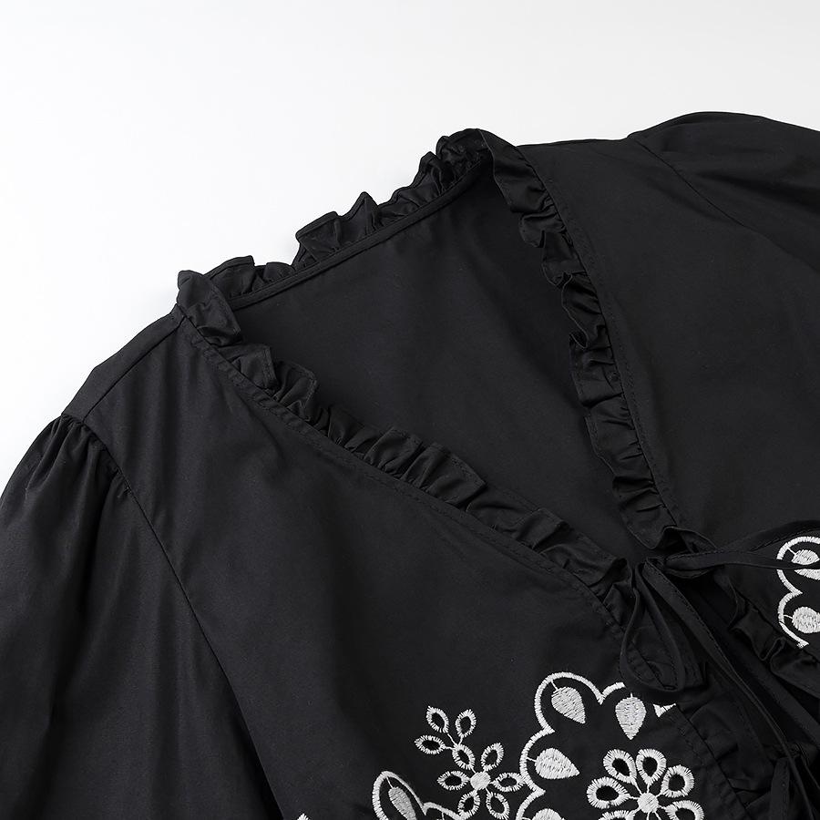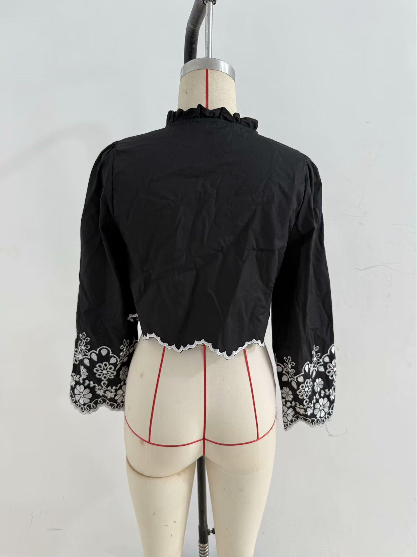 Ropa de Mujer Transfronteriza de Comercio Exterior 2025 Verano Moda Europea y Americana Cuello Hongo Encaje Recorte Bordado Camisa para Mujer C92620