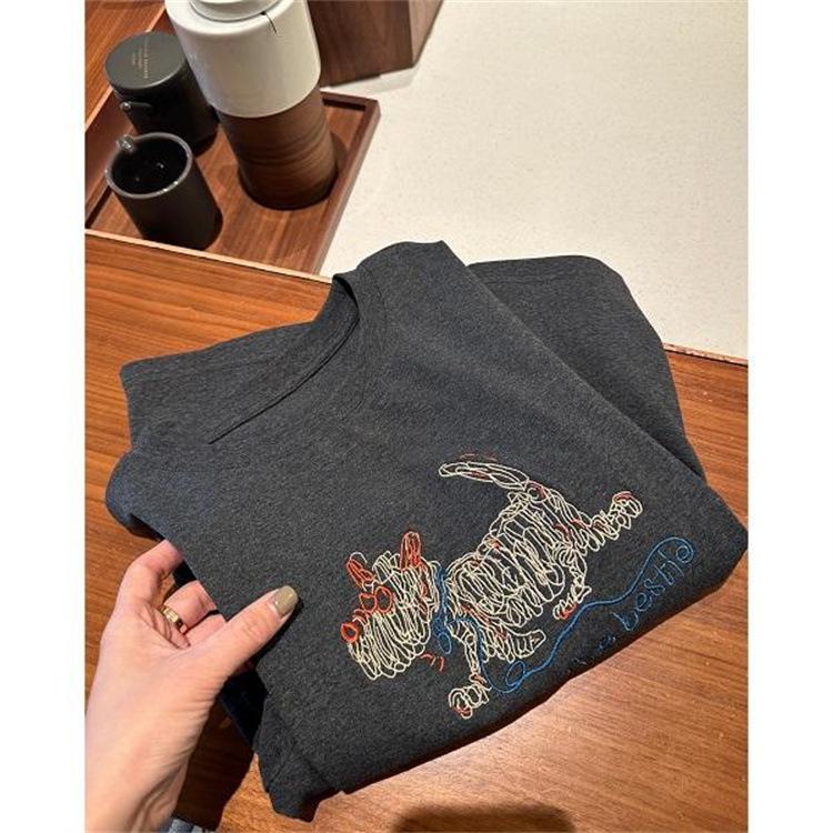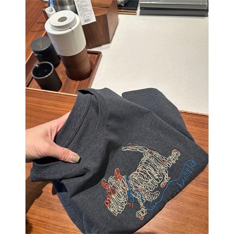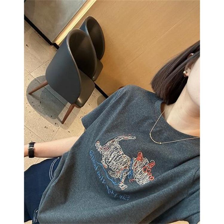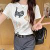 Moda Americana Divertida Estampado de Dibujos Animados Hombro Manga Corta Top 2025 Primavera y Verano Nuevo Jersey Cuello Redondo Camiseta