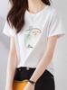 Camiseta de Manga Corta para Mujer Verano 2025 Nueva Camiseta de Algodón con Cuello Redondo y Hombro Derecho Descubierto para Mujer Diseño de Top con Cintura Acordonada con Hebilla