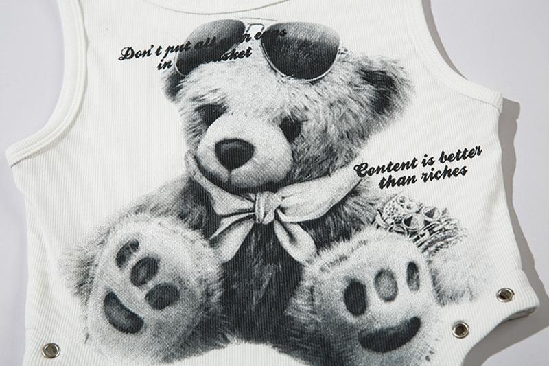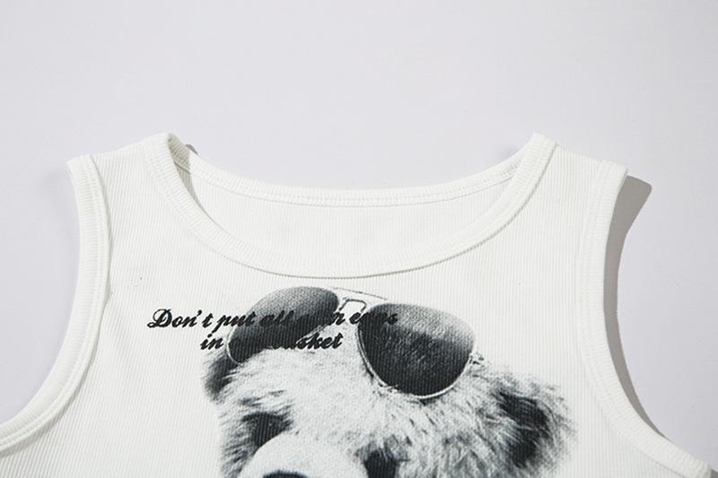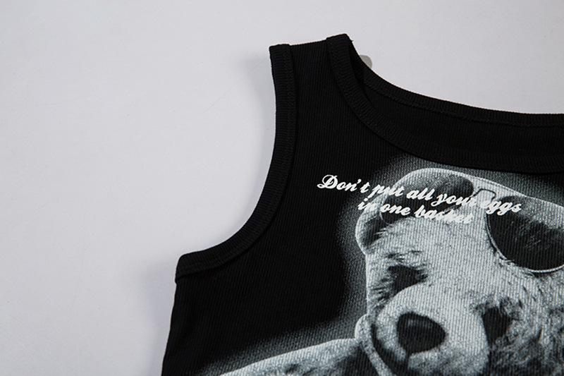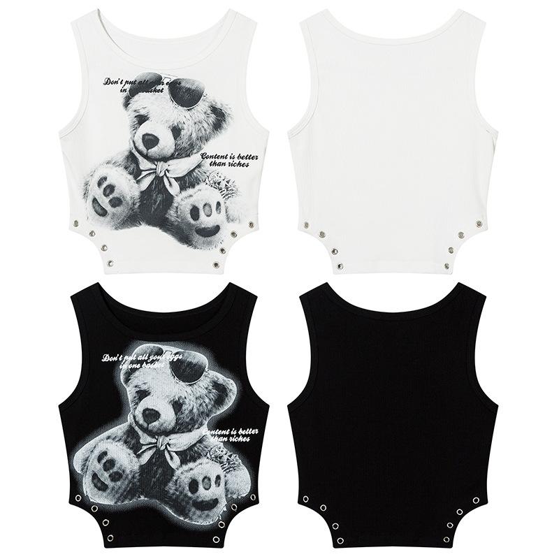 Elegante Chaleco sin Mangas con Diseño de Estampado de Oso para Mujer Verano Nuevo Chica Caliente Adelgazante Top Corto Moderno 2025 Nuevo