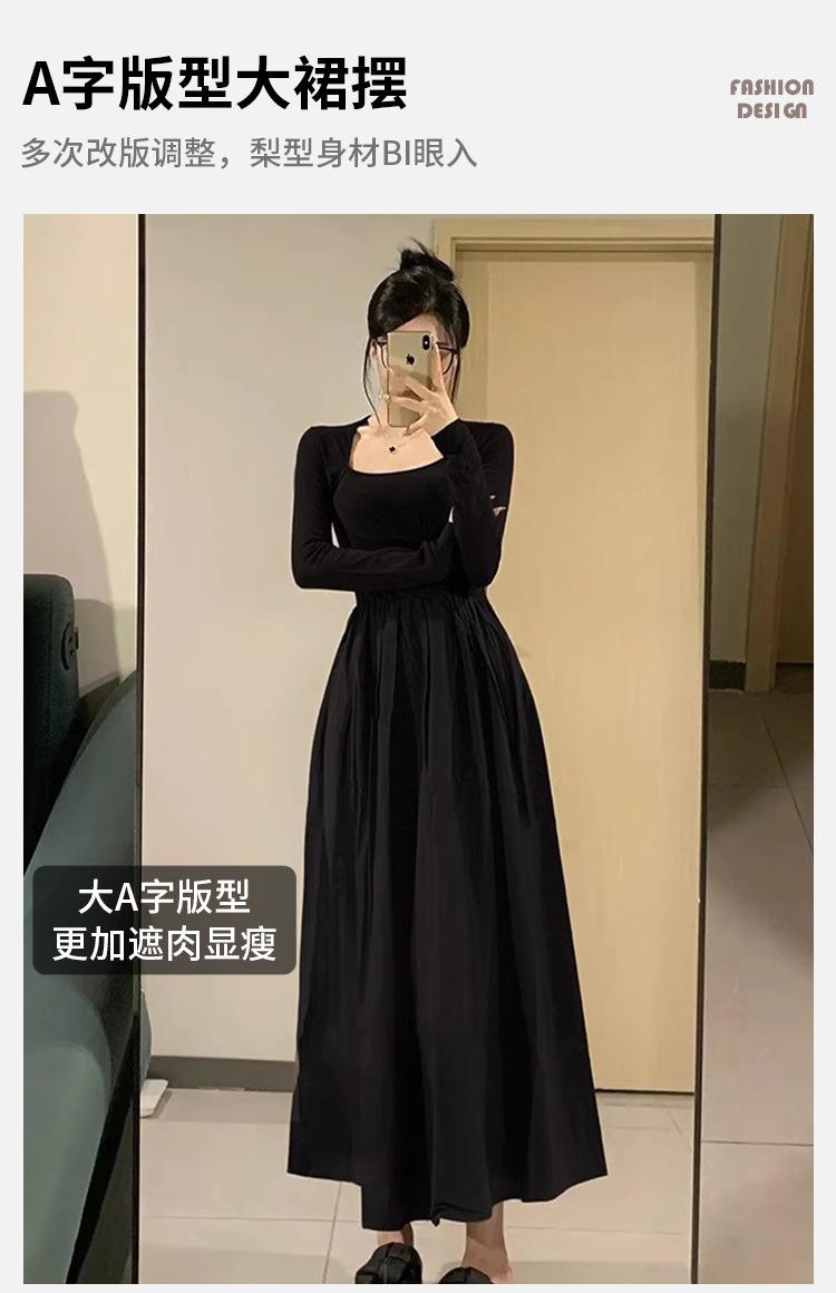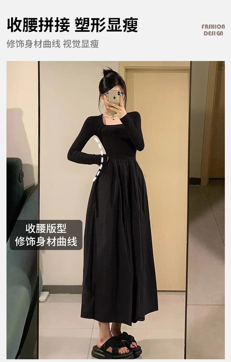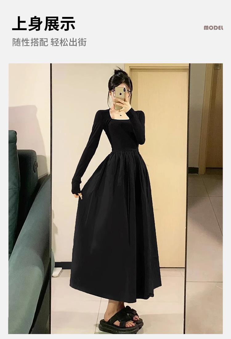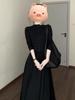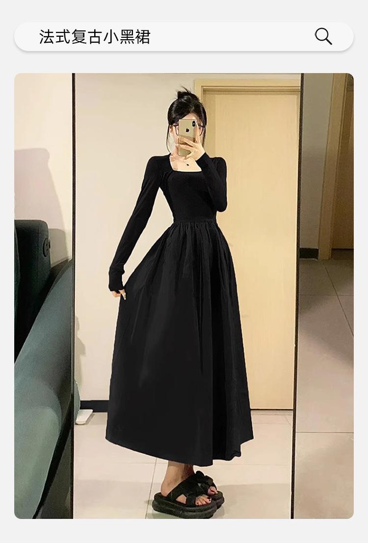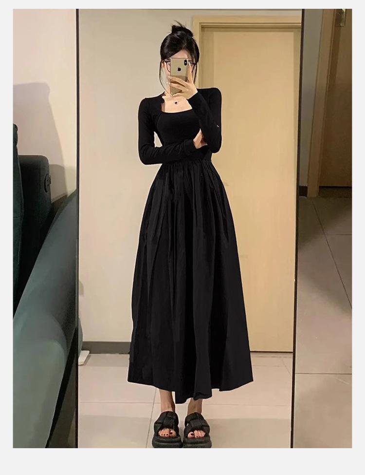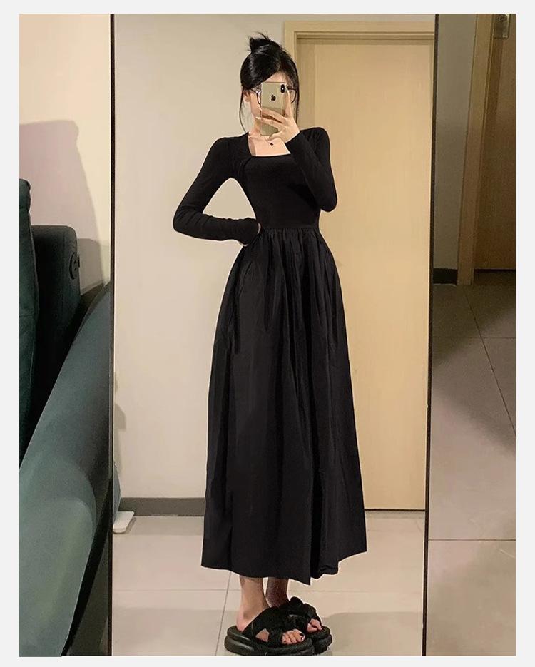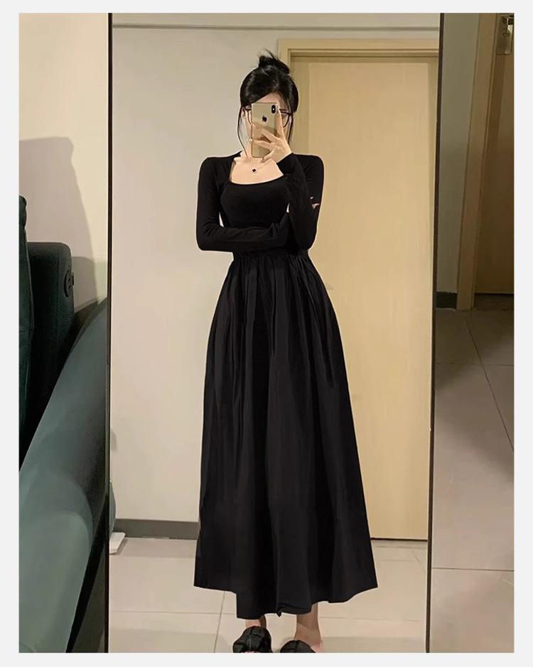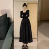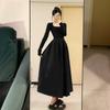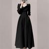 Vestido negro de estilo Hepburn transfronterizo para mujer primavera y otoño 2025 manga larga de alta gama francés ceñido a la cintura vestido largo