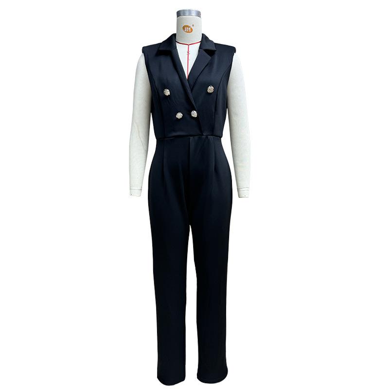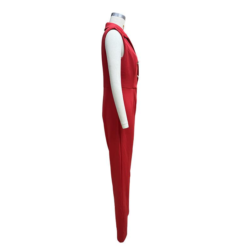 Compra LN1137 En Stock Verano 2025 Temperamento Color Sólido Cuello de Traje Mono sin Mangas Adelgazante Temperamento Ropa de Mujer Europea y Americana al por mayor en Joom.pro