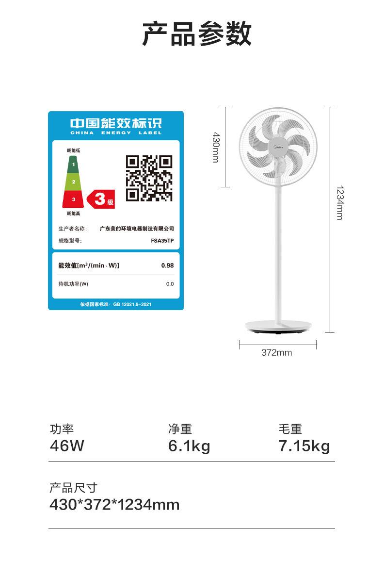 Ventilador Eléctrico Midea Ventilador de Piso Mecánico 14 Pulgadas 7 Aspas Tres Velocidades Fsa35Tp