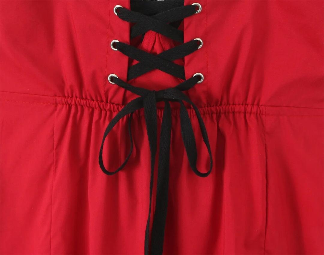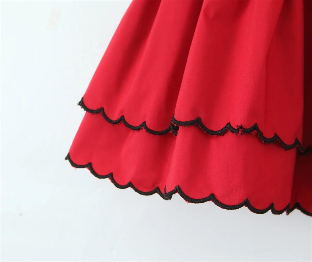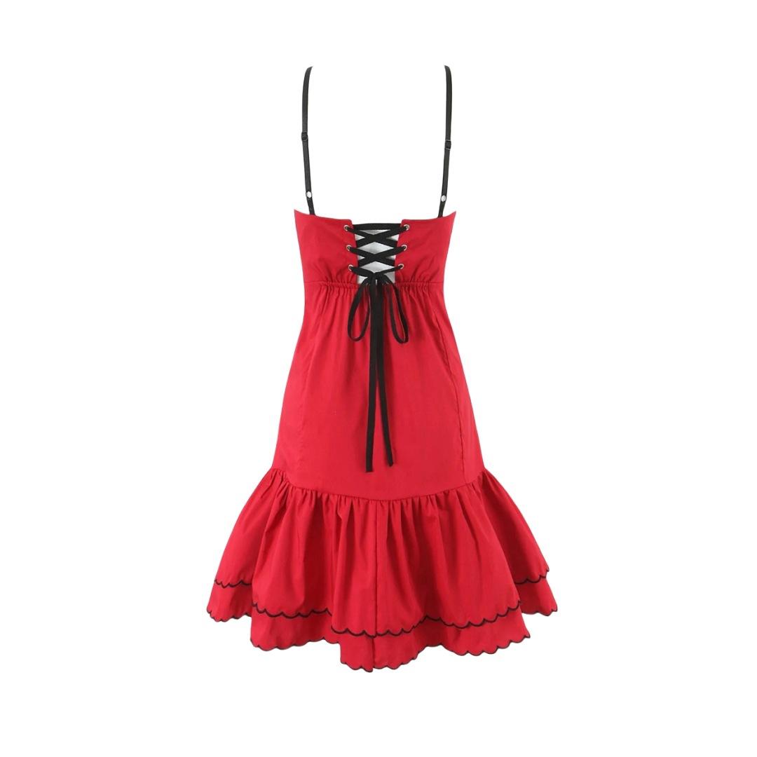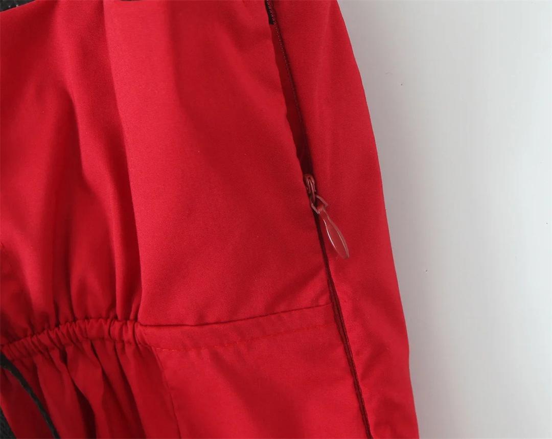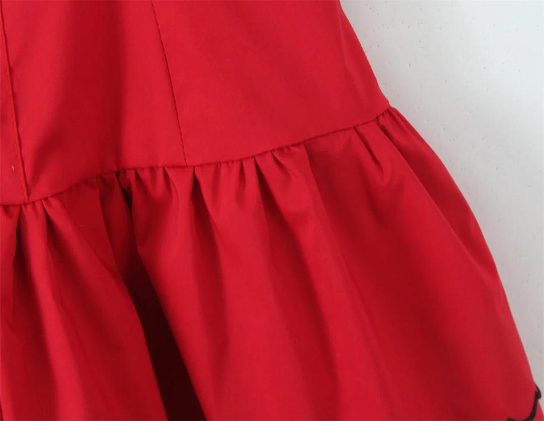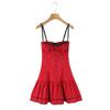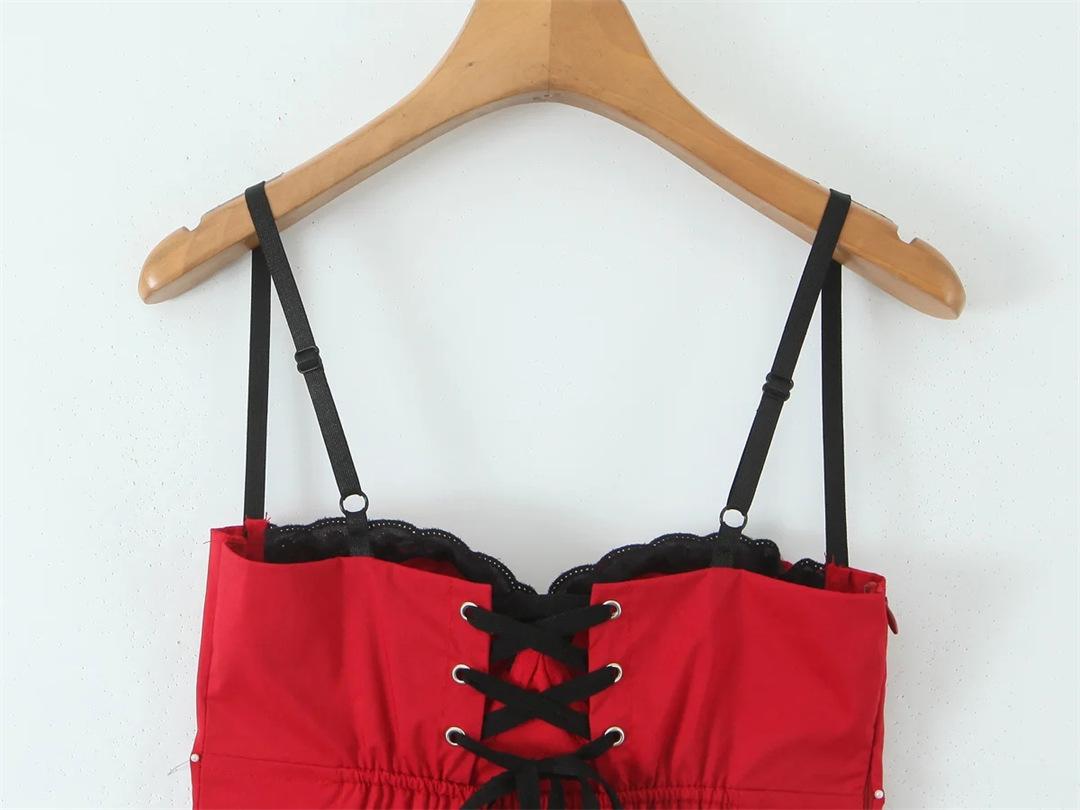 Estilo Europeo y Americano Cuello de Encaje Color Contrastante Diseño de Vestido con Tirantes Puntadas de un Solo Botón Plisado en Capas Falda Slim