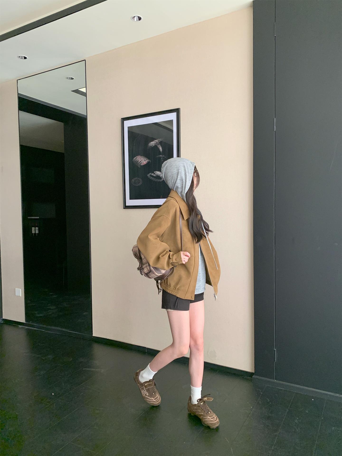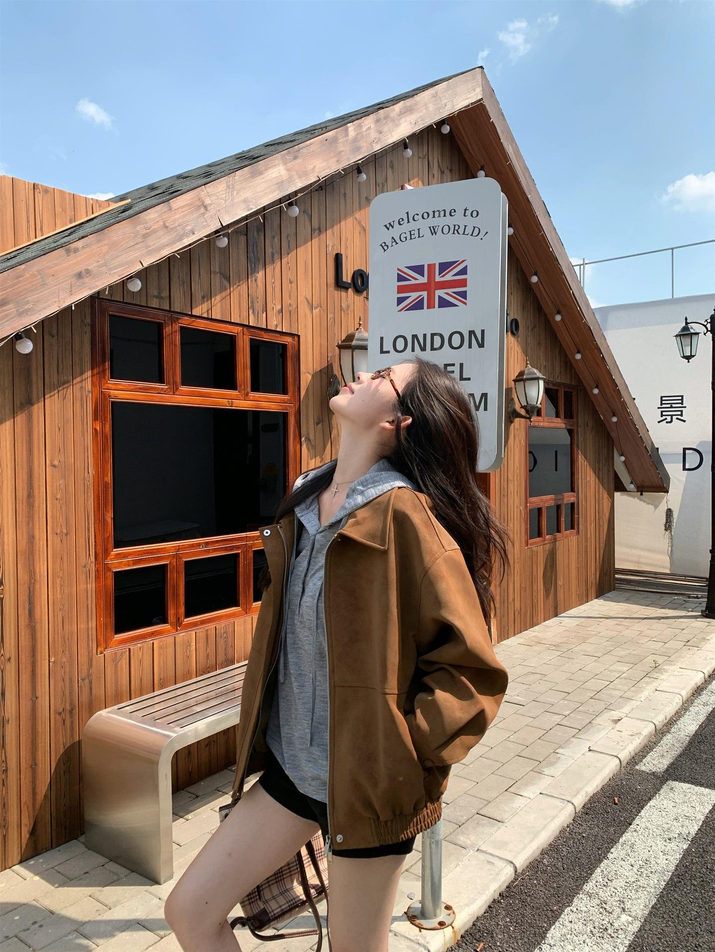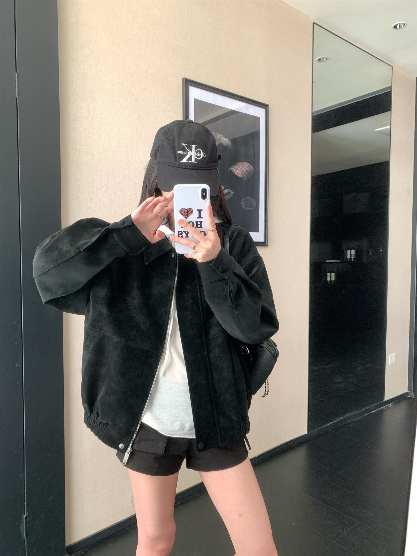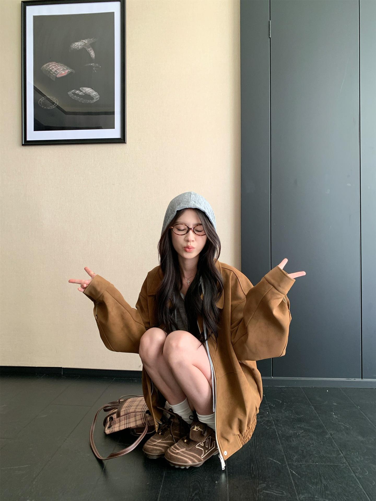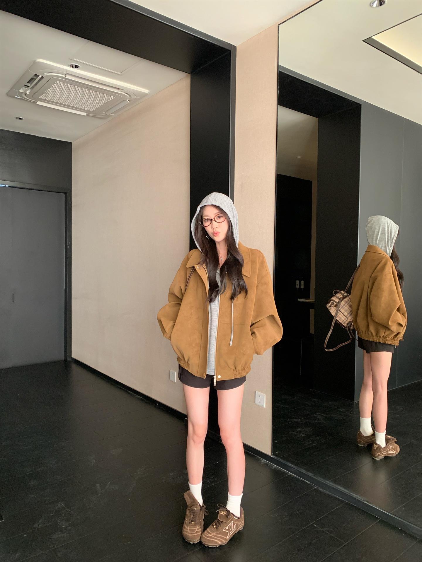 Foto Real Chaqueta de Gamuza Retro Mujer Otoño 2025 Americana Holgada Cuello Solapa Casual Versátil Adelgazante Abrigo Top