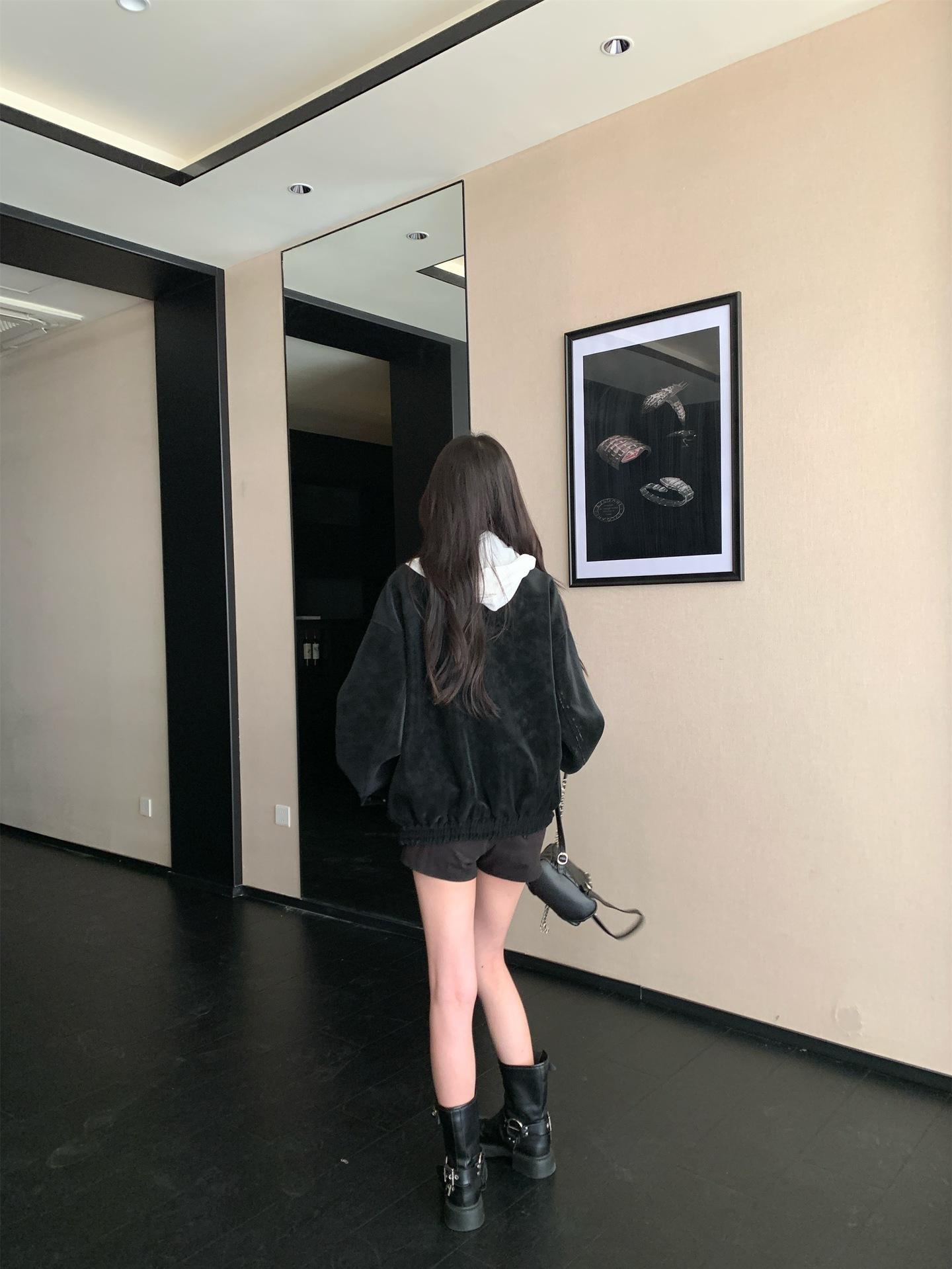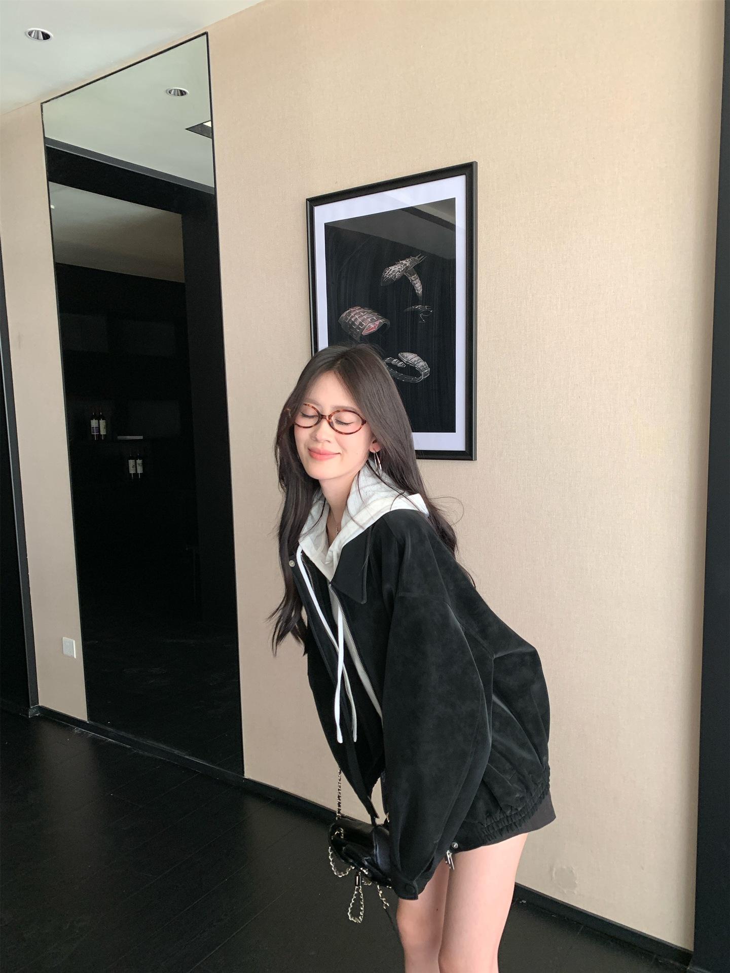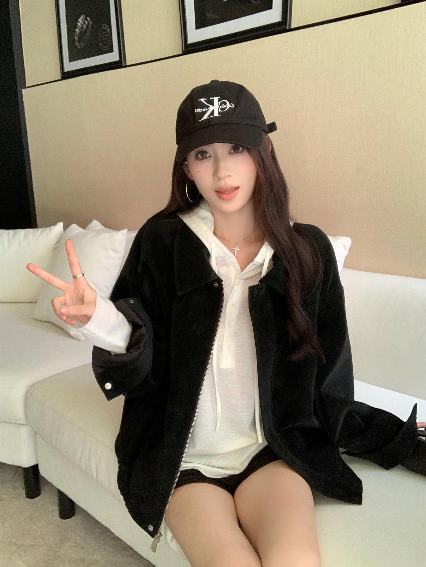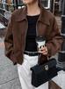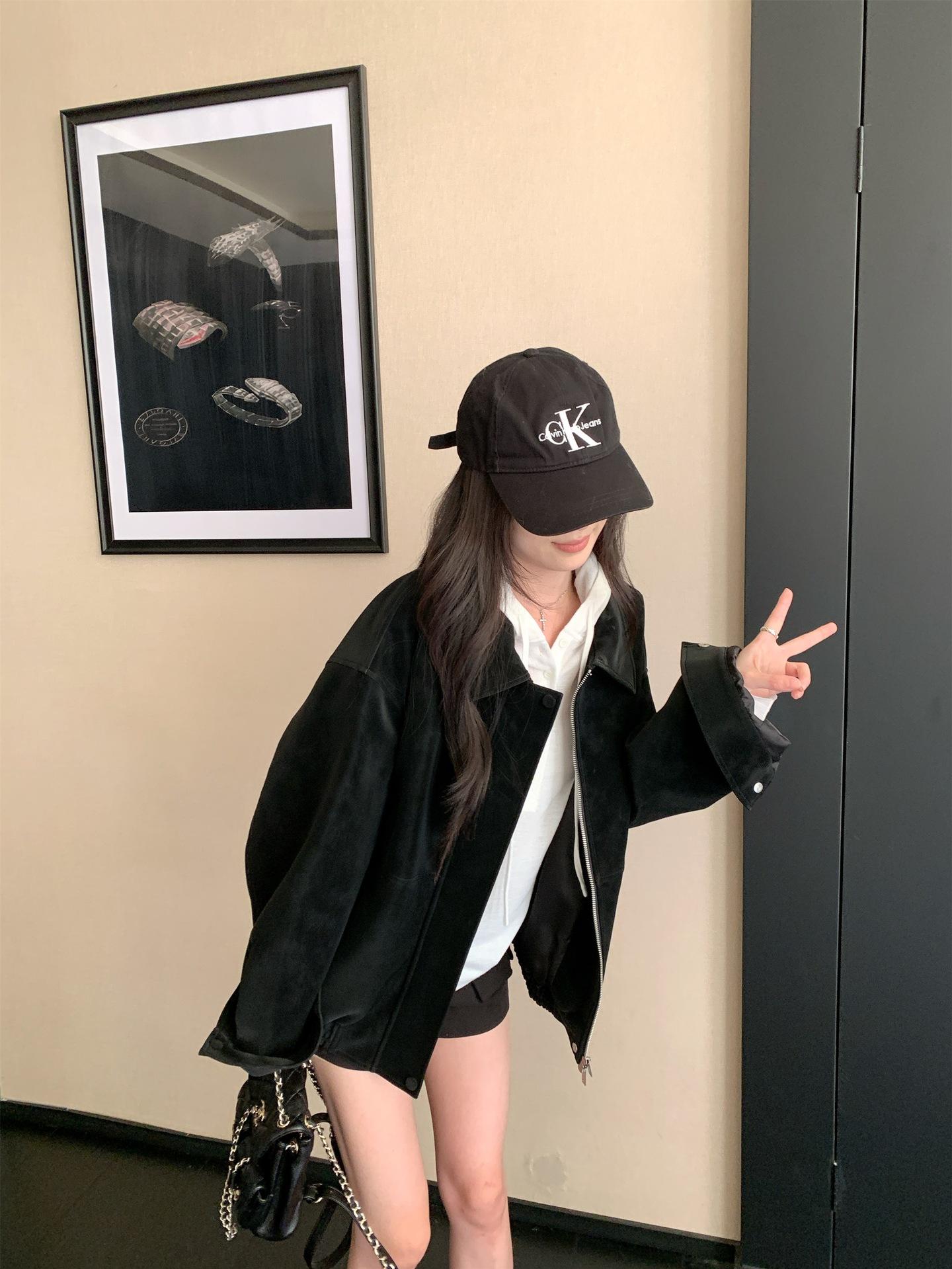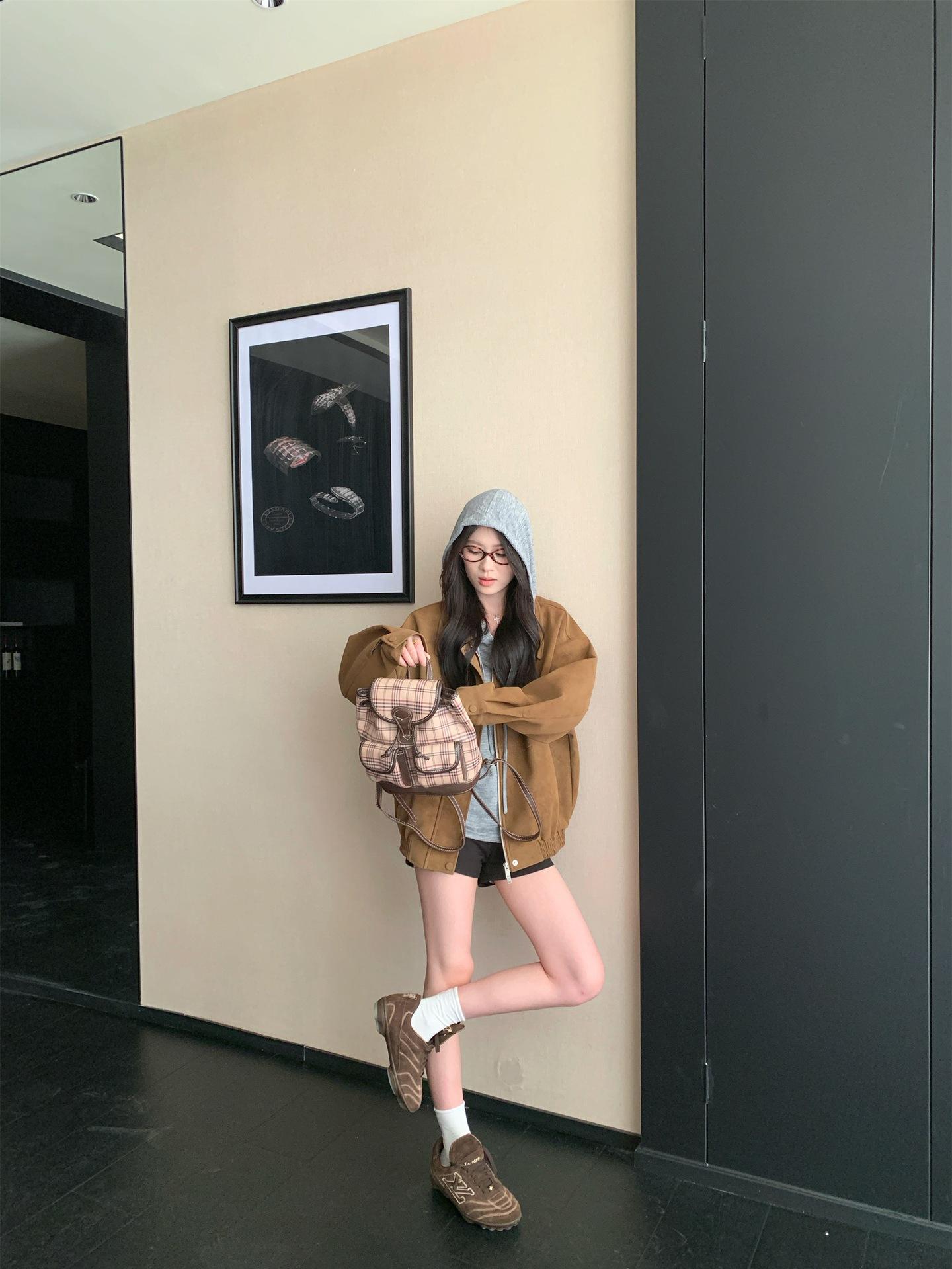 Foto Real Chaqueta de Gamuza Retro Mujer Otoño 2025 Americana Holgada Cuello Solapa Casual Versátil Adelgazante Abrigo Top