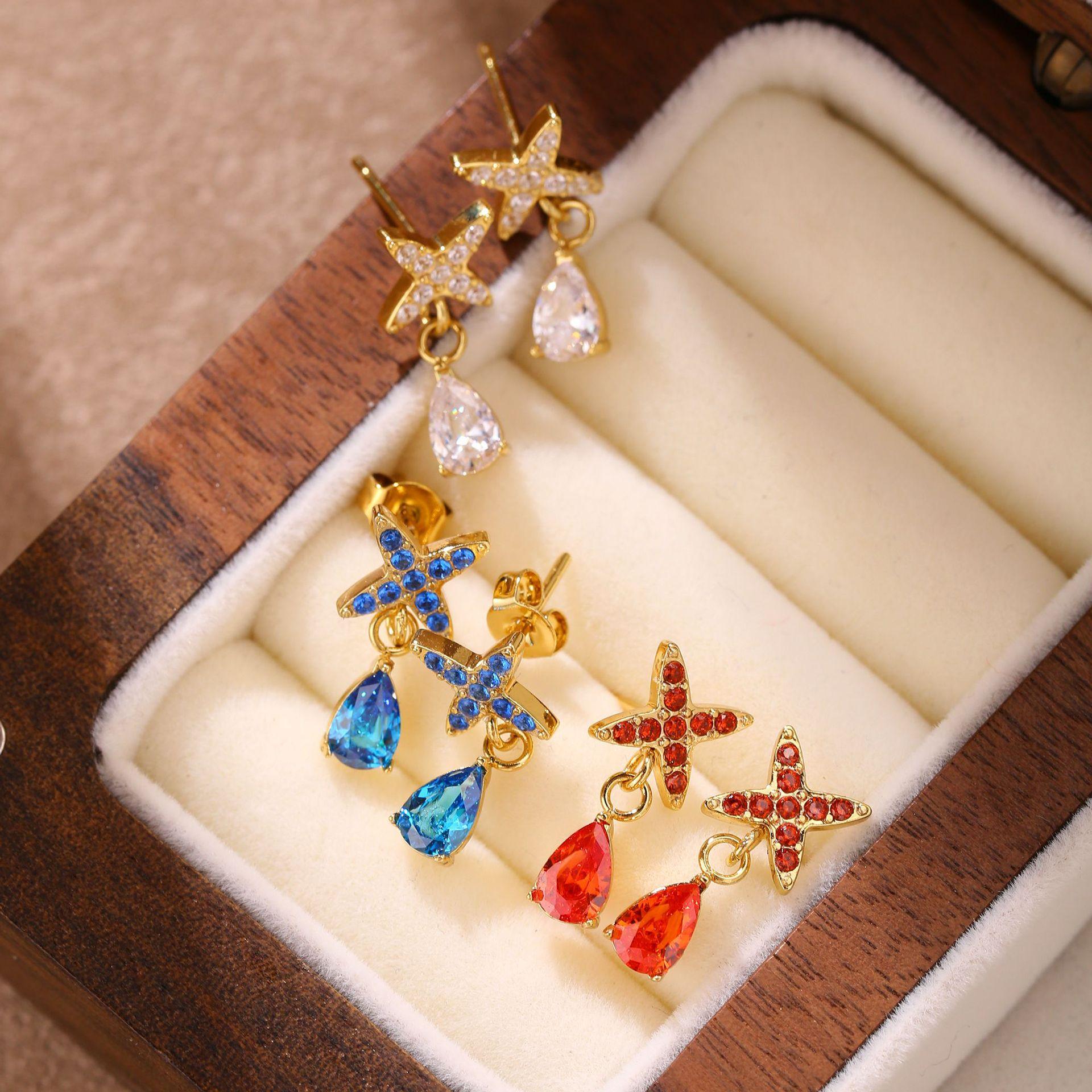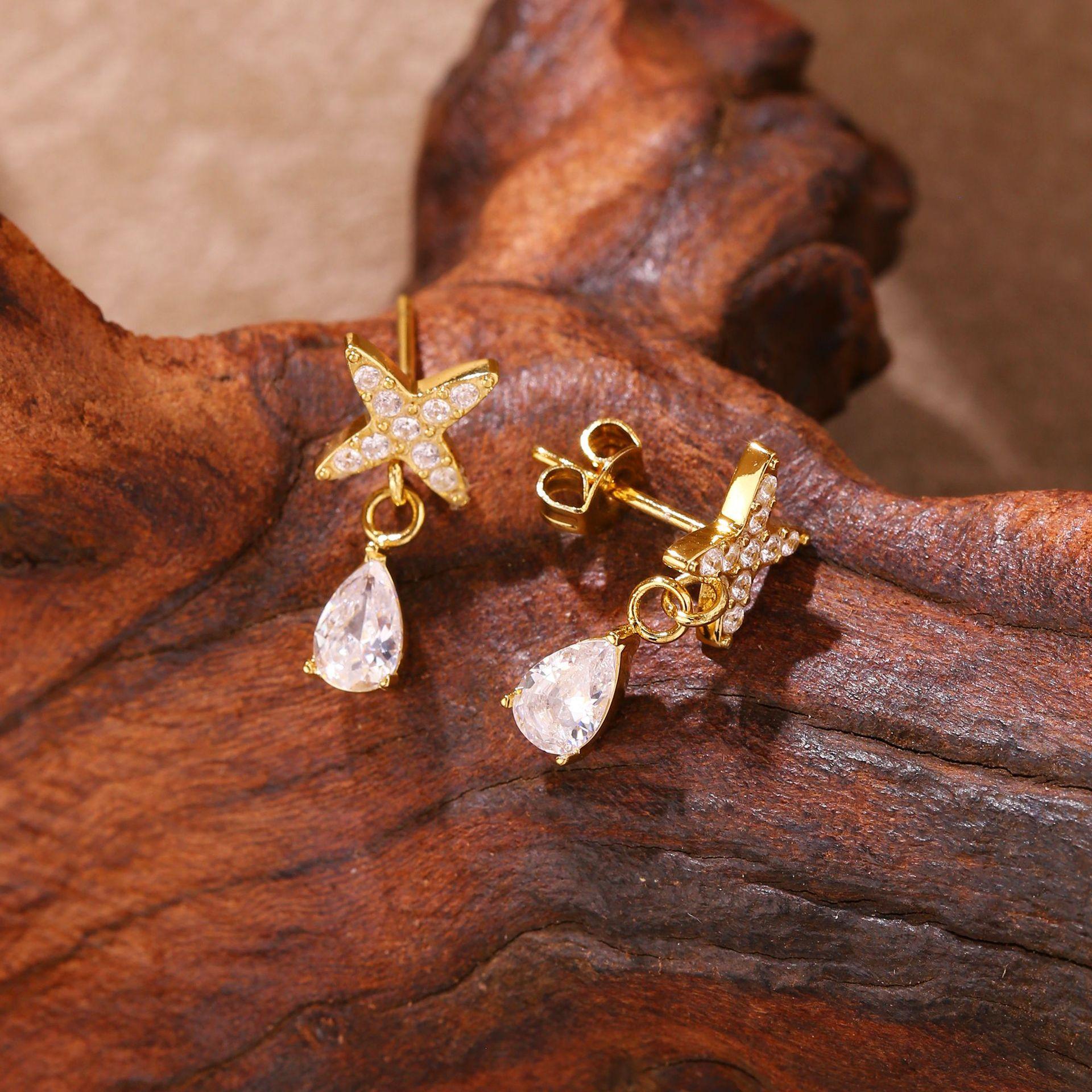 Aretes Populares Transfronterizos, Aretes de Diamantes Colgantes de Flores Modernos y Versátiles, Aretes de Diseño Nicho para Mujer al Mayoreo