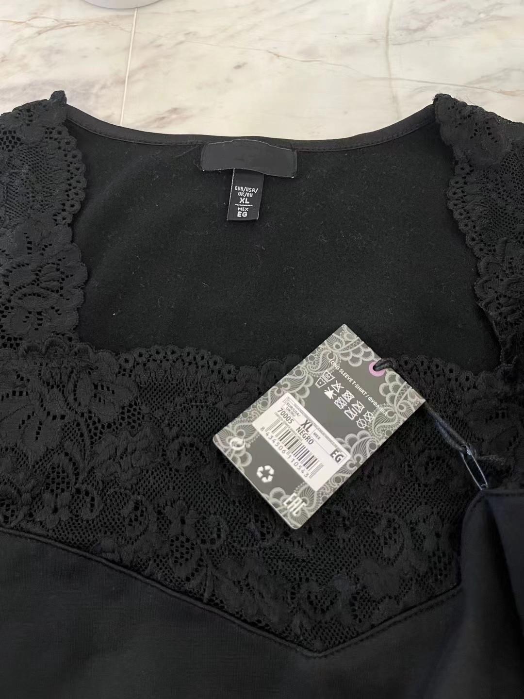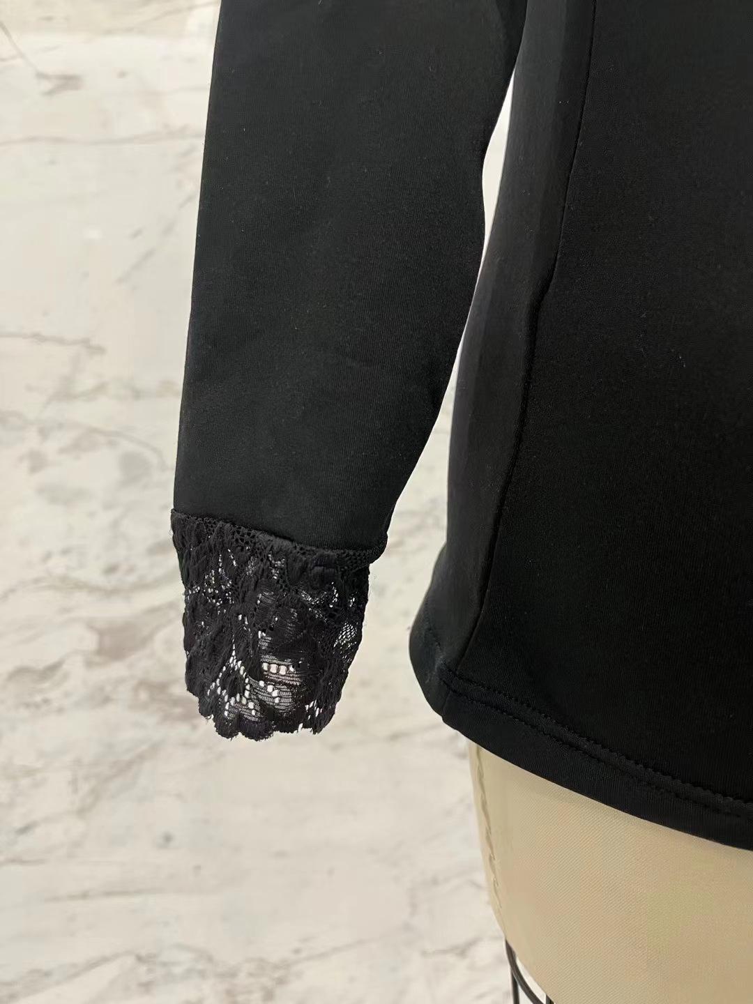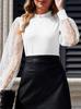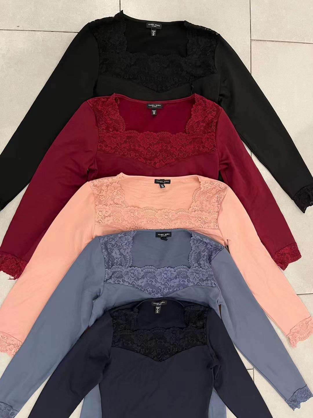 Playera de Encaje de Manga Larga para Mujer Damas Fibra de Poliéster Elástica Top Femenino Cuello Cuadrado Playera de Encaje