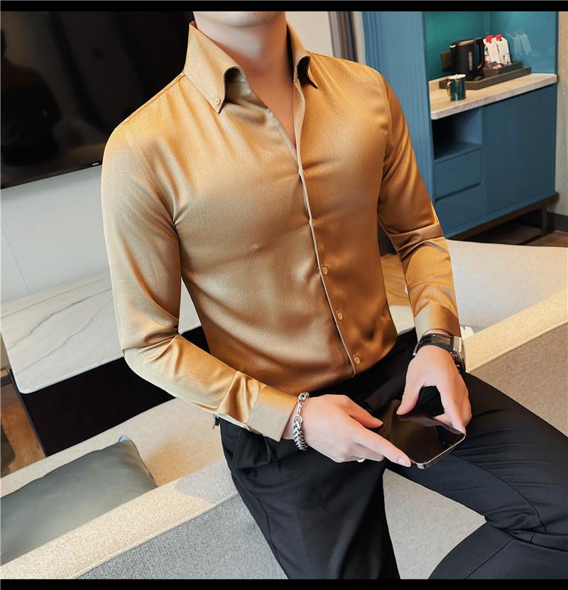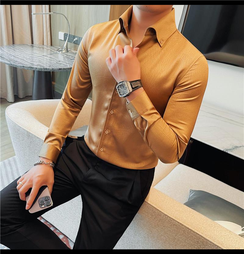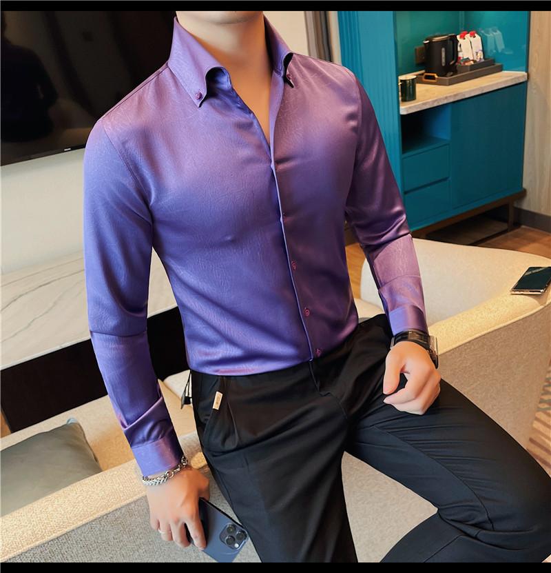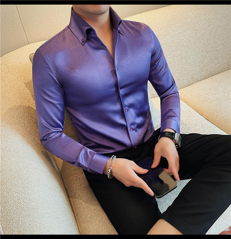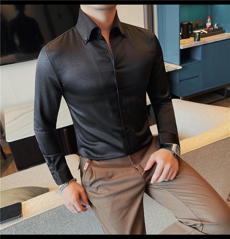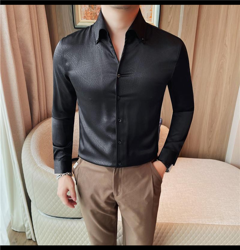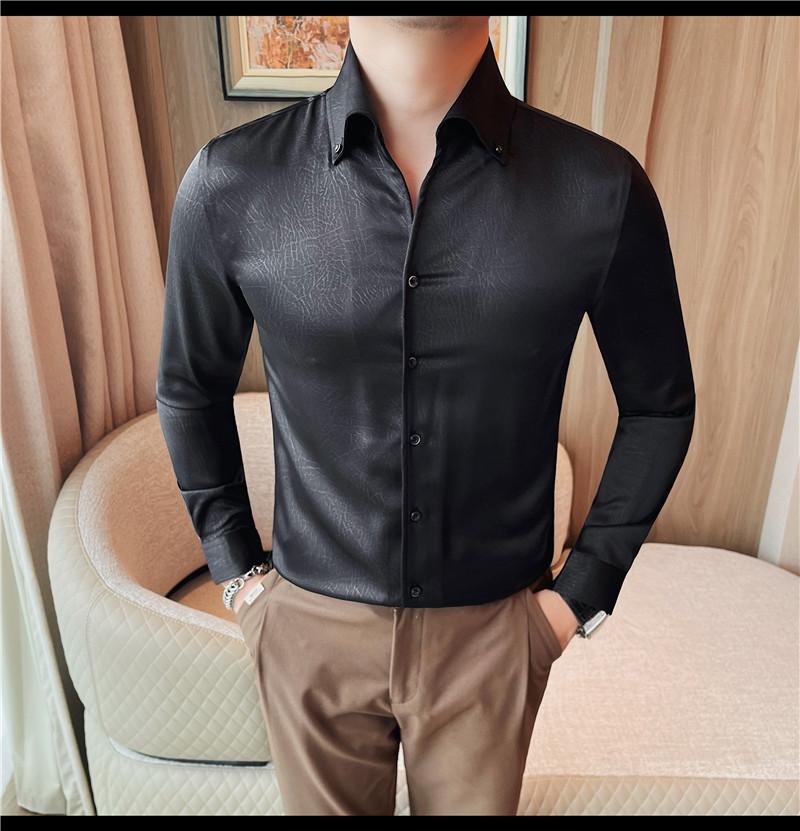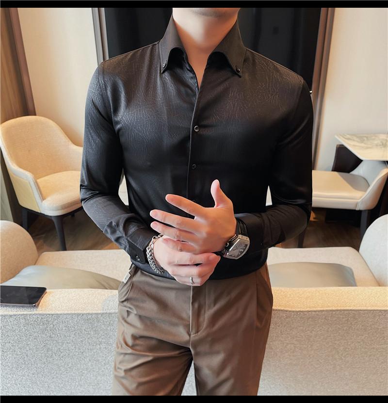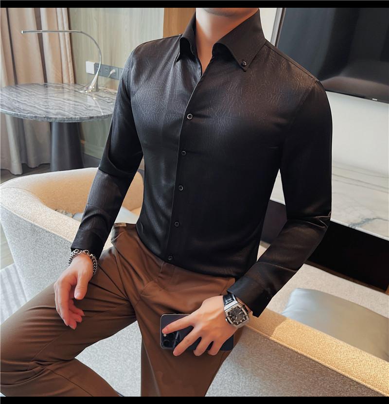 Camisa Floral Popular para Hombre 2025 de Gama Alta Brillante con Botones Ocultos Diseño Nicho de Manga Larga Business Casual