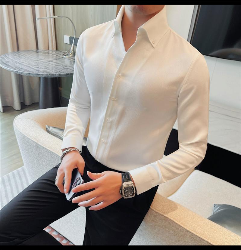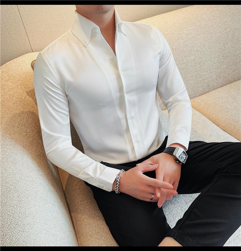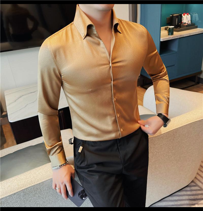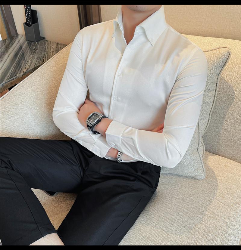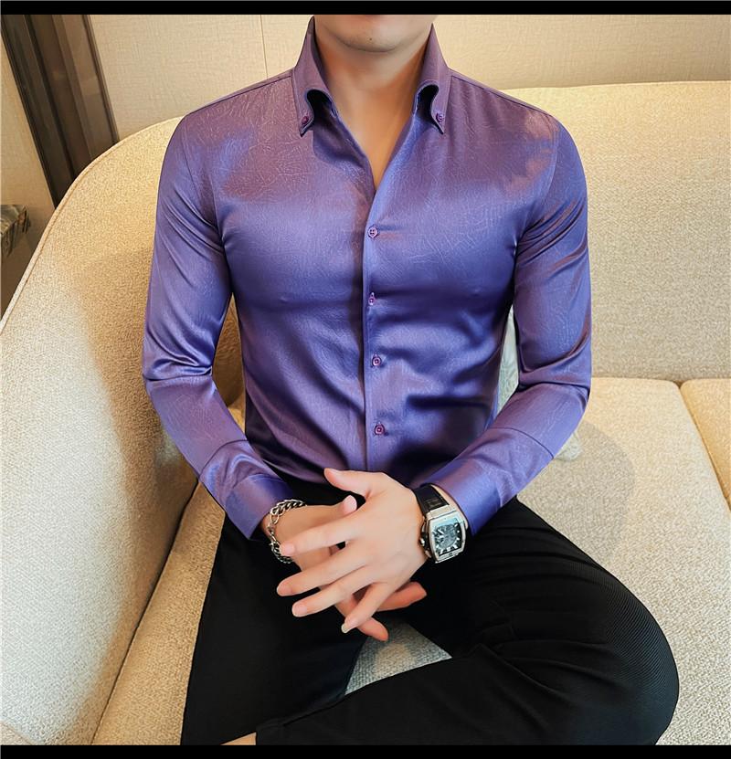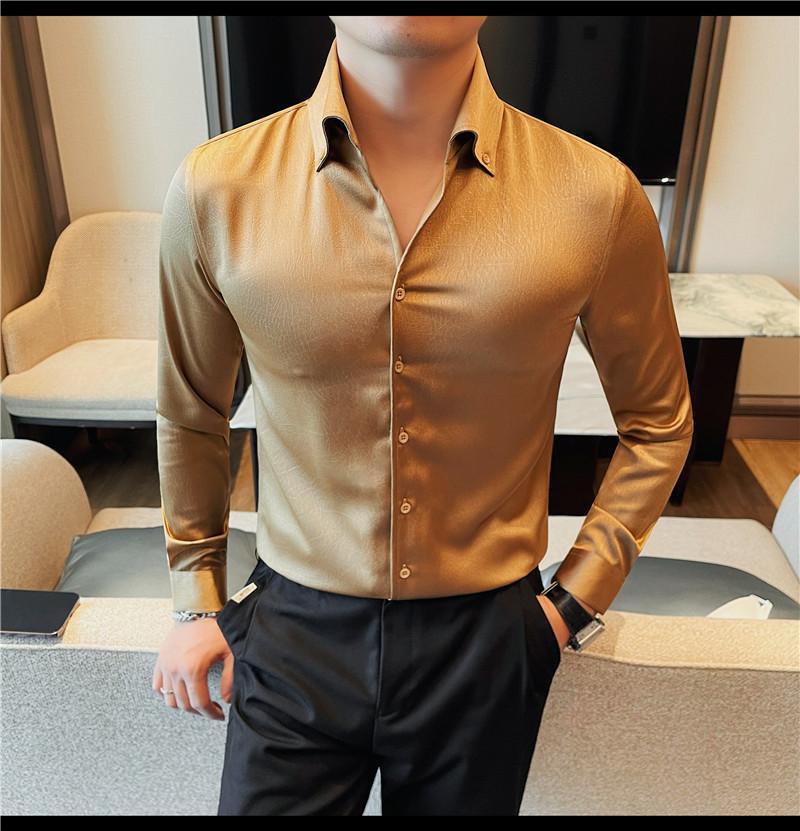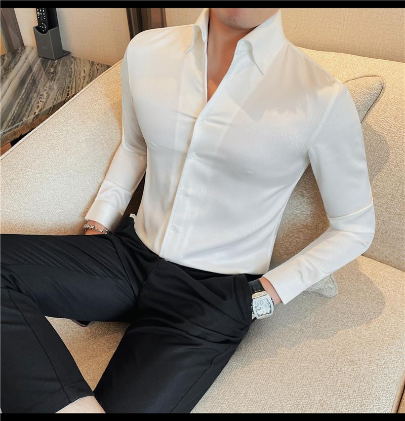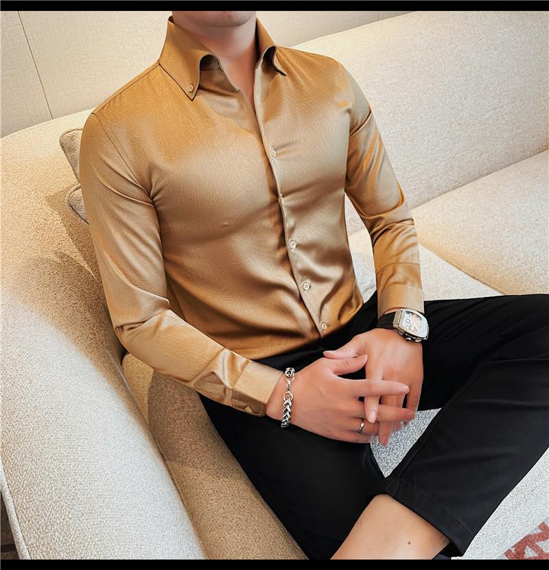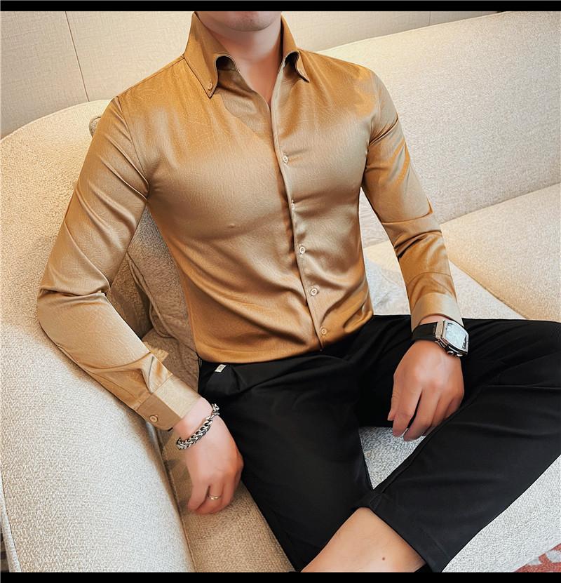 Camisa Floral Popular para Hombre 2025 de Gama Alta Brillante con Botones Ocultos Diseño Nicho de Manga Larga Business Casual