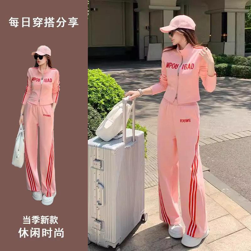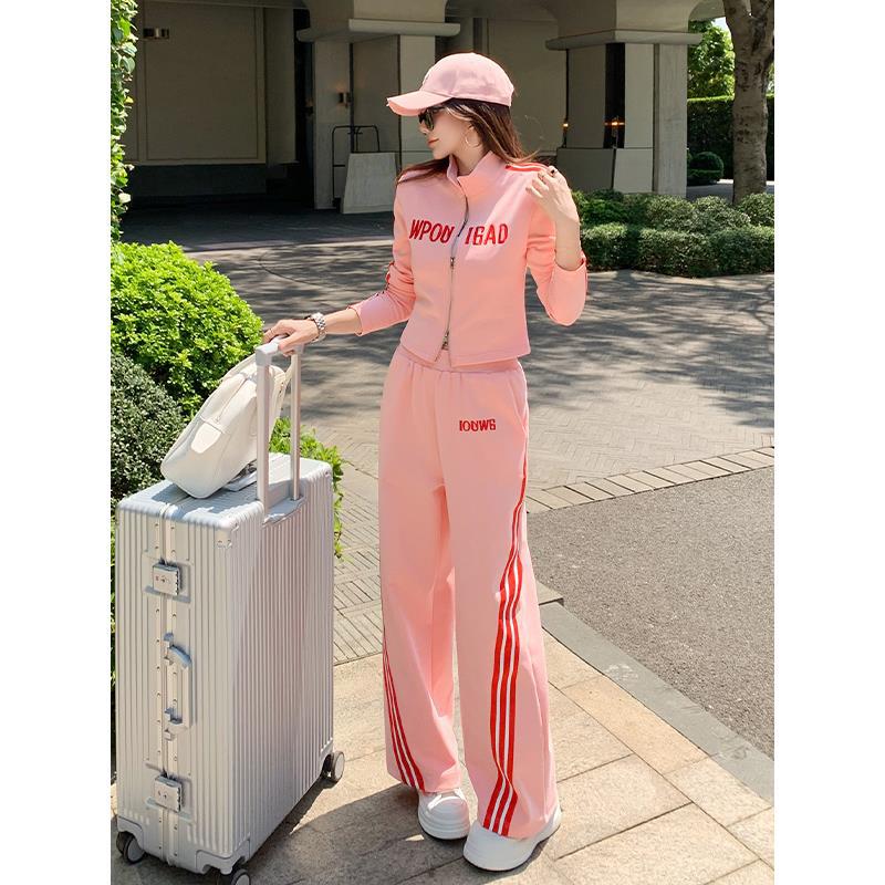 Conjunto de Chándal Rosa para Mujer Otoño 2025 Nuevo Europeo de Alta Gama Estilo Urbano Moda Reductor de Edad Sudadera Casual Conjunto de Dos Piezas