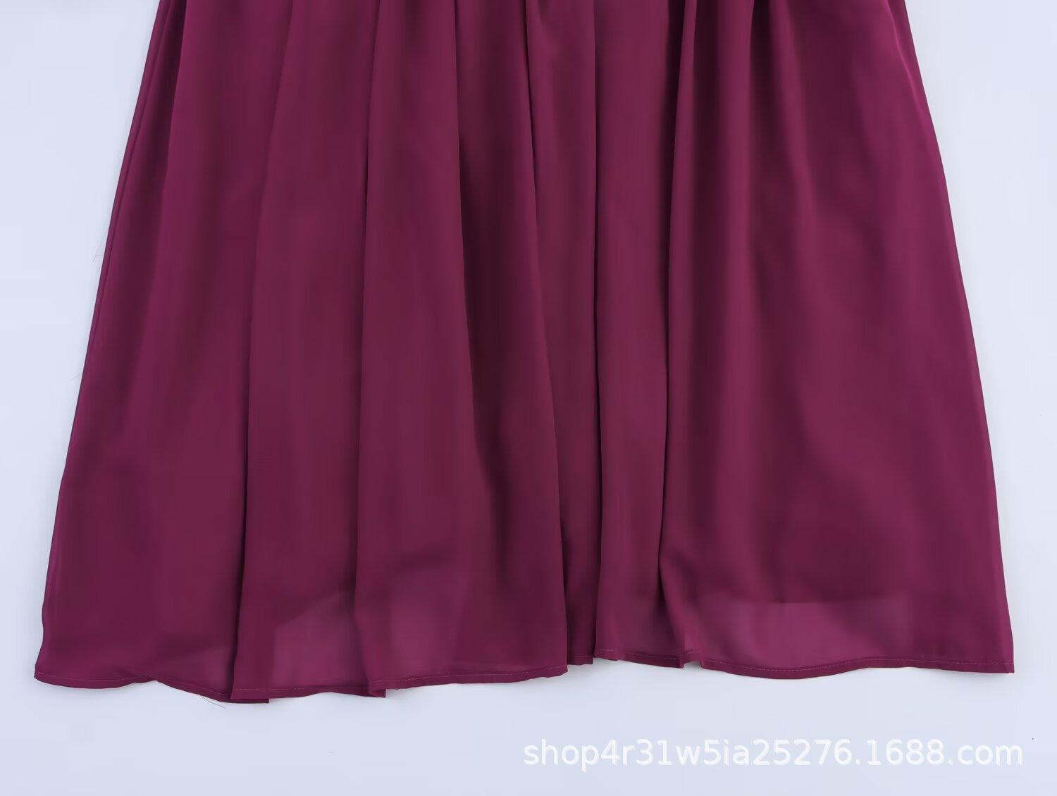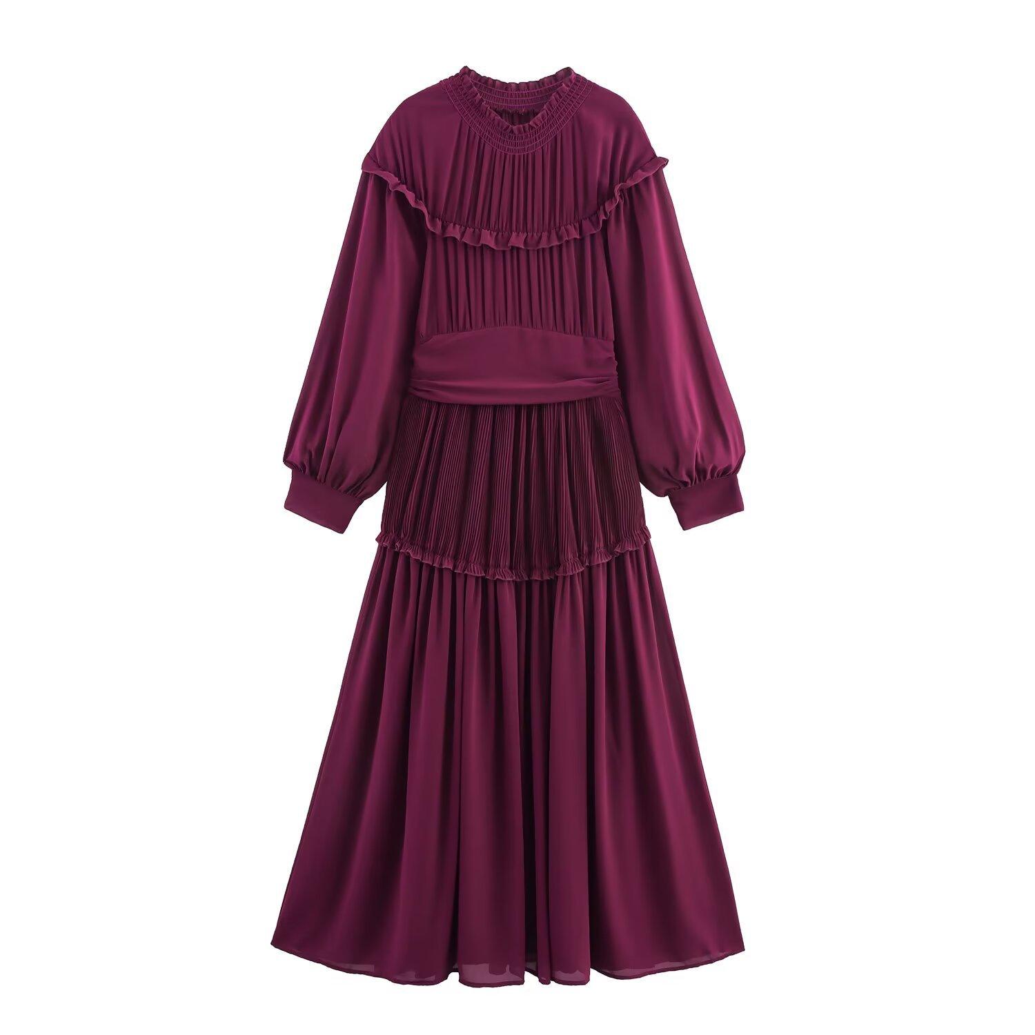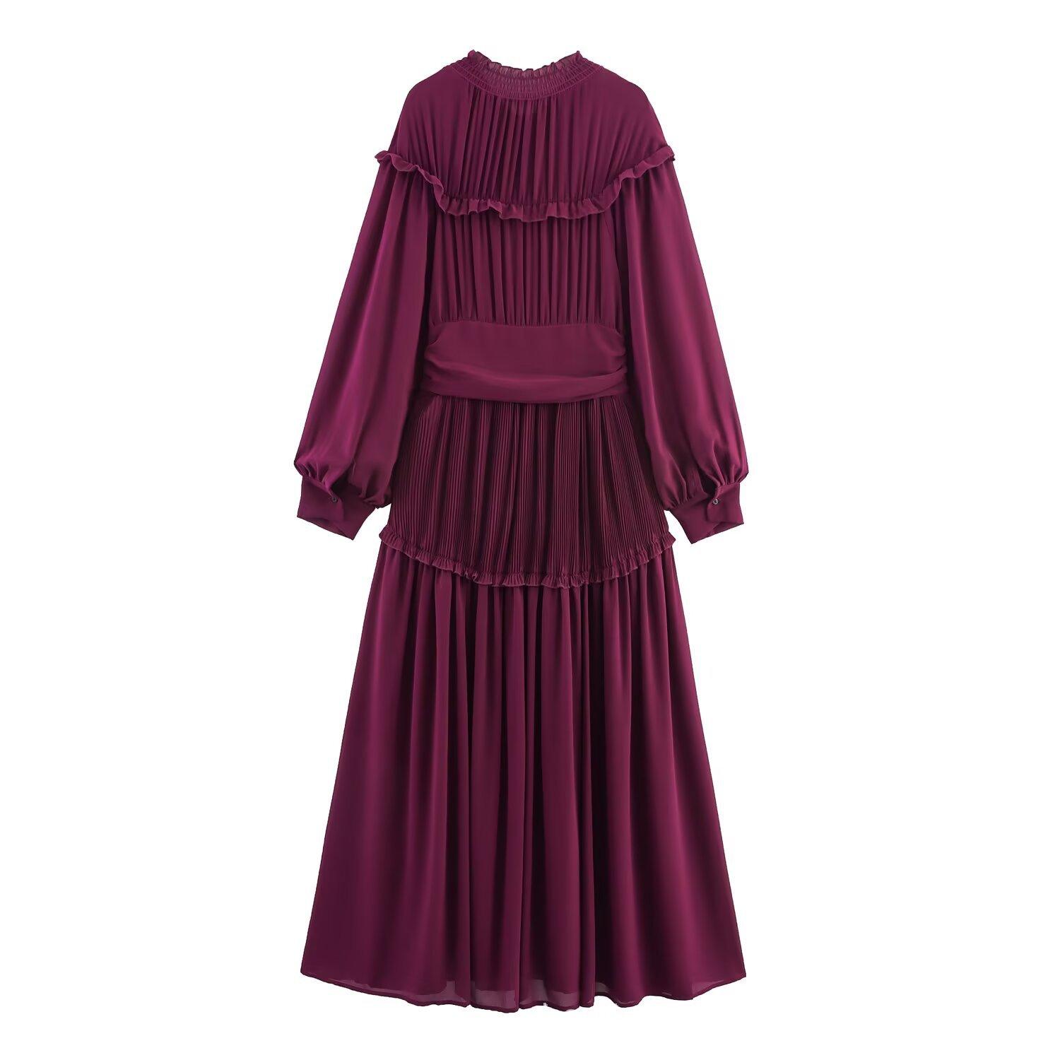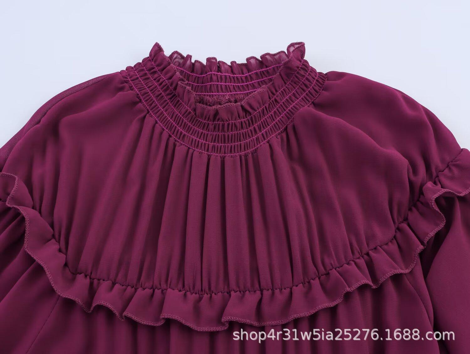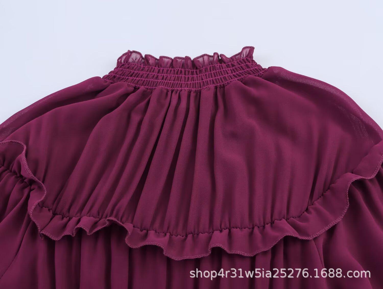 Estilo Europeo y Americano 2025 Verano Nuevo Moda Femenina Diseño Simple de Volantes Vestido de Manga Larga de Gasa