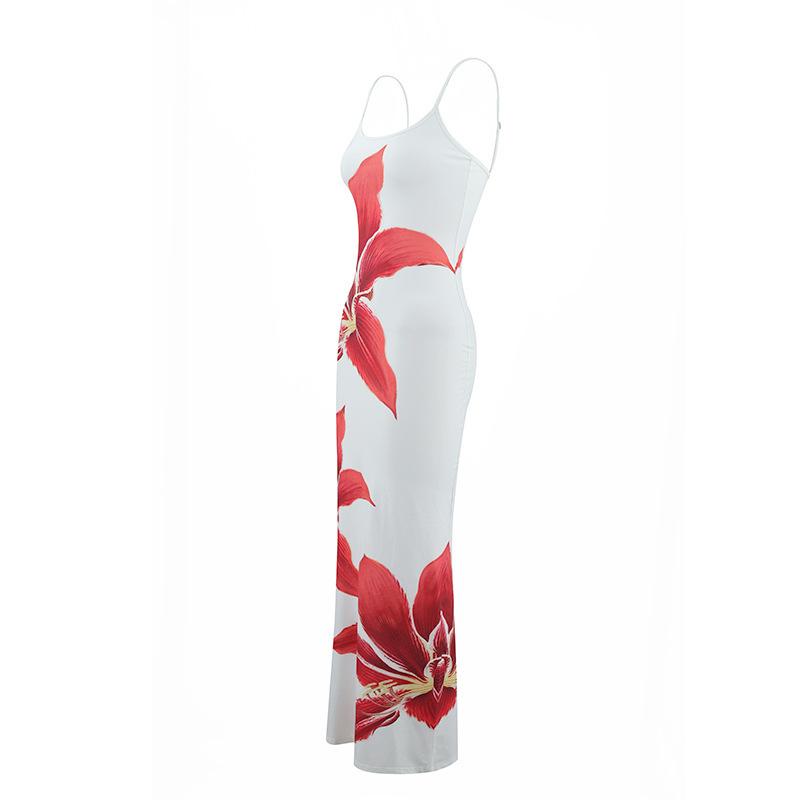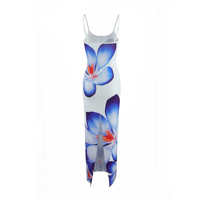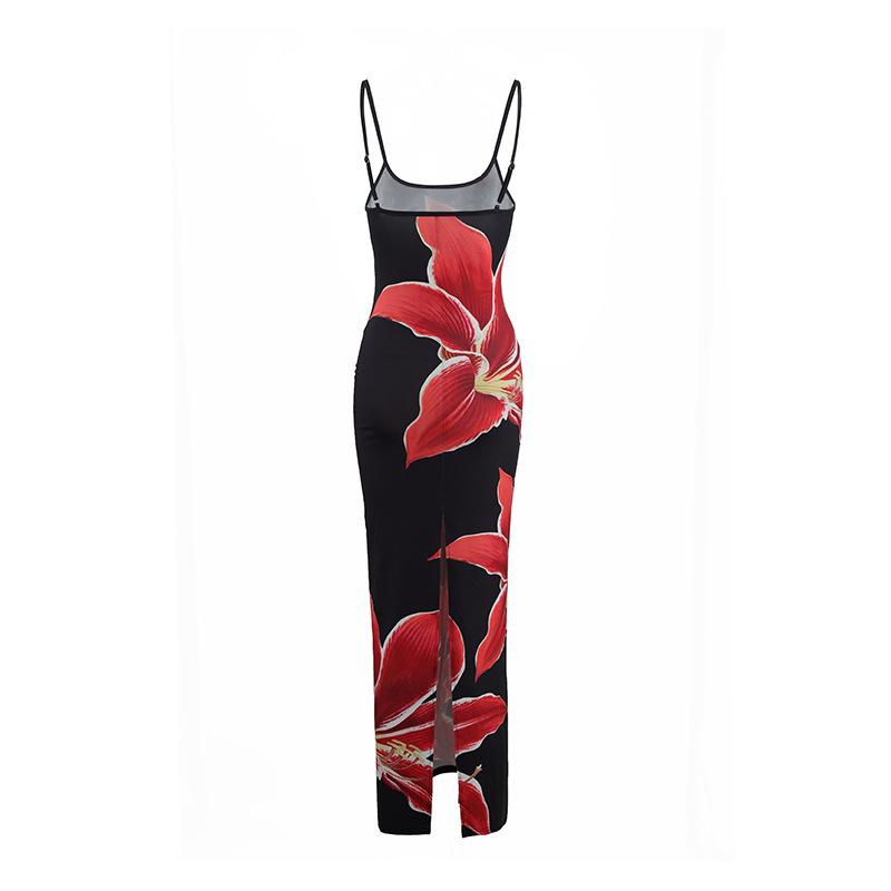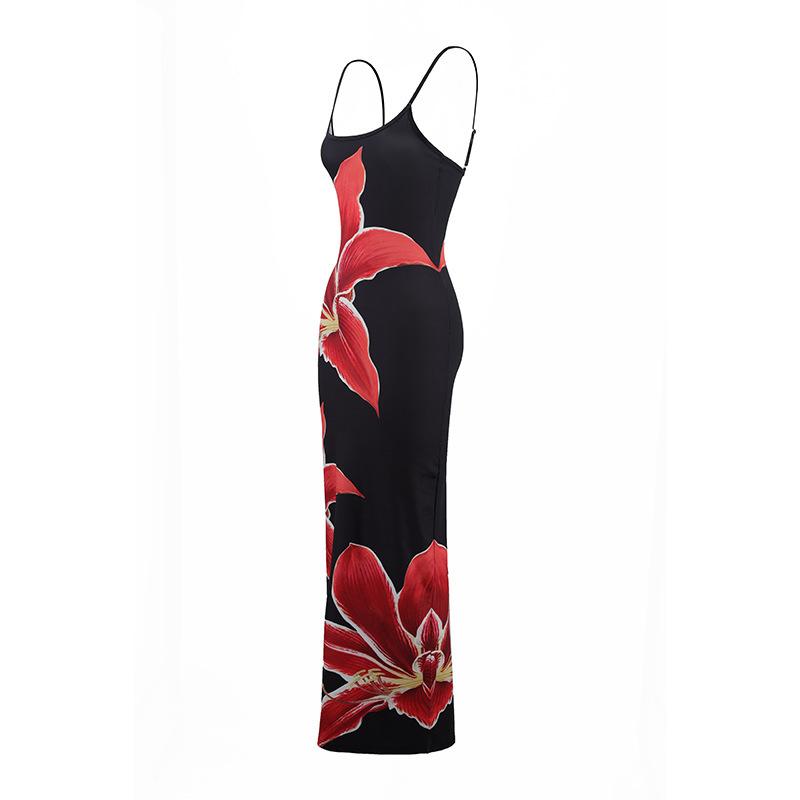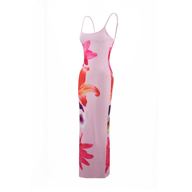 Estilo Europeo y Americano 2024 Verano Exportación Aliexpress Vestido Largo Ajustado Sexy Nuevo de Tirantes con Estampado Floral para Mujer