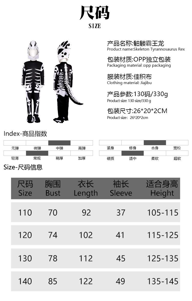 Disfraz de Cosplay de Esqueleto de Halloween de Tiranosaurio Rex Transfronterizo para Niños Horror Juego de Roles Ropa para Actuación Escénica