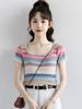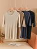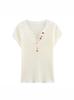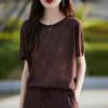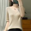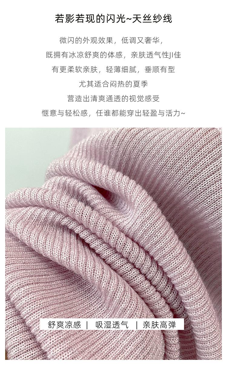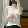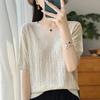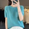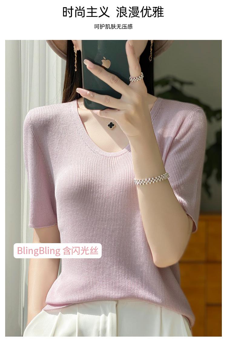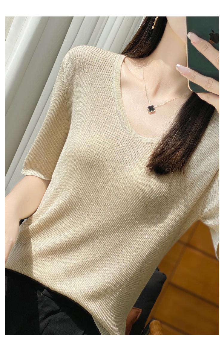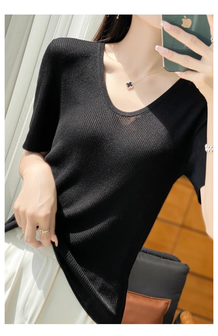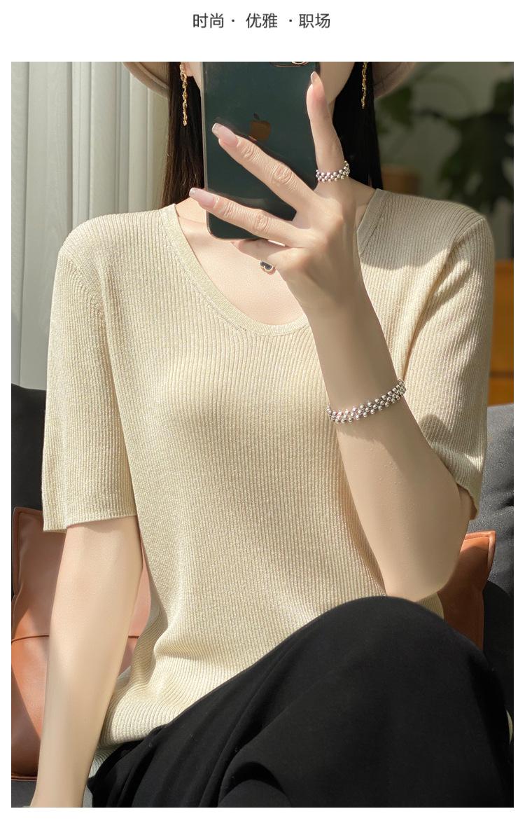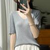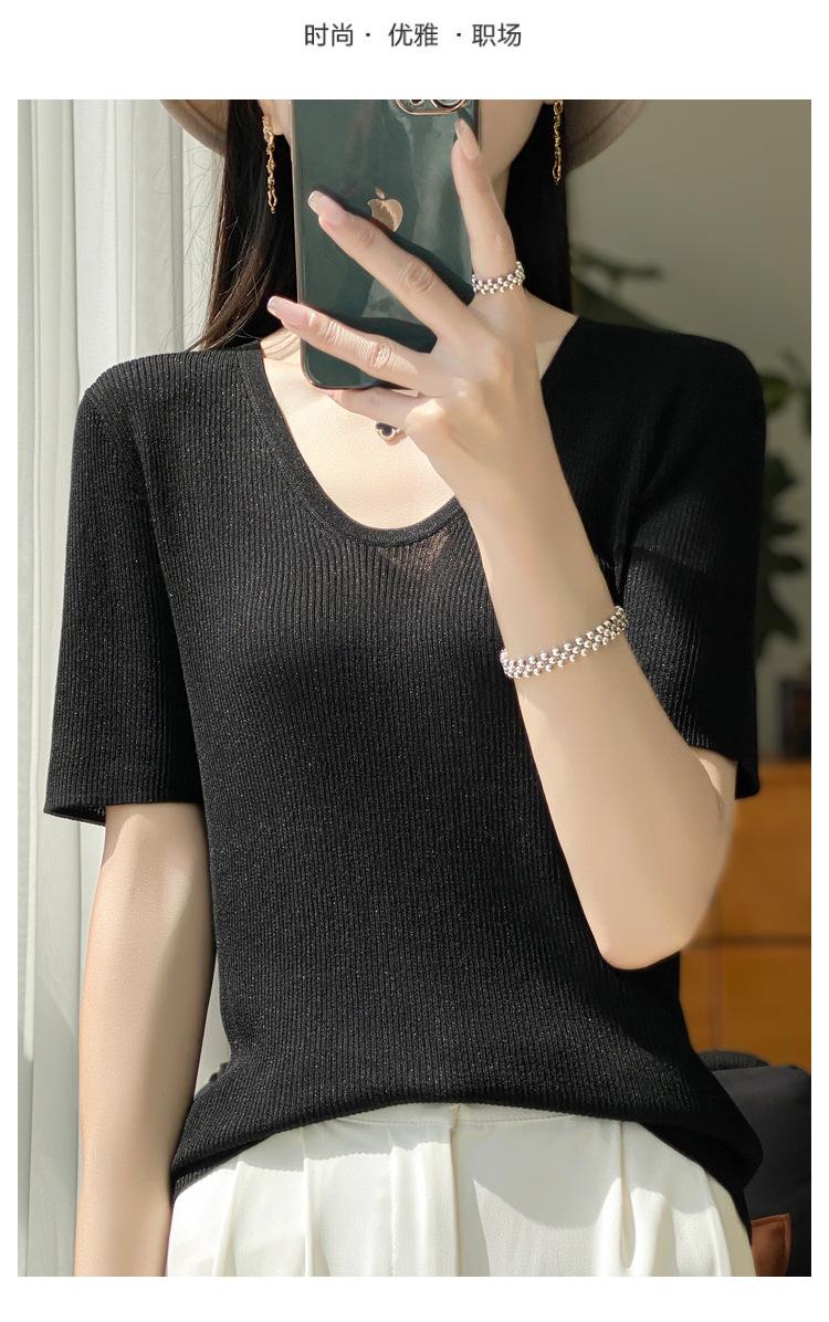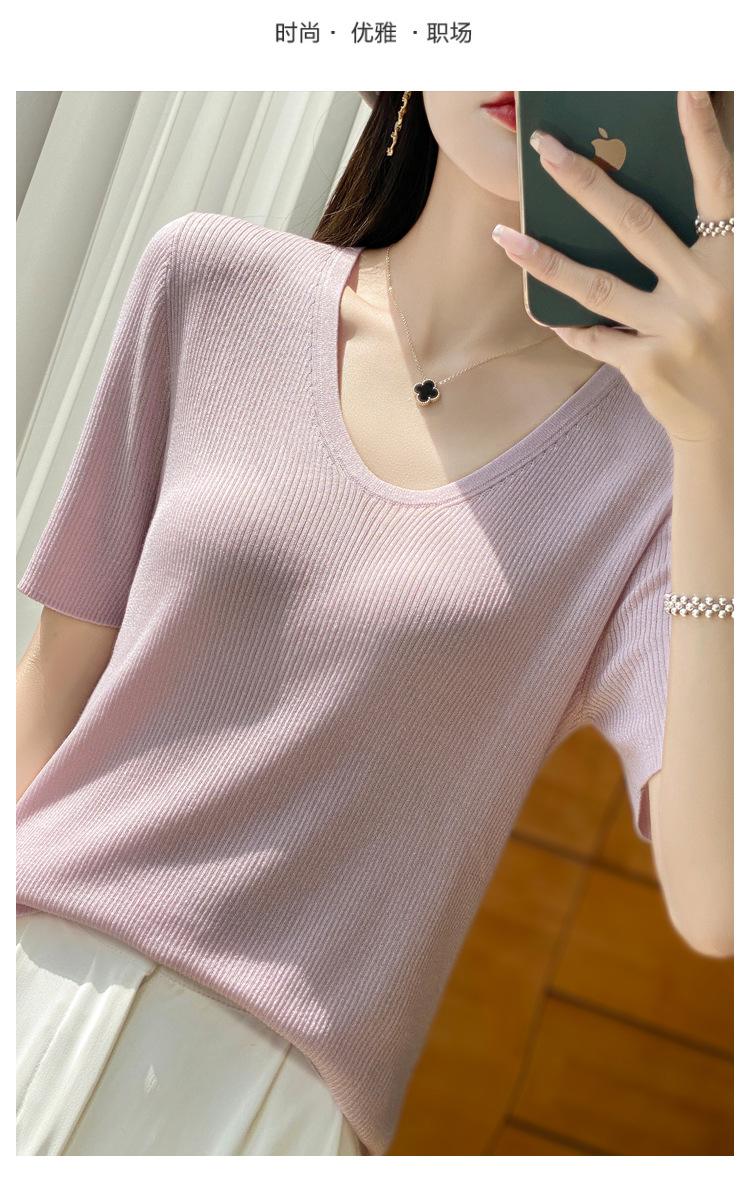 Primavera/Verano 2024 Nueva camiseta de manga corta de Tencel con cuello en U, color sólido, camisa tejida, top delgado elegante para mujer