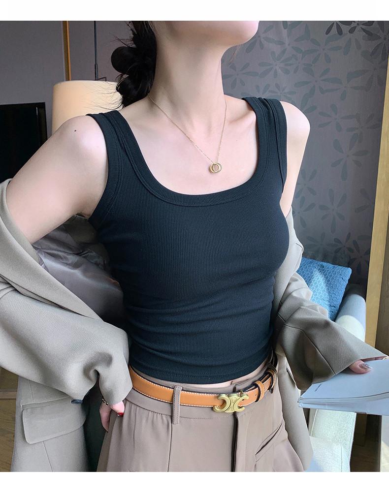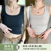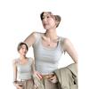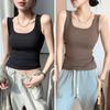 Camisola de Verano Blanca con Cuello Cuadrado de Hilo de Seda Helada para Exterior, Fondo Delgado sin Mangas