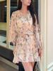 Diseño Cuello en V con Adorno de Orejas Falda Dos Usos con Fondo para vestido Mujer Estilo Francés Retro Estampada Ajustada con Cordones Falda Midi