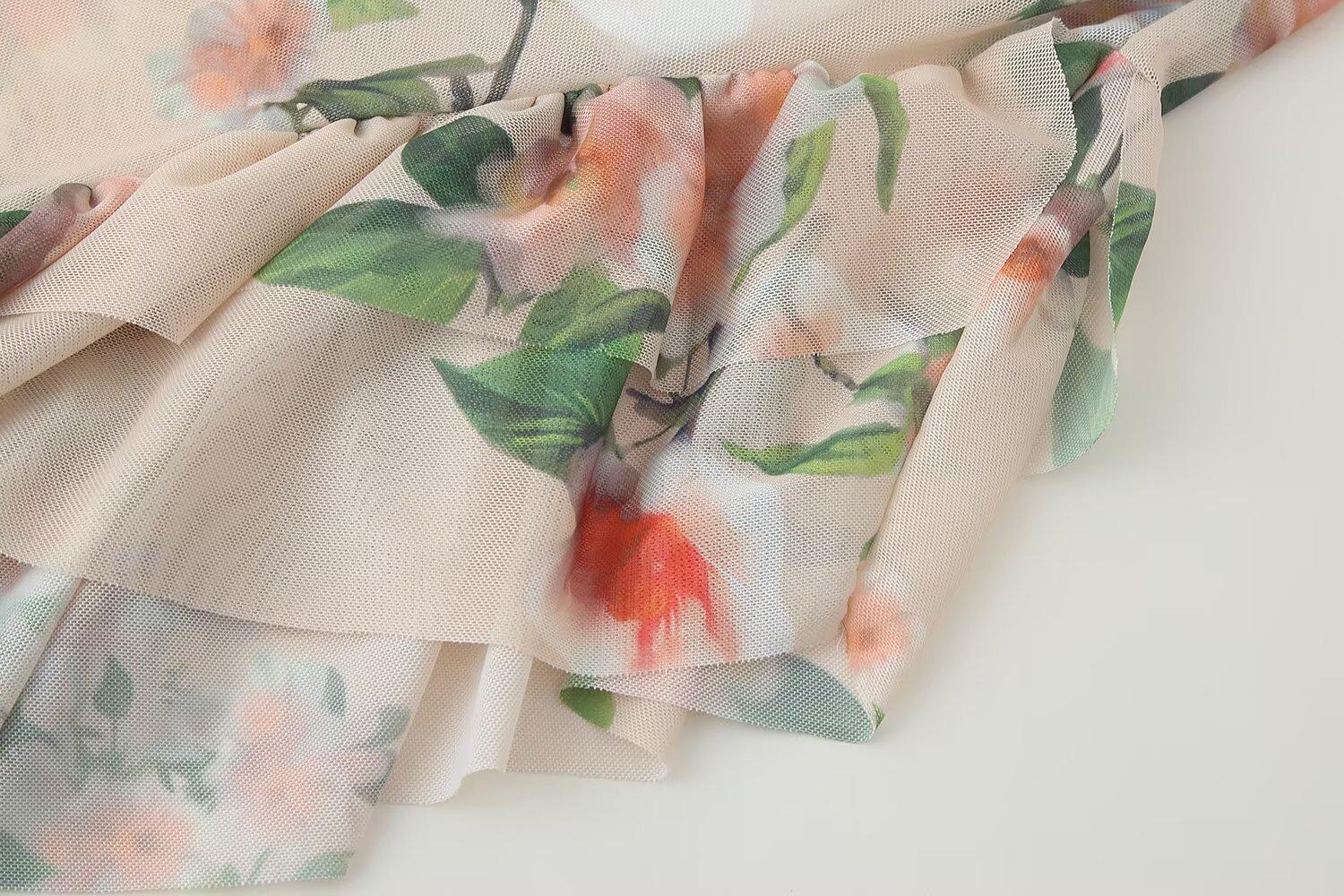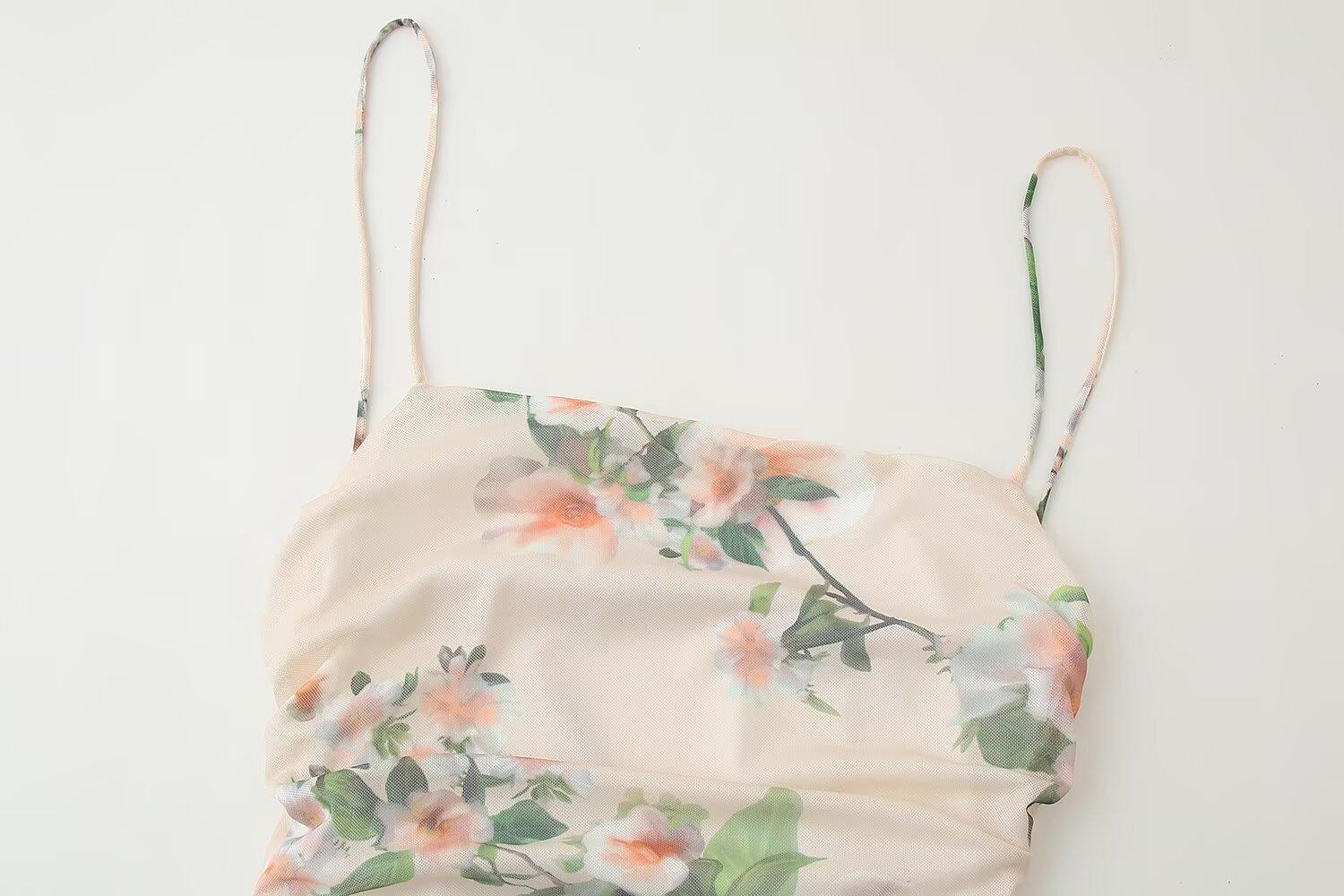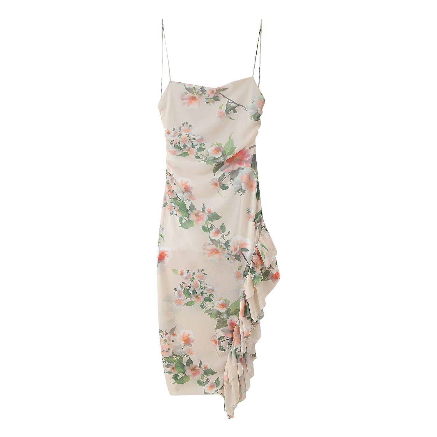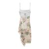 Exportación Transfronteriza 2025 Verano Nuevo Estilo Europeo y Americano Sexy Delgado Espalda Descubierta Capas Decorativas Estampado Vestido de Tirantes