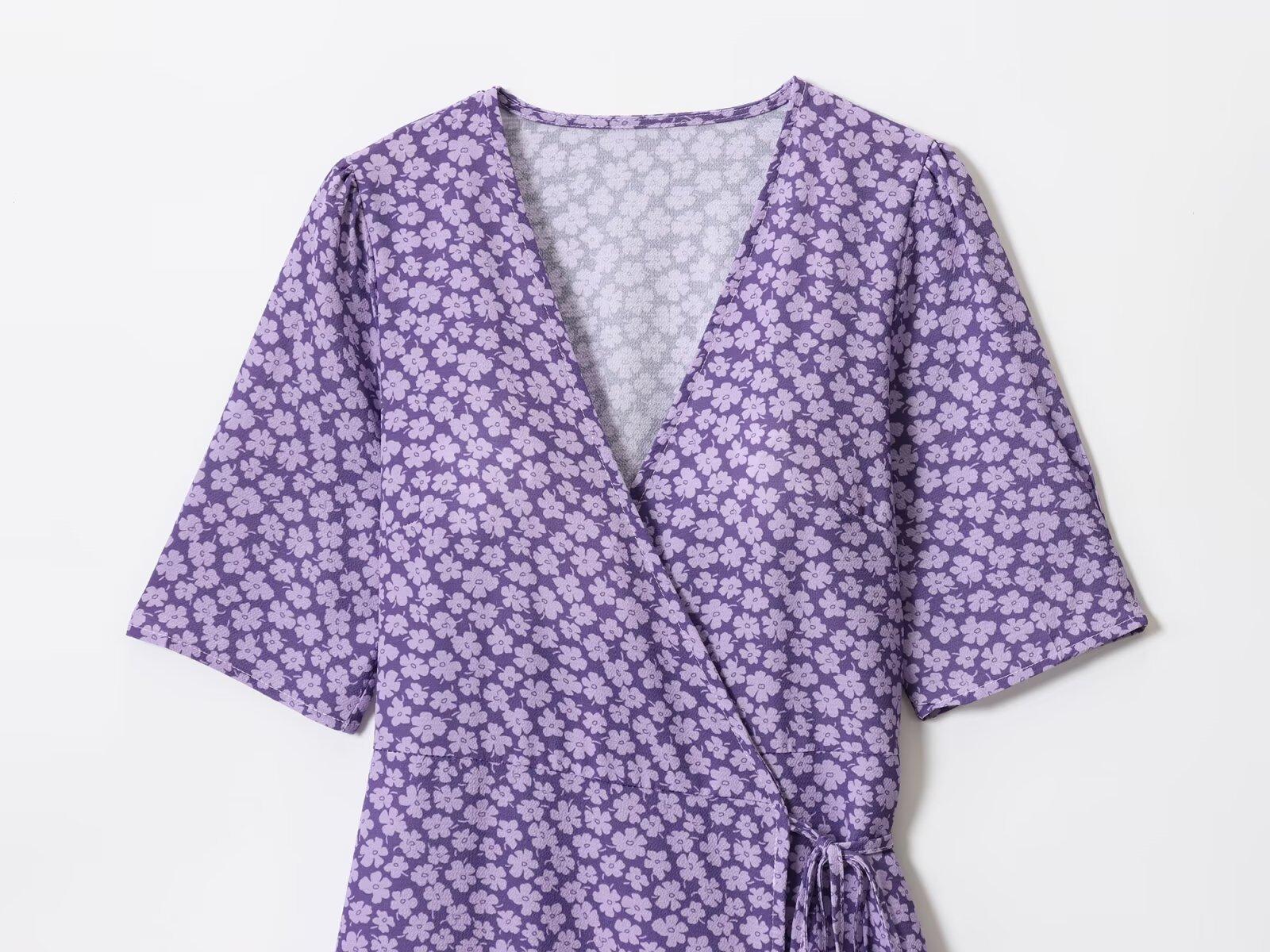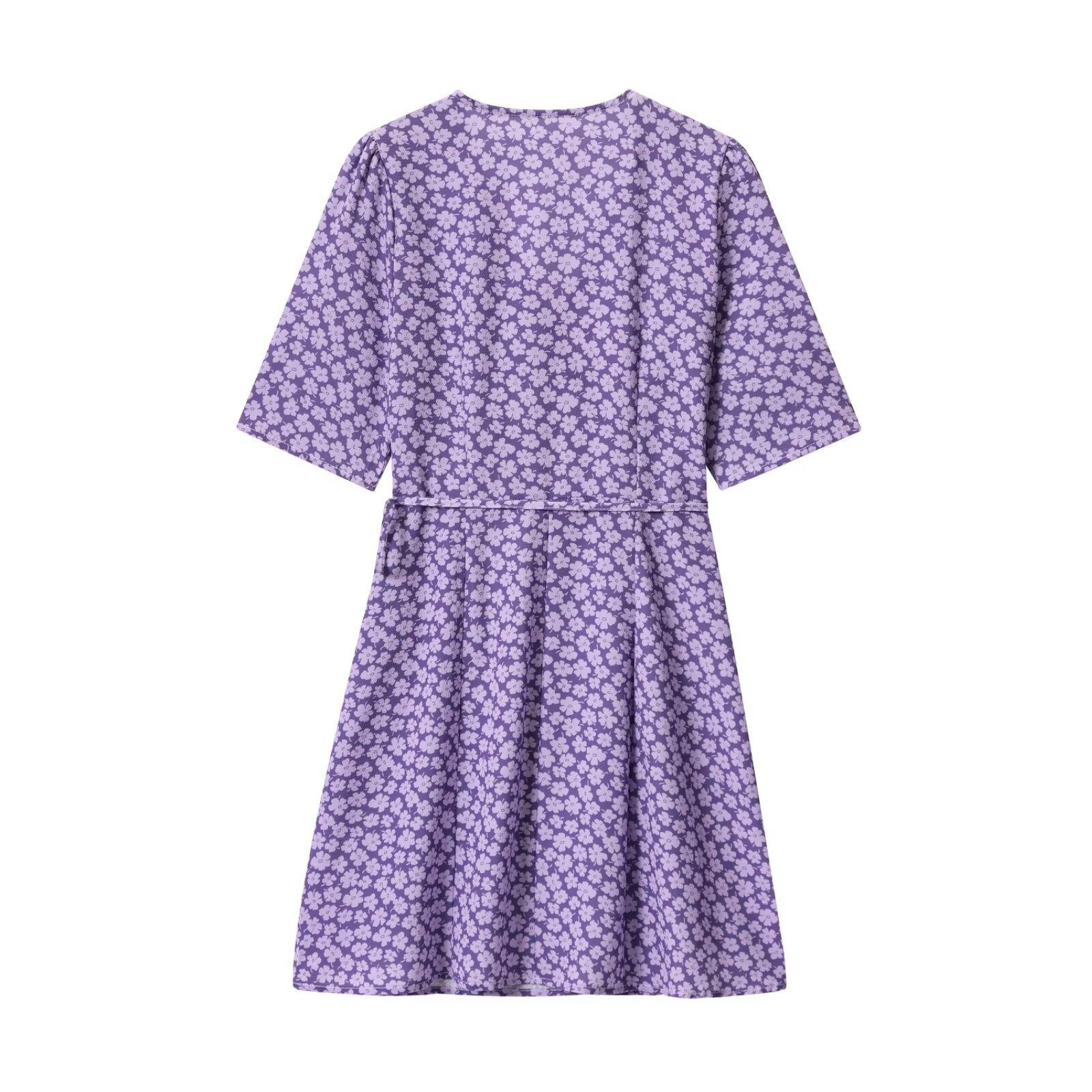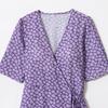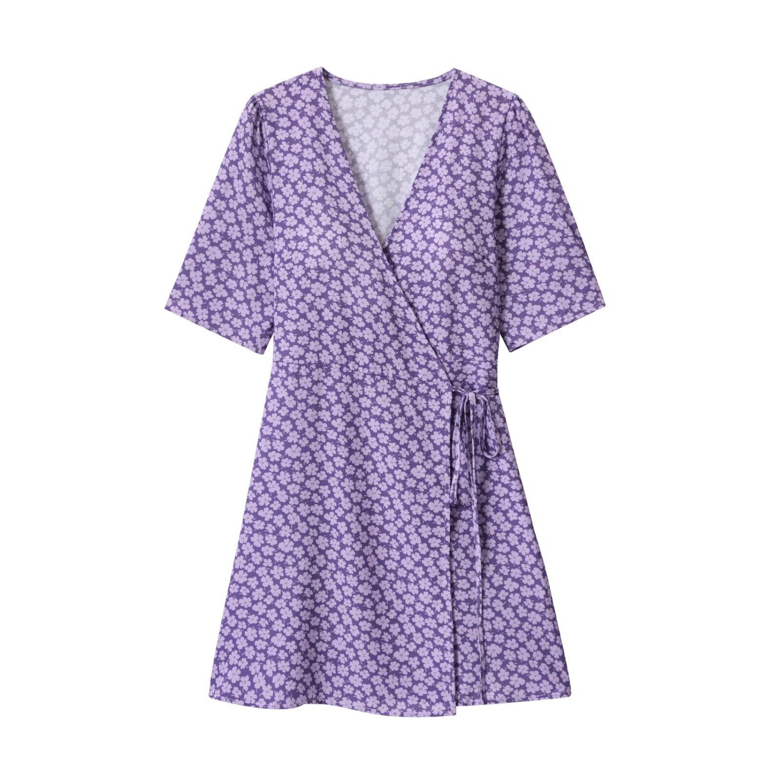 Z Venta al por Mayor Transfronteriza Primavera 2025 Nuevo Vestido Europeo y Americano de Moda para Mujer Sencillo con Estampado de Margaritas y Lazo Envolvente