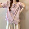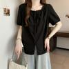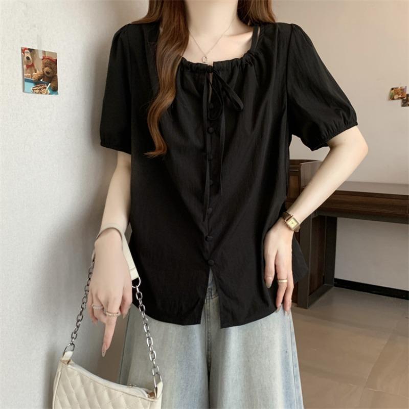 Camisa Morada Cuello en V Hombro Hueco Manga Corta Mujer Verano 2025 Talla Grande Chica Gordita Cubre Carne Delgada Chic Top