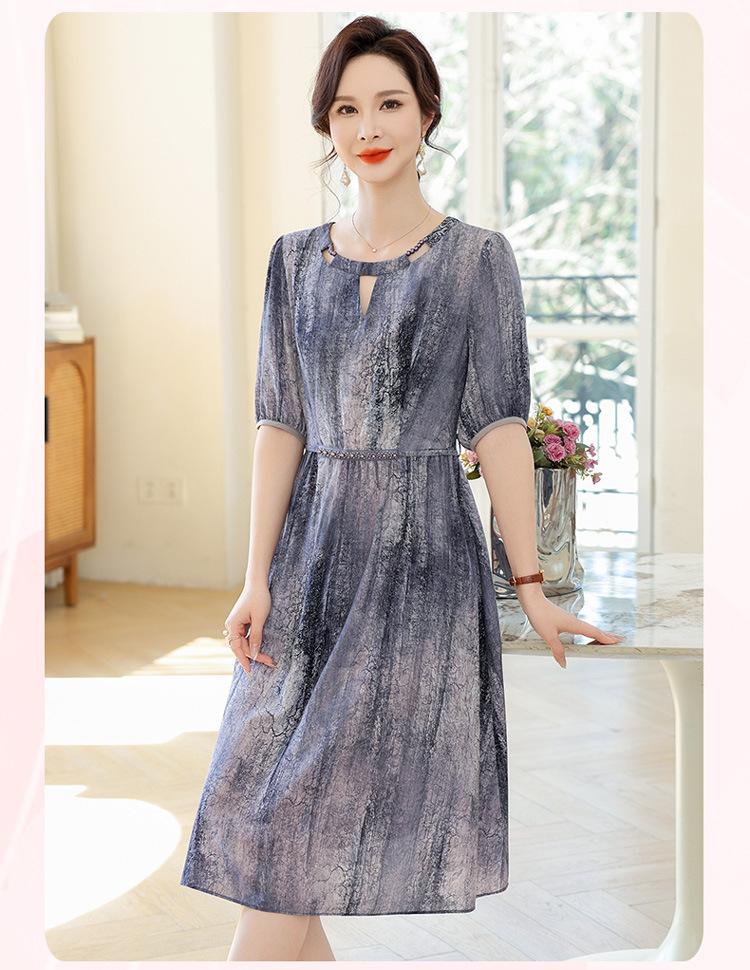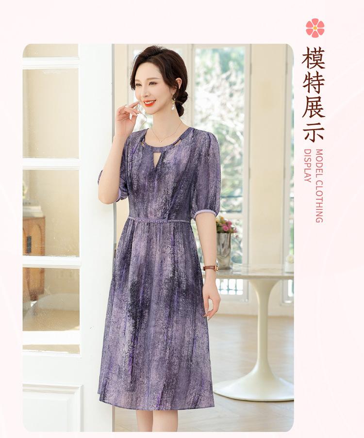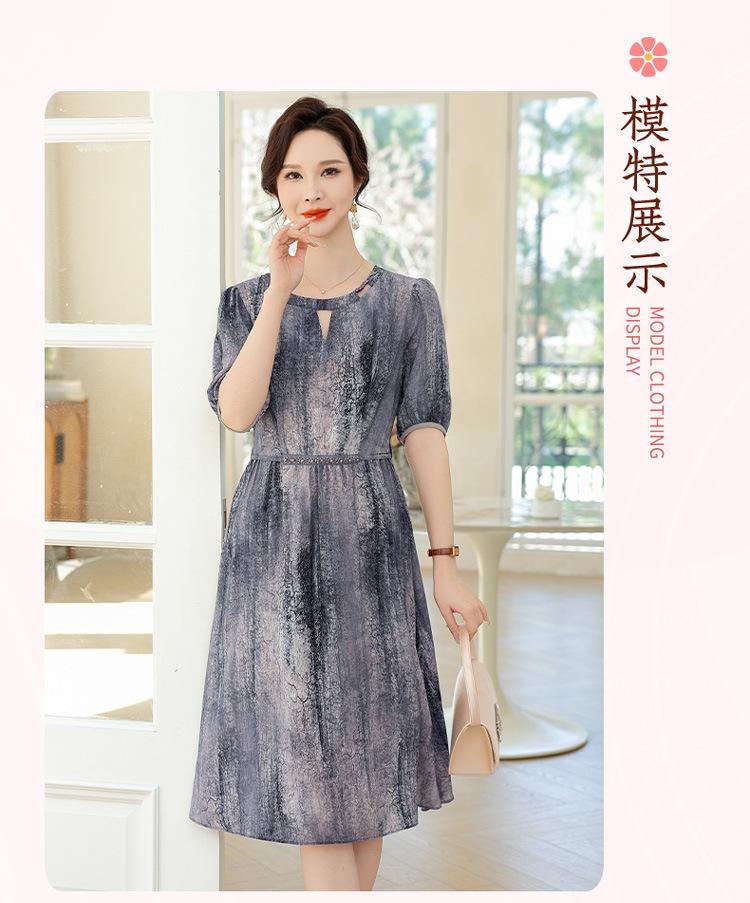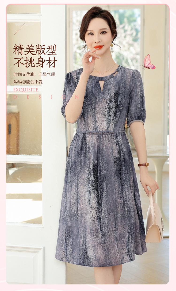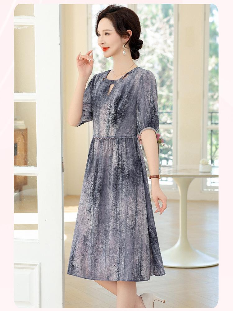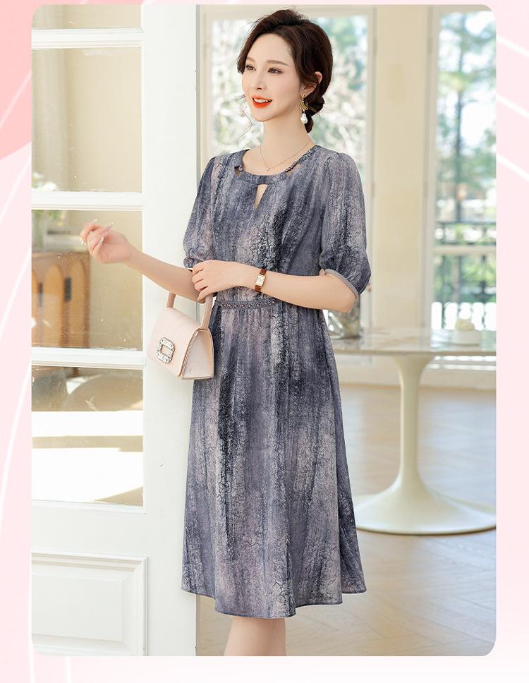Elegante Vestido de Cuello Redondo de Manga Corta para Mujer Verano 2025 Nuevo Elegante Moda Elegante Cintura Ajustada Falda de Madre