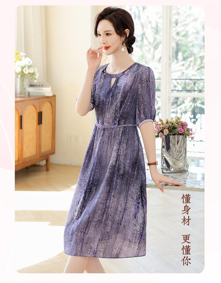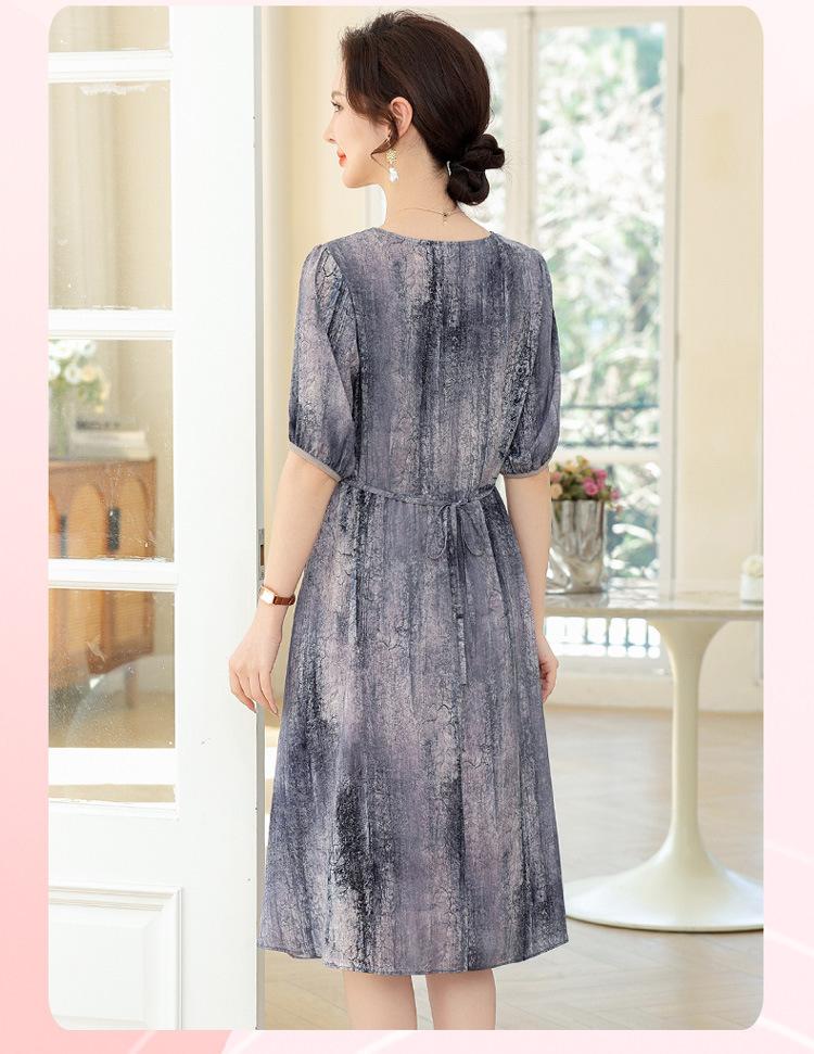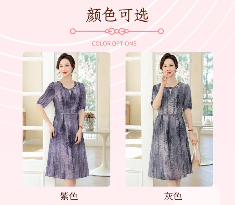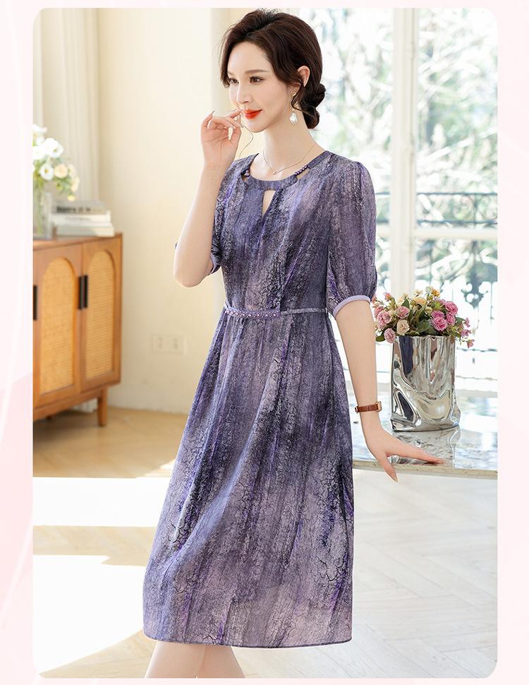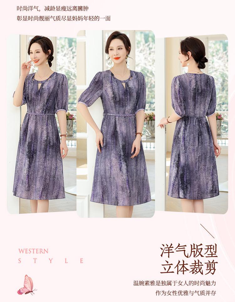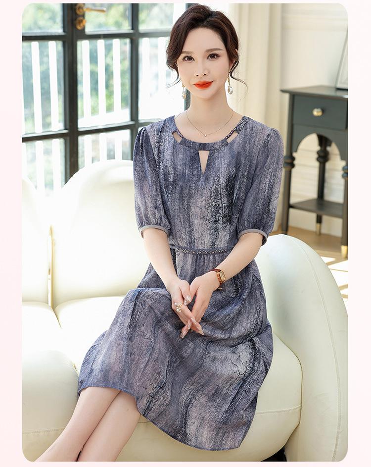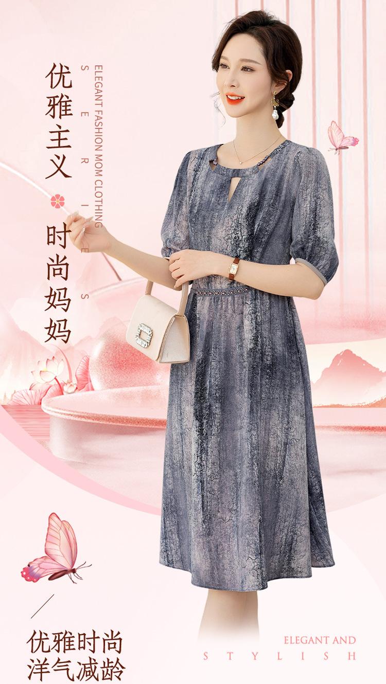 Elegante Vestido de Cuello Redondo de Manga Corta para Mujer Verano 2025 Nuevo Elegante Moda Elegante Cintura Ajustada Falda de Madre
