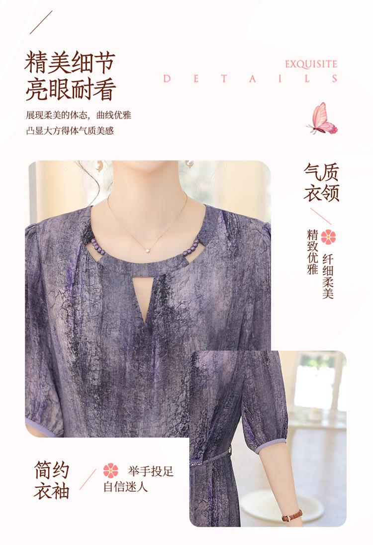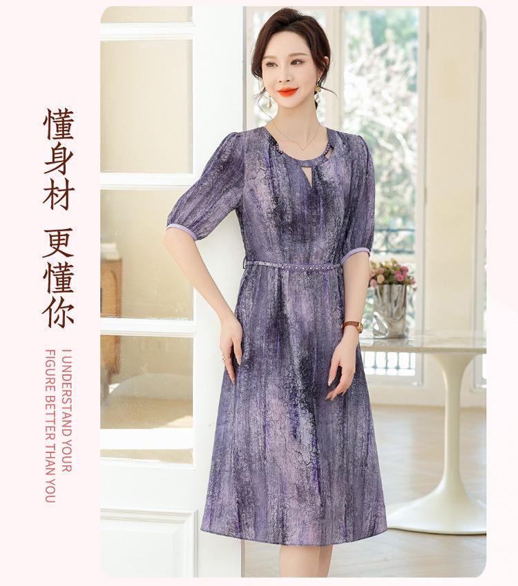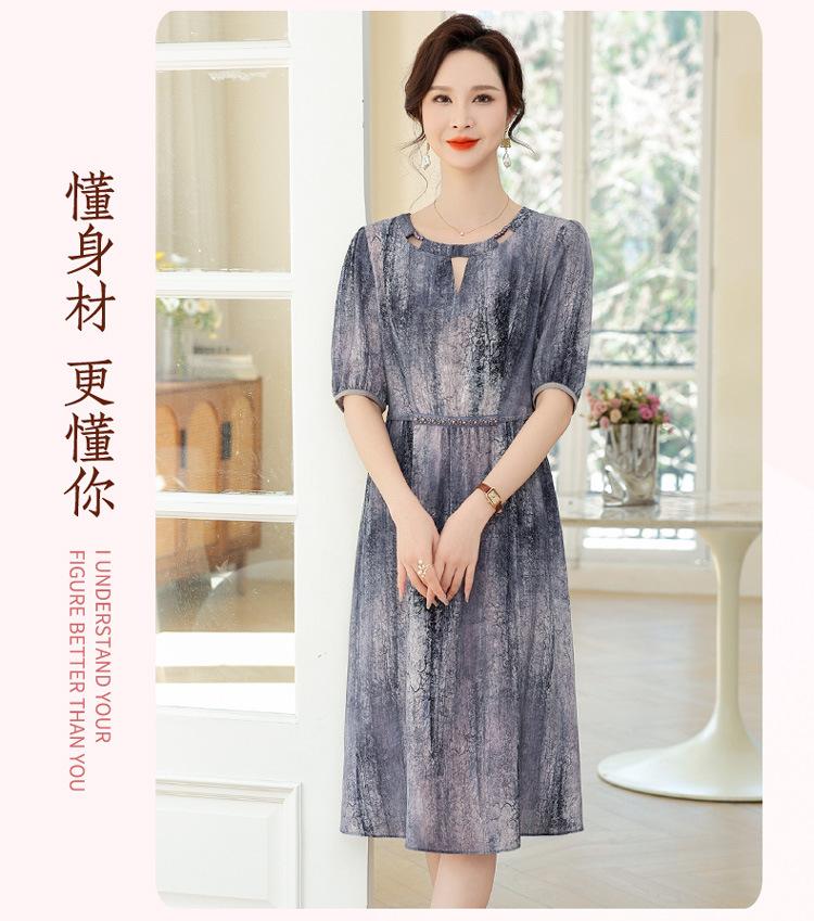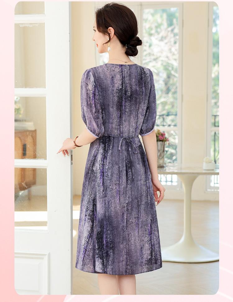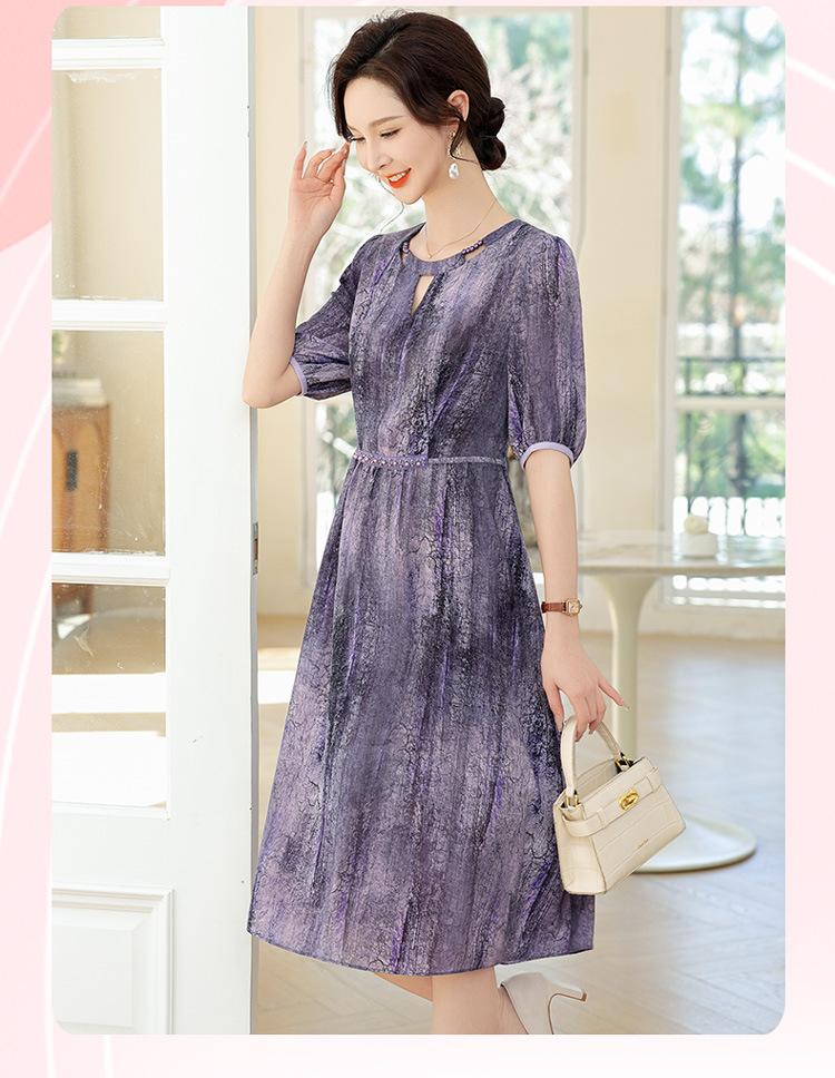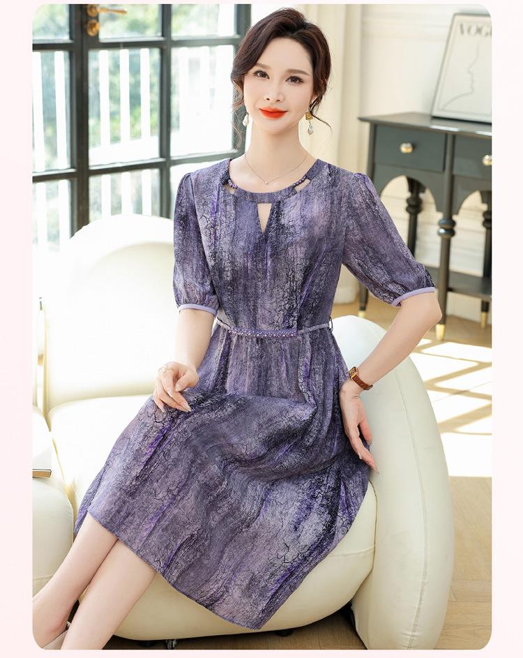 Elegante Vestido de Cuello Redondo de Manga Corta para Mujer Verano 2025 Nuevo Elegante Moda Elegante Cintura Ajustada Falda de Madre