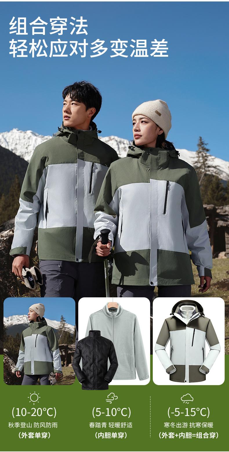 Chaquetas Tres en Uno Cortaviento e Impermeables para Otoño e Invierno para Hombre y Mujer, Ropa de Montañismo con Combinación de Colores, Chaquetas de Trabajo de Alta Gama para Exterior