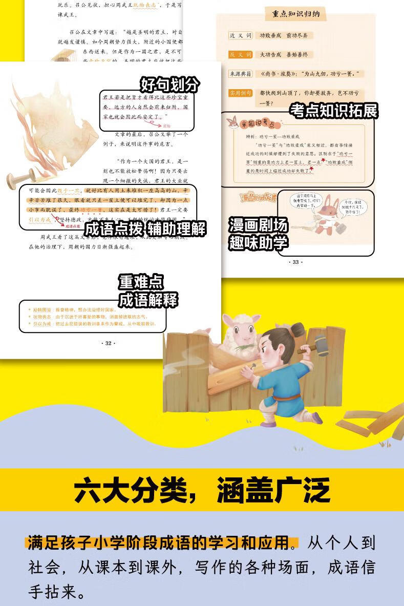Modismos Clasificados en Versión de Libro de Cómic Grande en Idioma Chino Colección de los 6 Volúmenes de Historias de Modismos Versión para Estudiantes de Escuela Primaria Libro Ilustrado para Niños