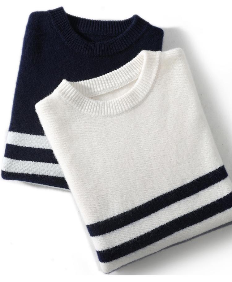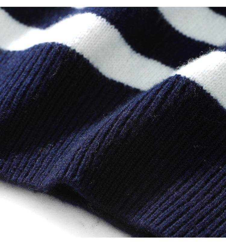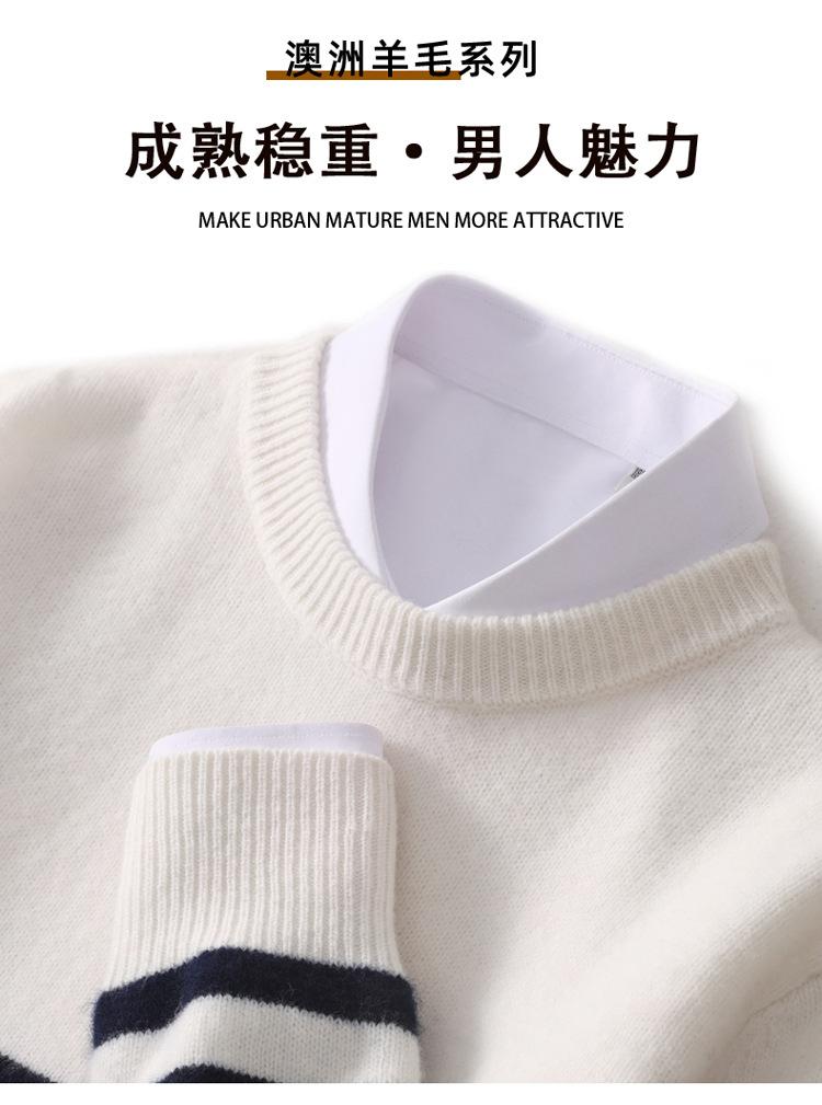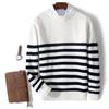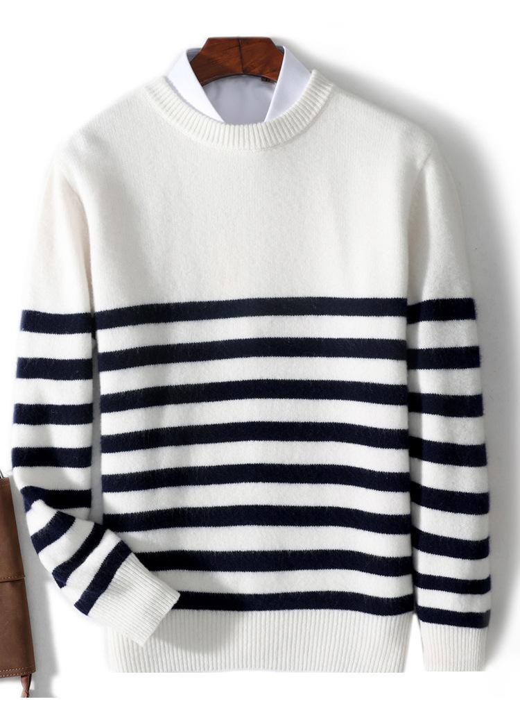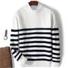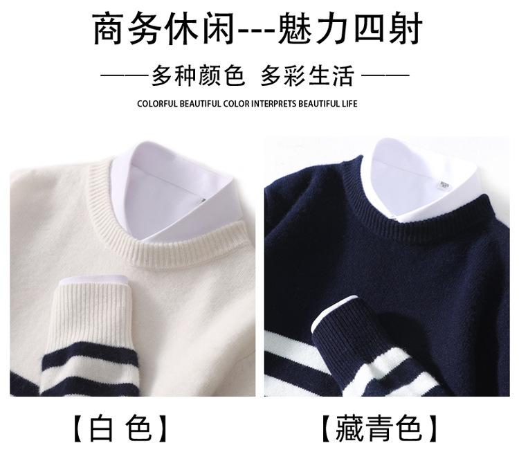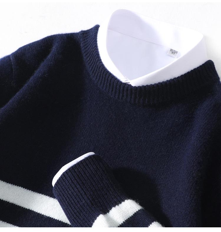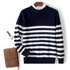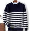 Otoño e Invierno nuevo suéter de punto de cuello redondo para hombre casual holgado engrosado suéter a rayas de punto para llevar debajo suéter de cachemira