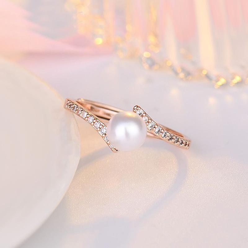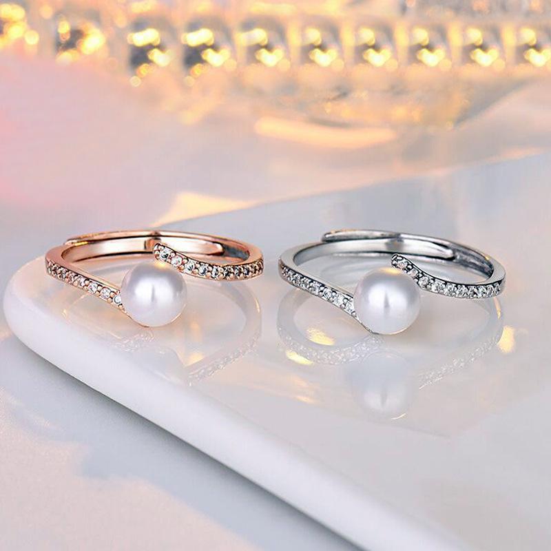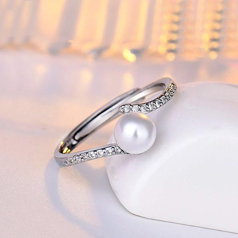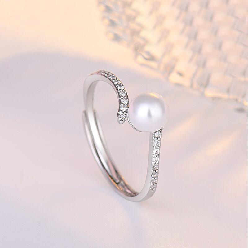 Compra Moda coreana anillo abierto lujo de alta gama incrustado circonita forma de V perla anillo para nudillo dedo índice venta al por mayor al por mayor en Joom.pro