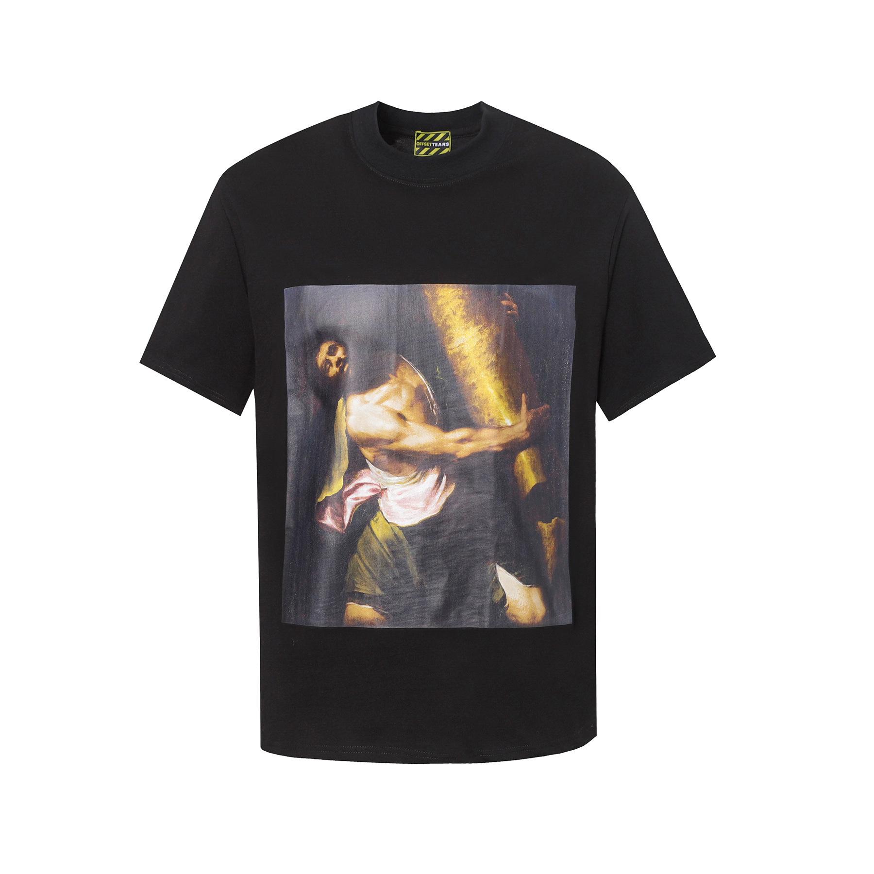 2024 Nuevo Punto Tendencia Casual Manga Corta Unión Desplazada Pintura al Óleo Estampado de Letras Camiseta Holgada Marca de Moda