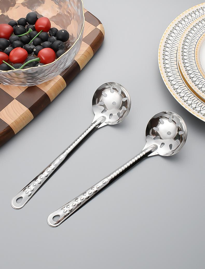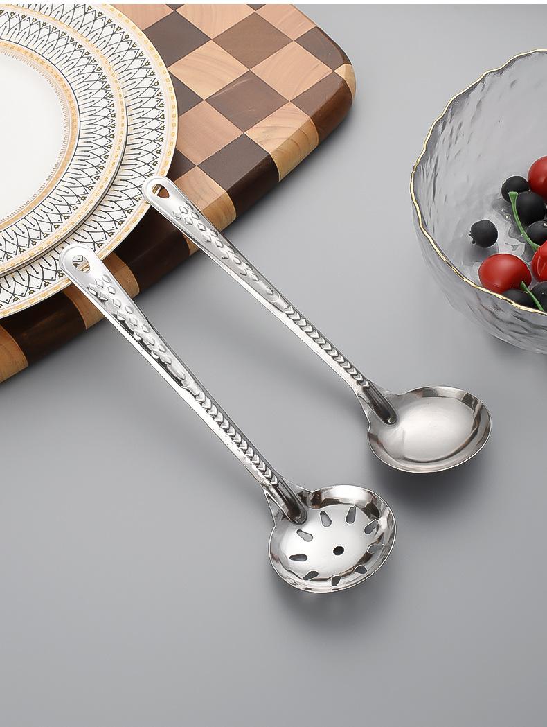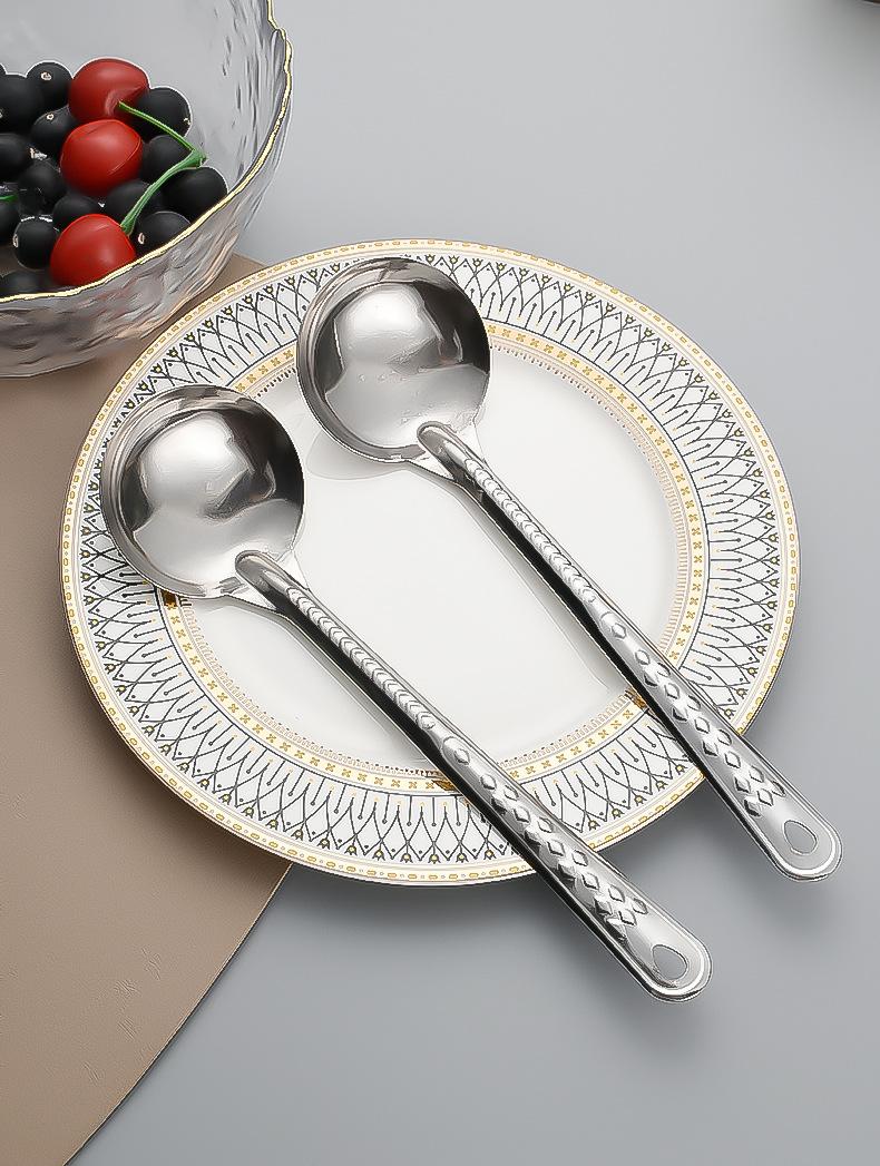 Cuchara Sopera de Acero Inoxidable Cuchara de Cabeza Redonda Colador Restaurante Mango Largo Cuchara Doméstica para Arroz Cuchara Larga para Olla Caliente