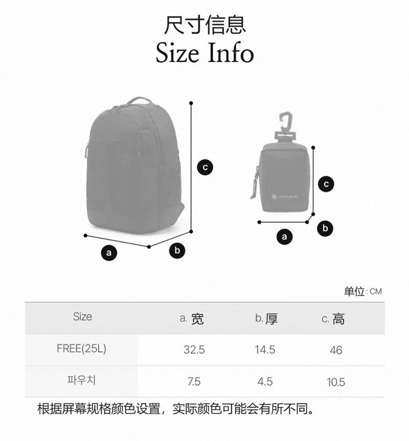 Black 25L Snow Peak Backpack, Gray-green 25L Snow Peak backpack, Khaki 25L Snow Peak Backpack