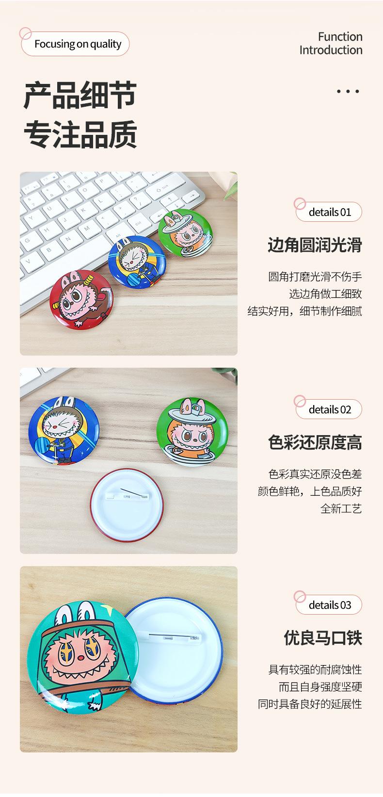 Cubierta Inferior de Plástico Medalla Conmemorativa de Dibujos Animados Labubu Colgante para Mochila Escolar Insignia Periférica de Anime Insignia de Hojalata